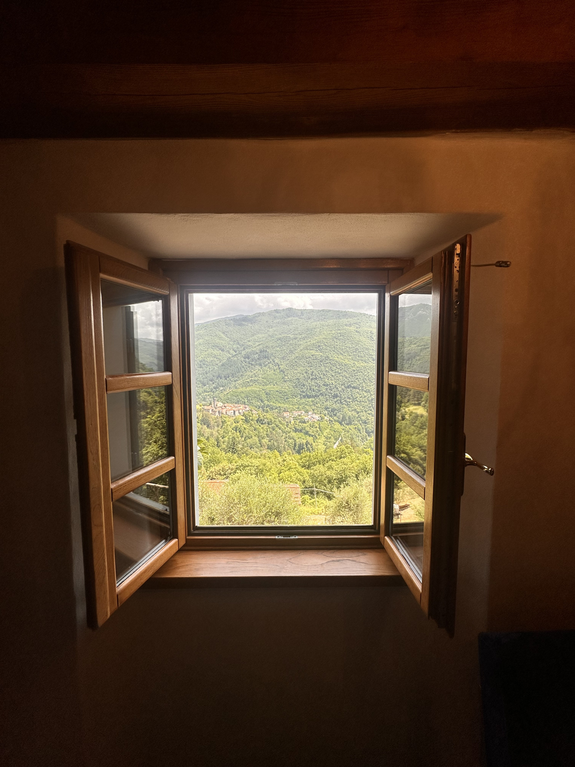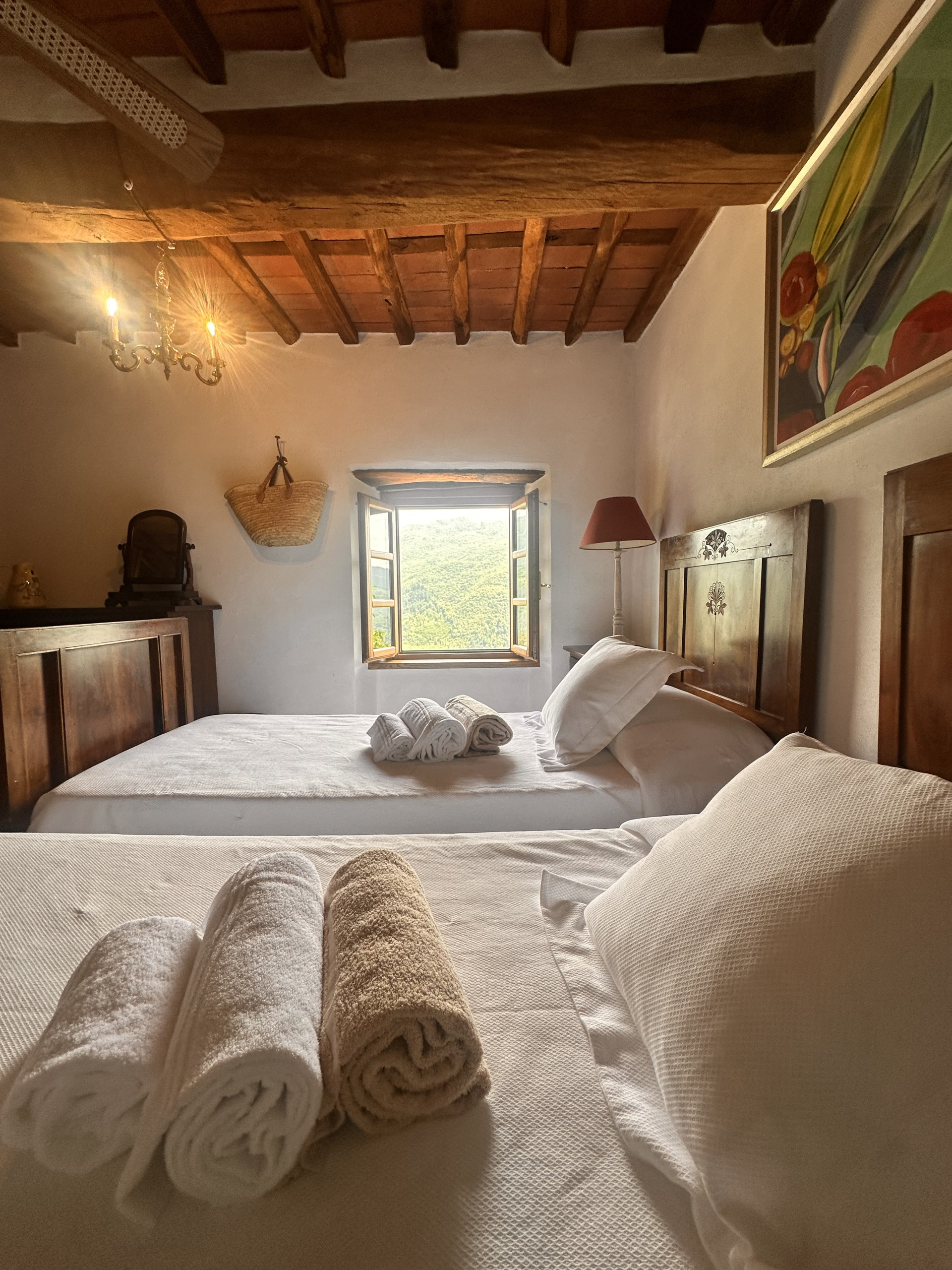 The house in Bagni di Lucca has 5 bedrooms and has capacity for 10 people. High on the hills above the Lima valley, surrounded only by tinkling goat bells and the constant hum of cicadas, is our beautiful home in Northern Tuscany. Lo Scopeto is a nineteenth century, traditional farmhouse which we have, as a family, carefully restored and lovingly brought back to life. We invite you to escape the grind of daily life and experience its simplicity & charm.