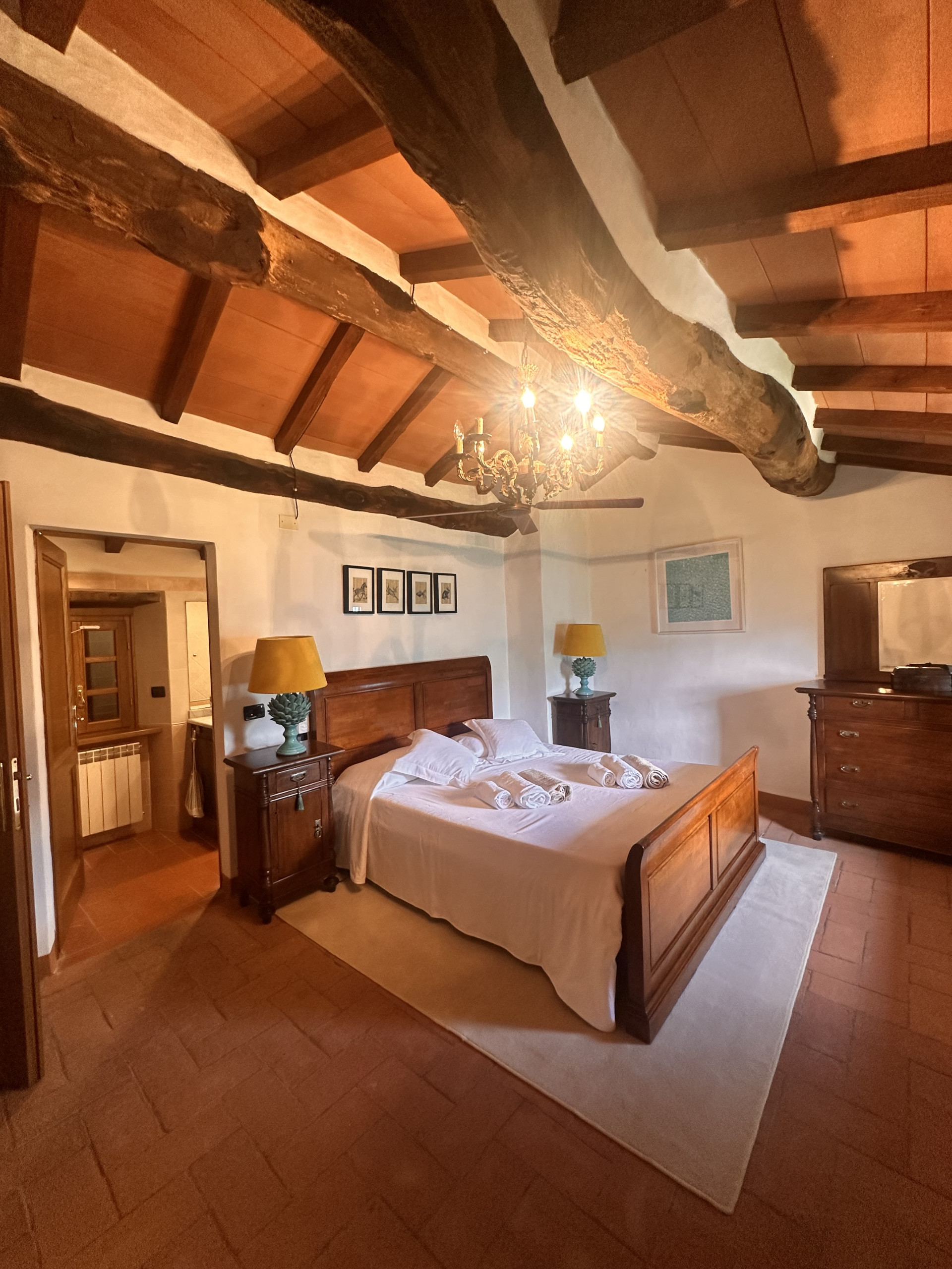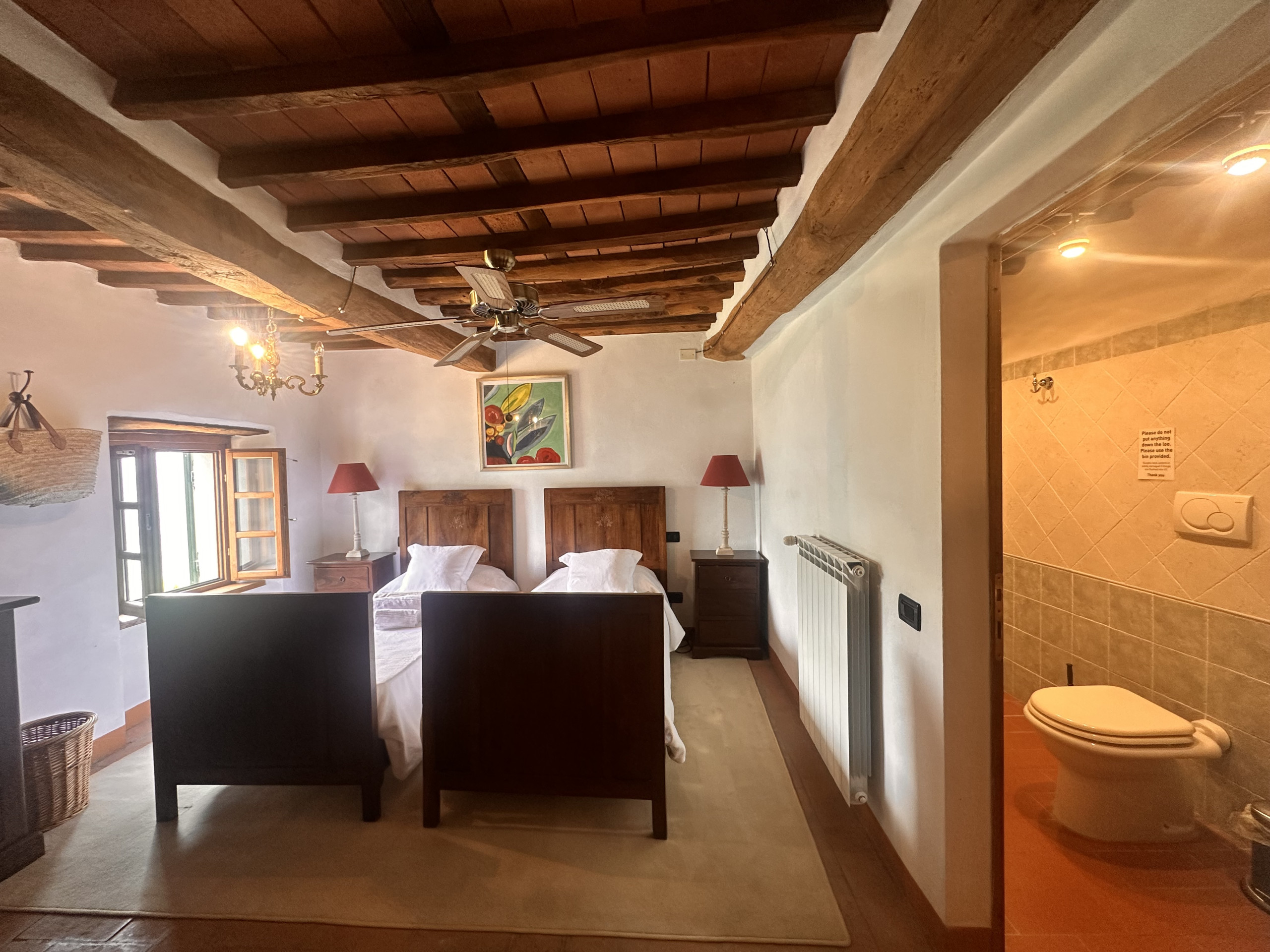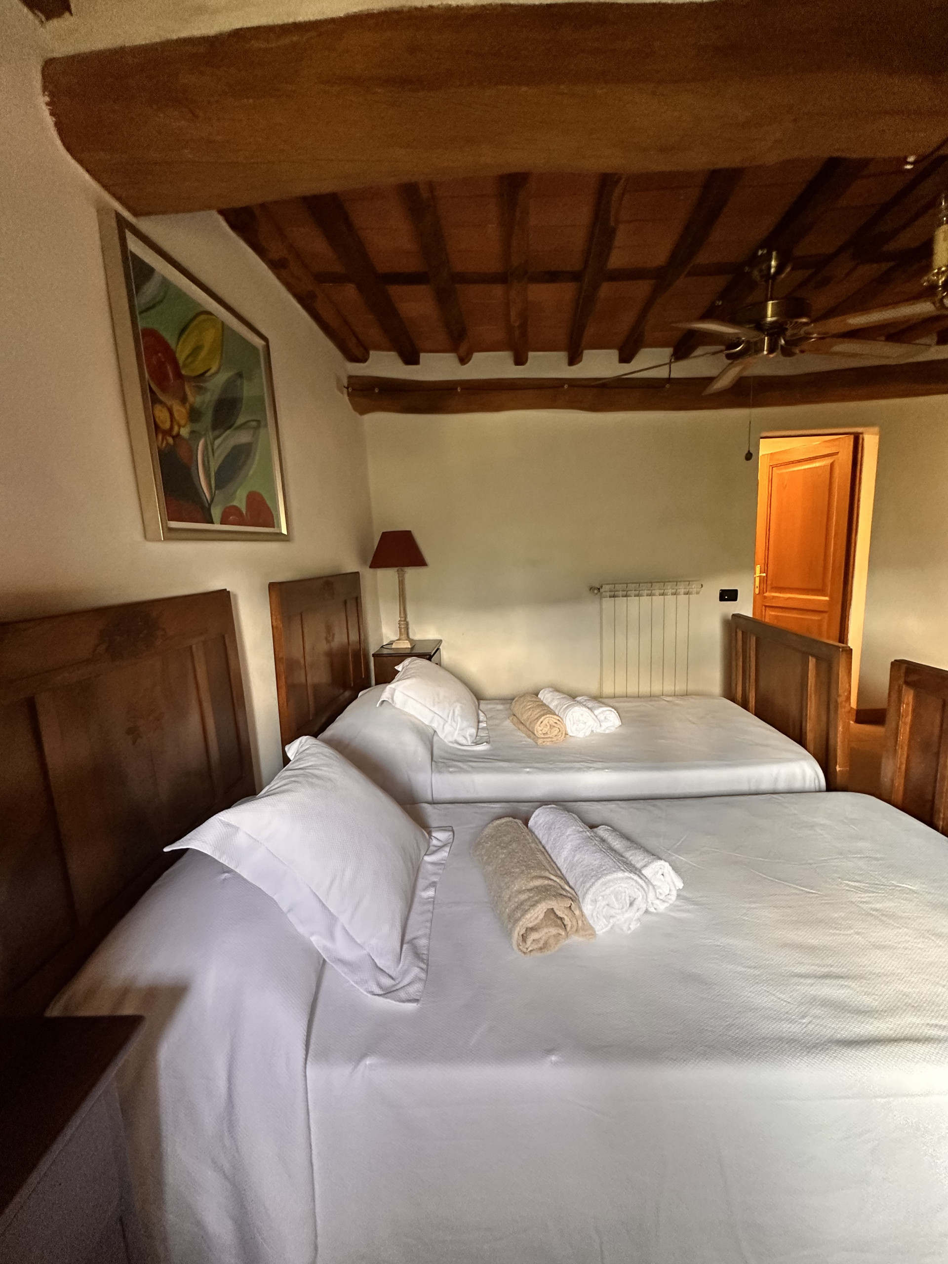 Lo Scopeto is a family-friendly, traditional farmhouse which can comfortably accommodate up to 10 guests in its 5 double/twin ensuite bedrooms. These rooms can be arranged as 5 doubles or as 2 doubles & 3 twins. We welcome children and 2 cots are available on request. Unfortunately, we are unable to accommodate pets.