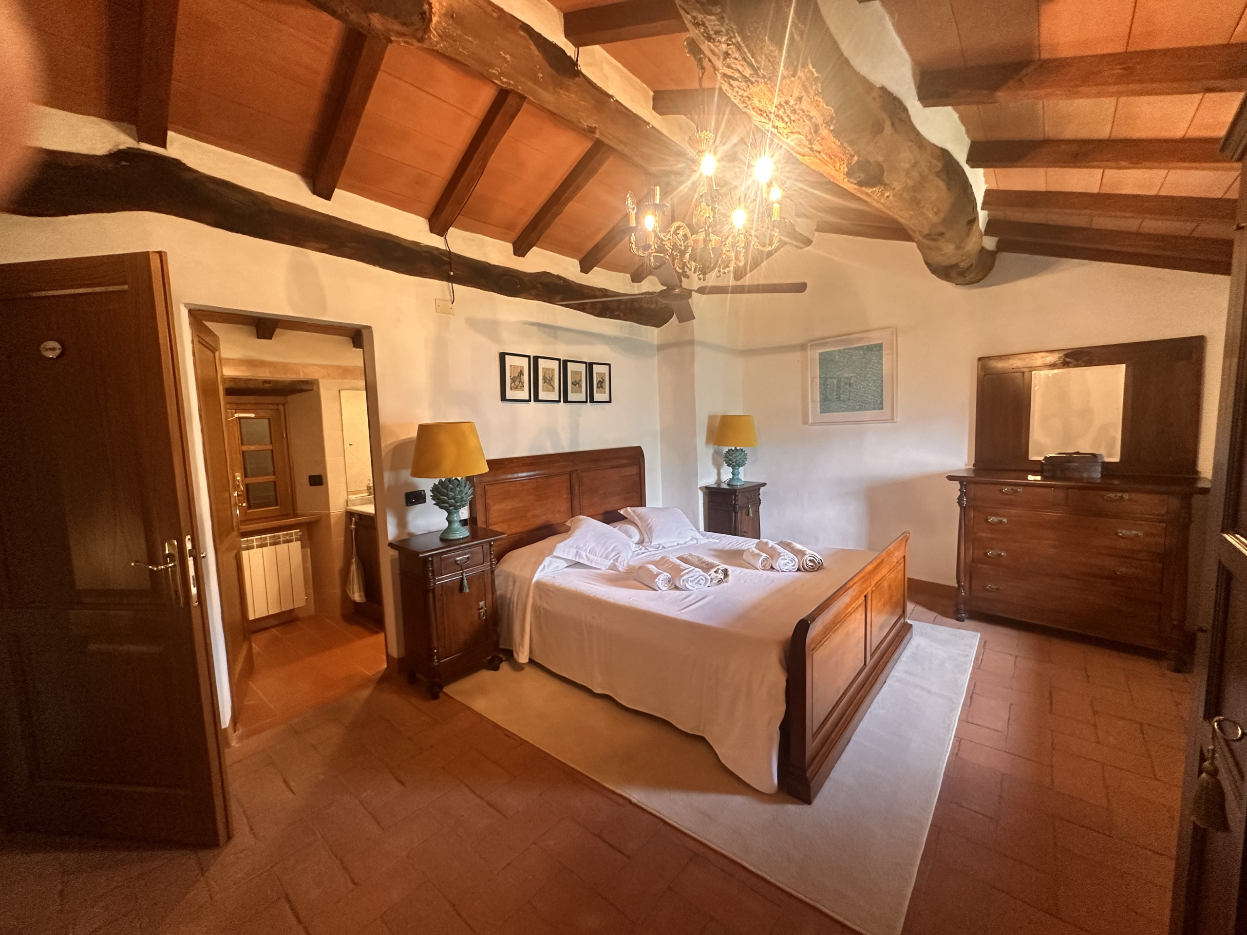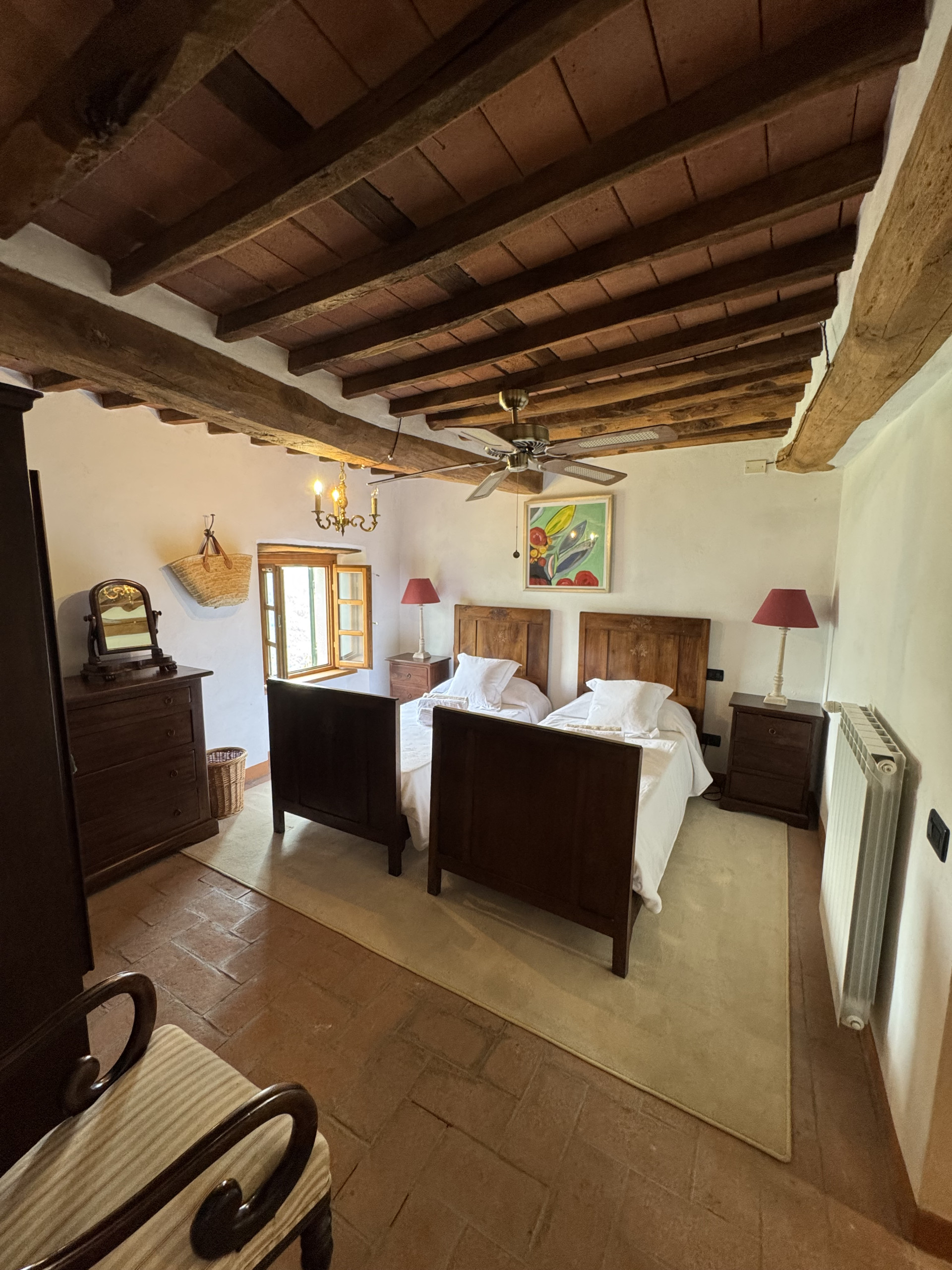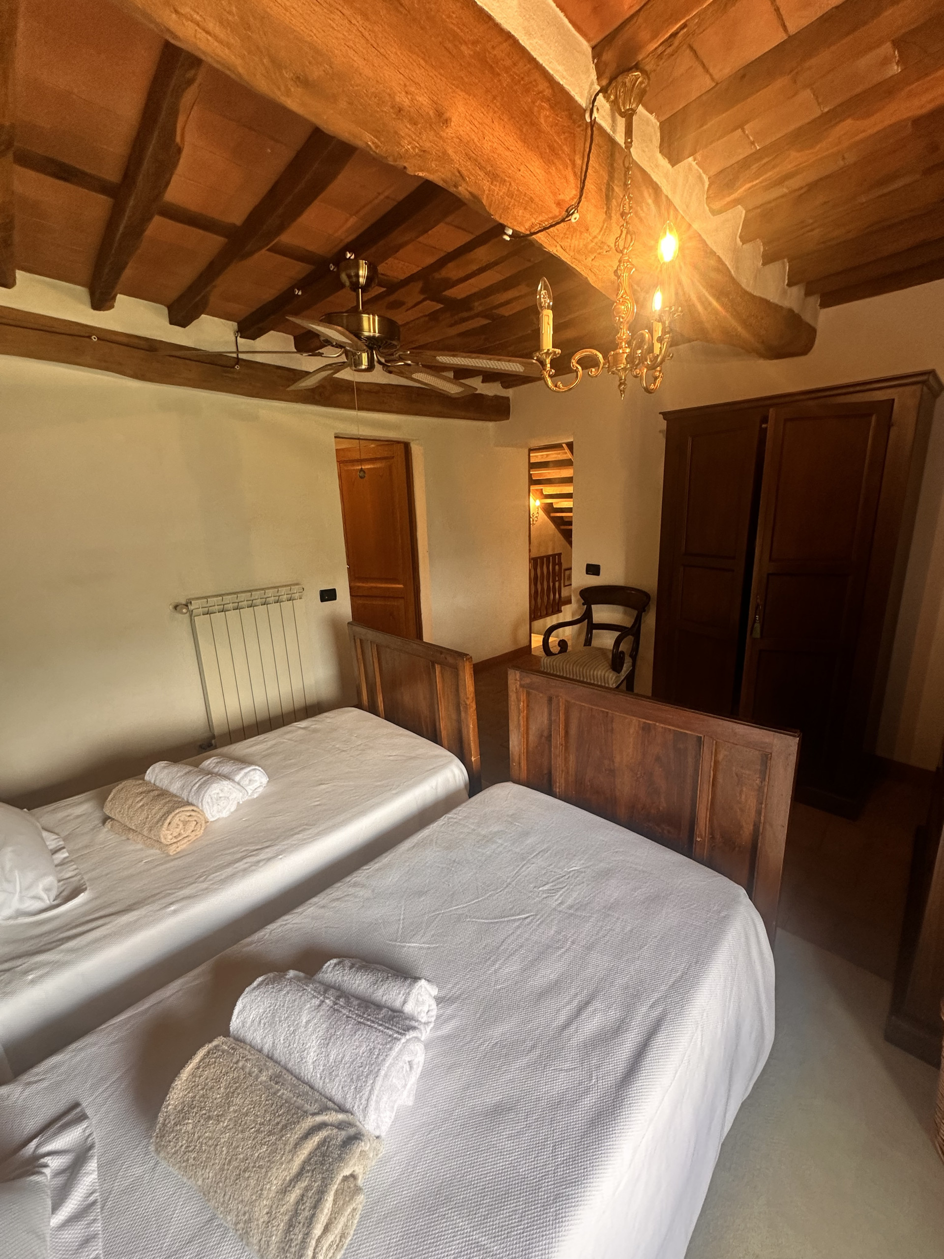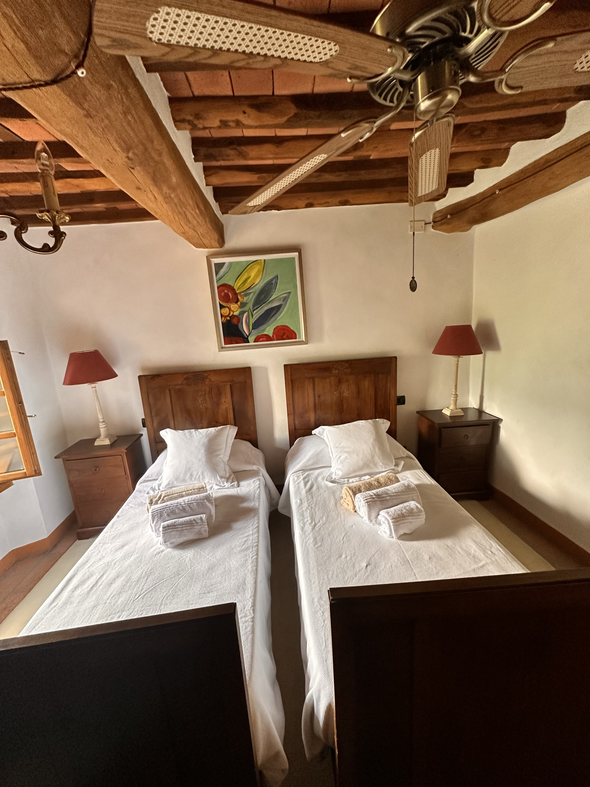 Lo Scopeto is a family-friendly, traditional farmhouse which can comfortably accommodate up to 10 guests in its 5 double/twin ensuite bedrooms. These rooms can be arranged as 5 doubles or as 2 doubles & 3 twins. We welcome children and 2 cots are available on request. Unfortunately, we are unable to accommodate pets.