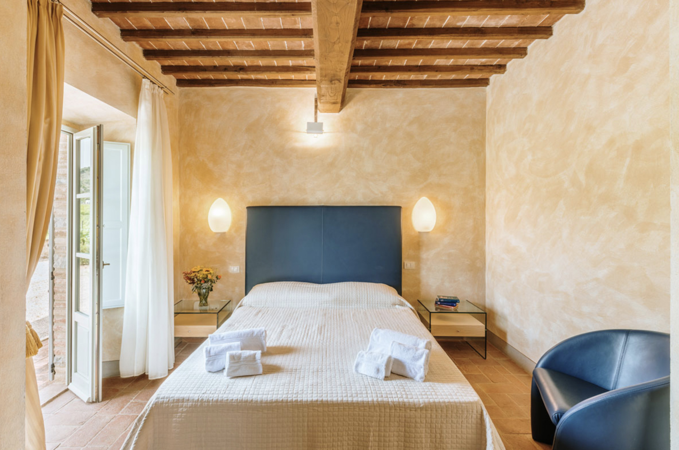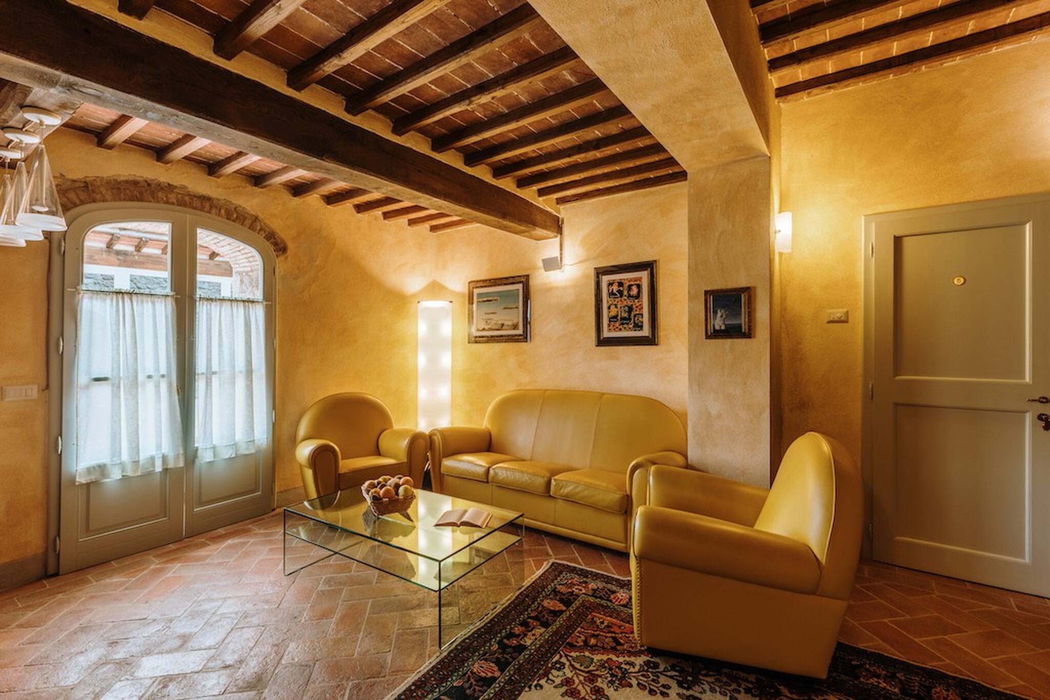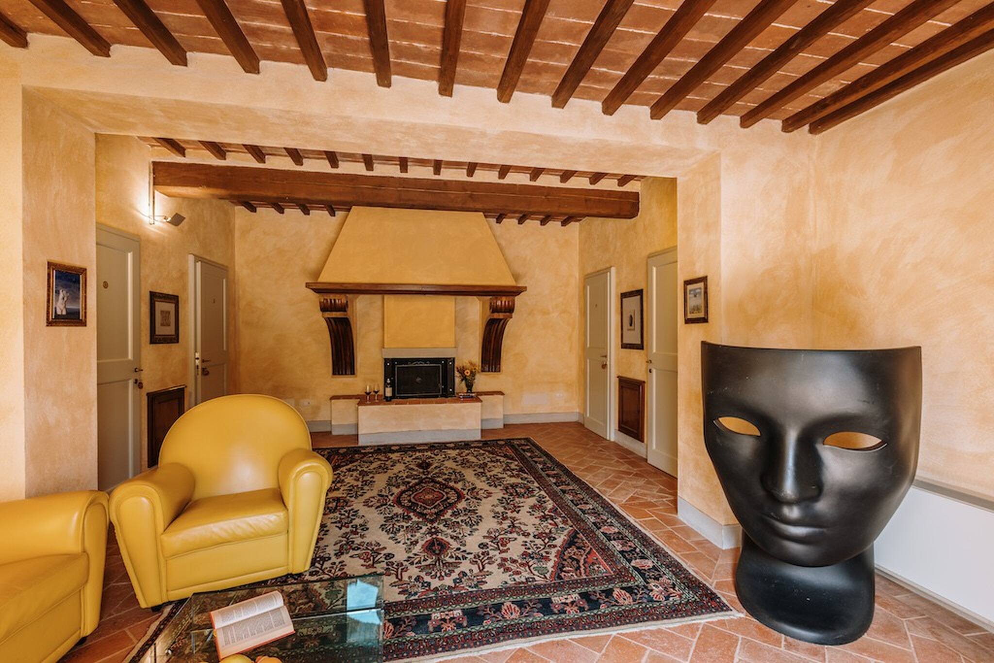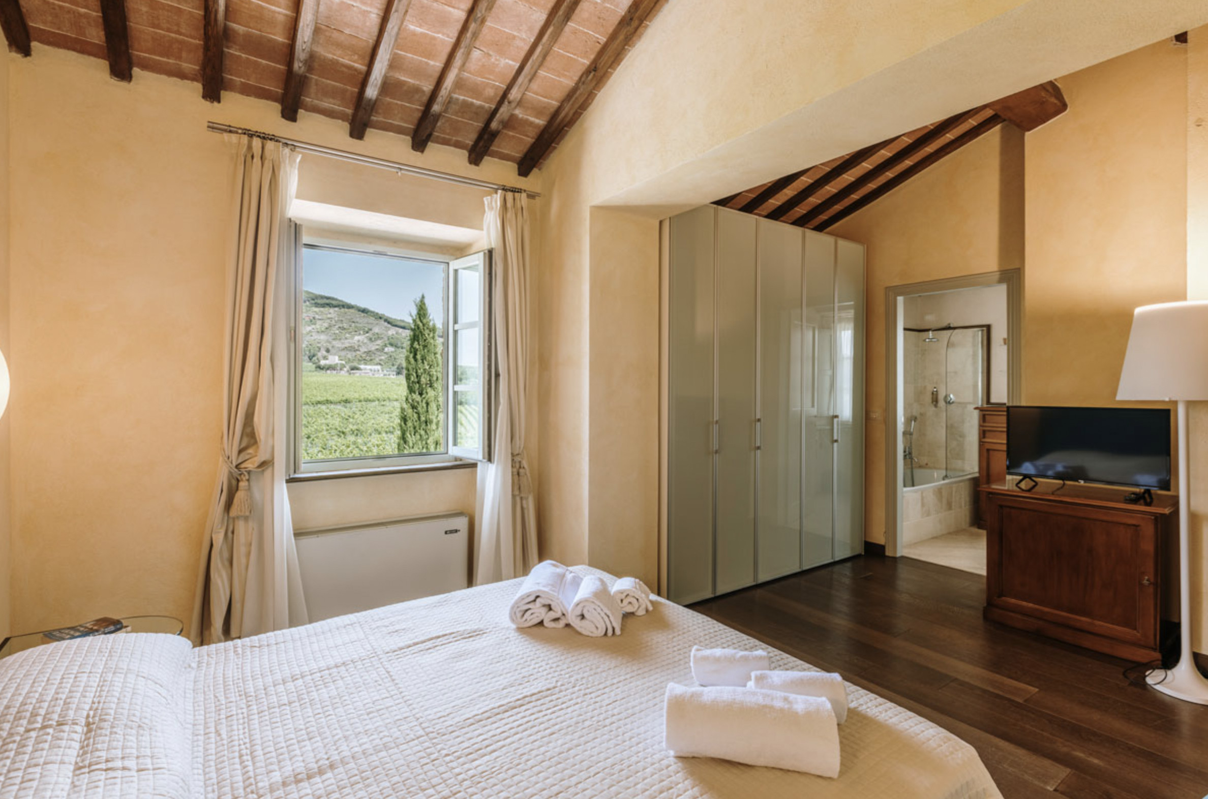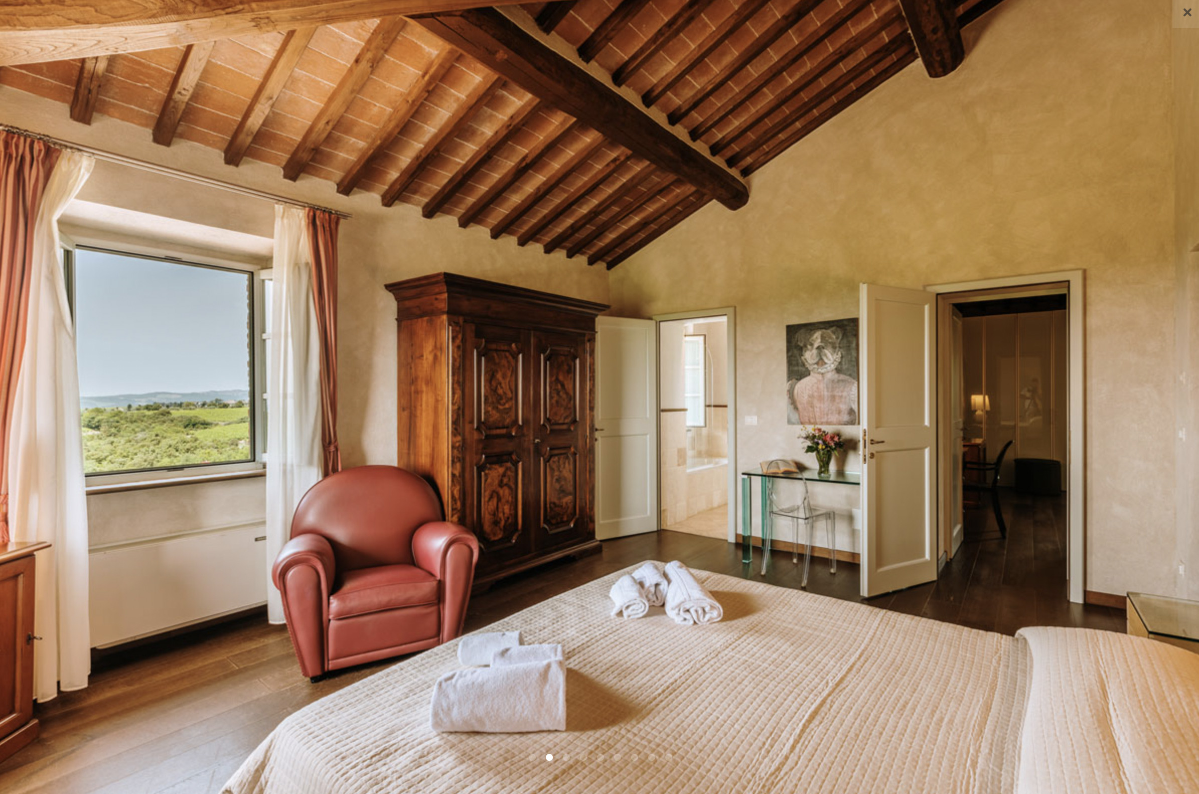 The inside of the villa has the high quality finishes typical of rural Tuscan architecture: handmade cotto floors, ceilings with wooden beams , stone walls while on the hot Summer evenings the outside areas are perfect for living under the stars with family or friends. All the furnishings have been chosen with care for details it is an ideal place for comfort and relax.