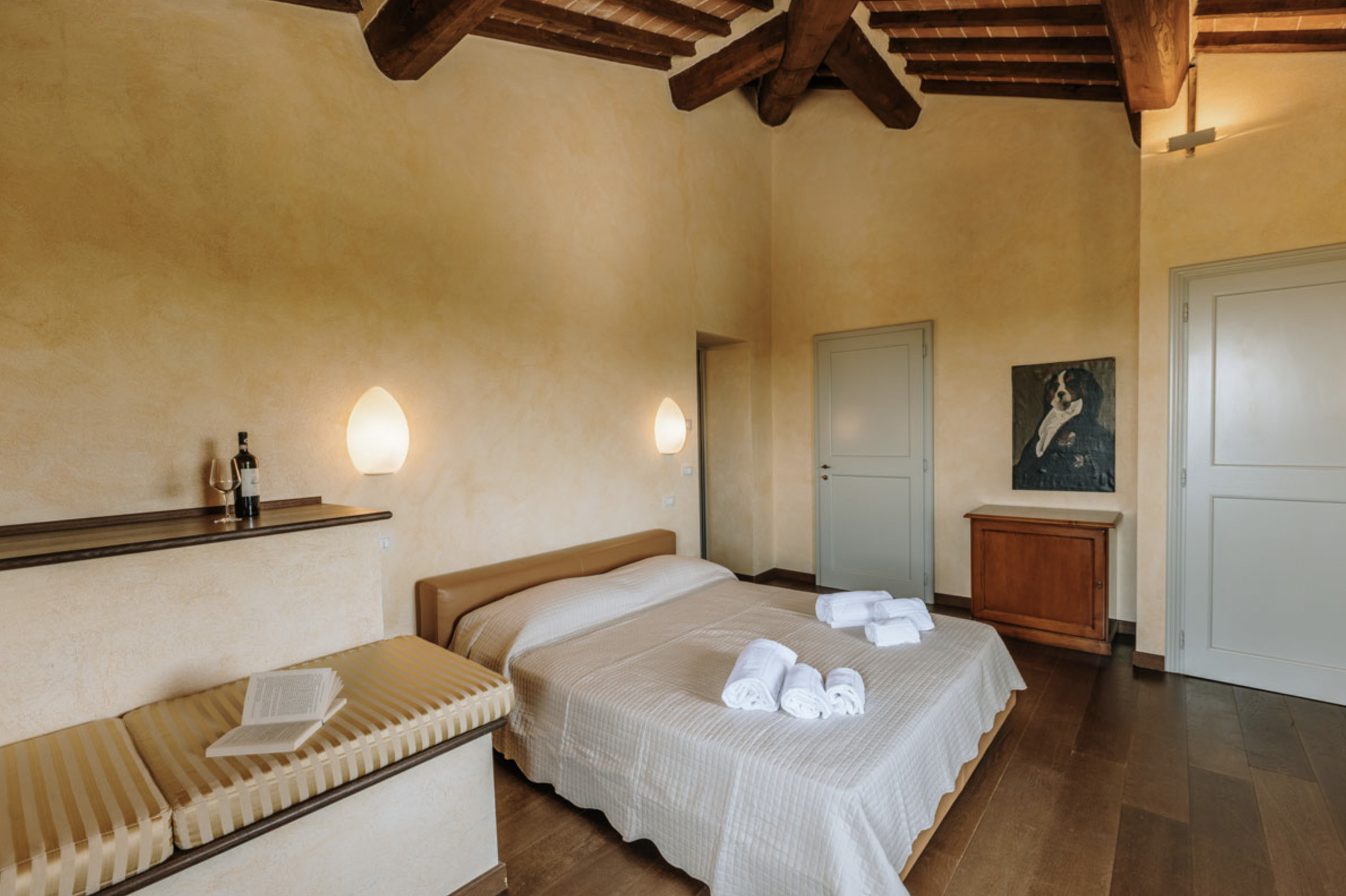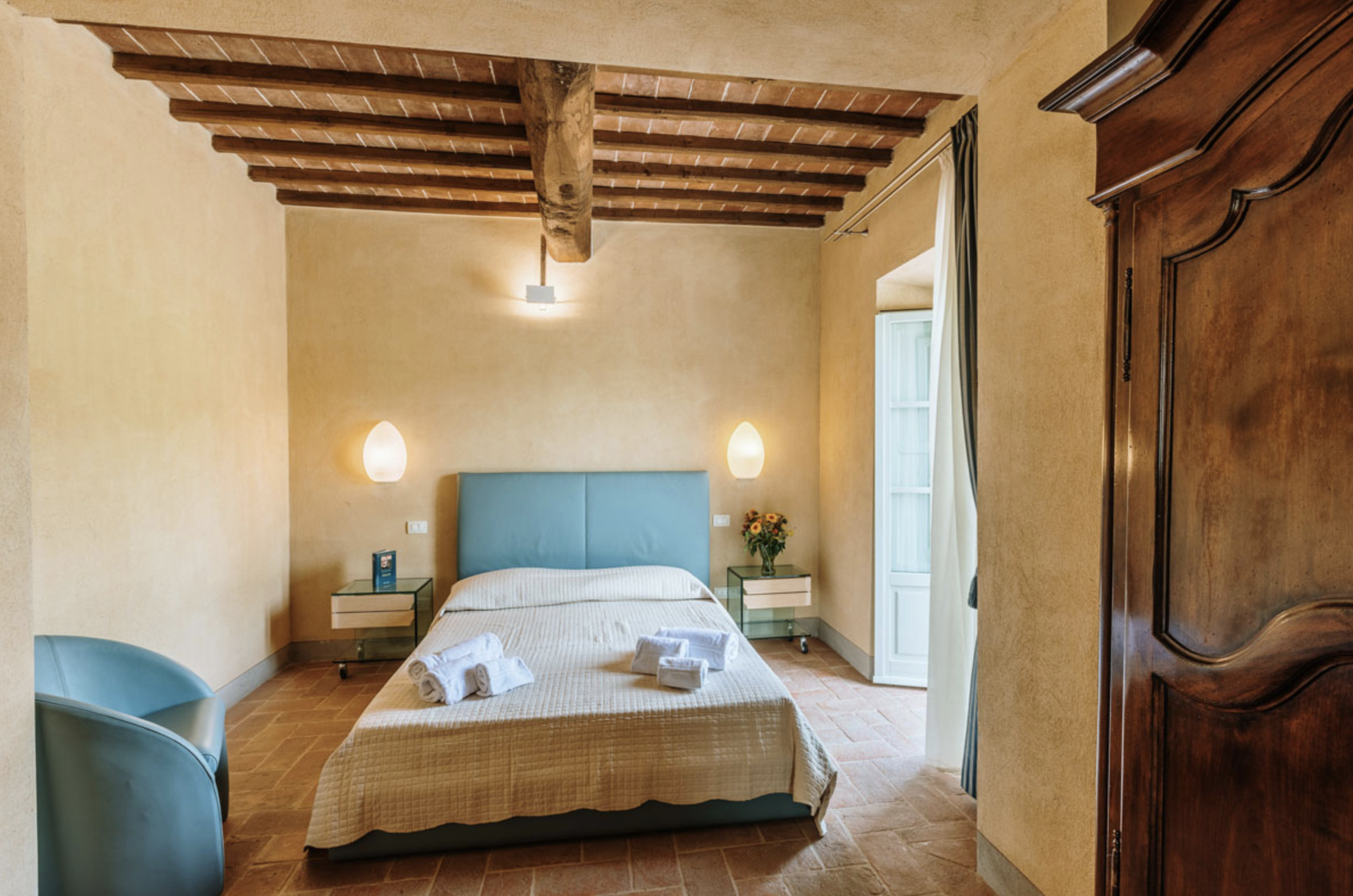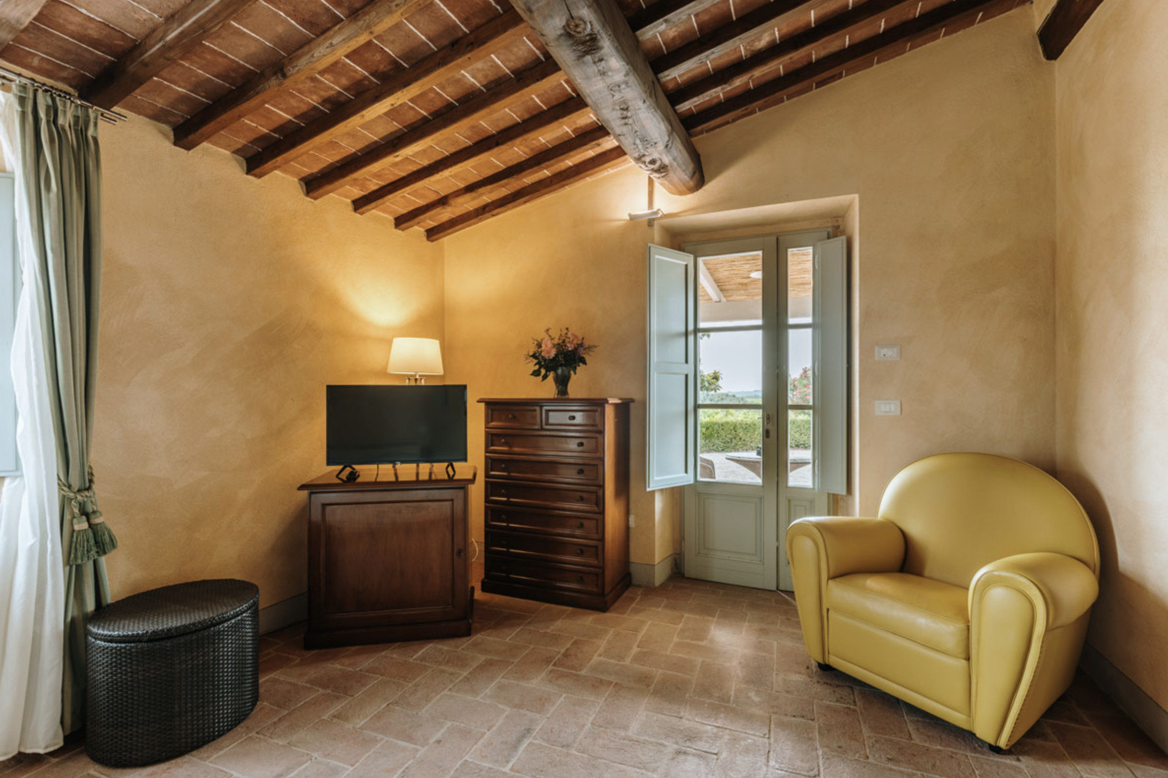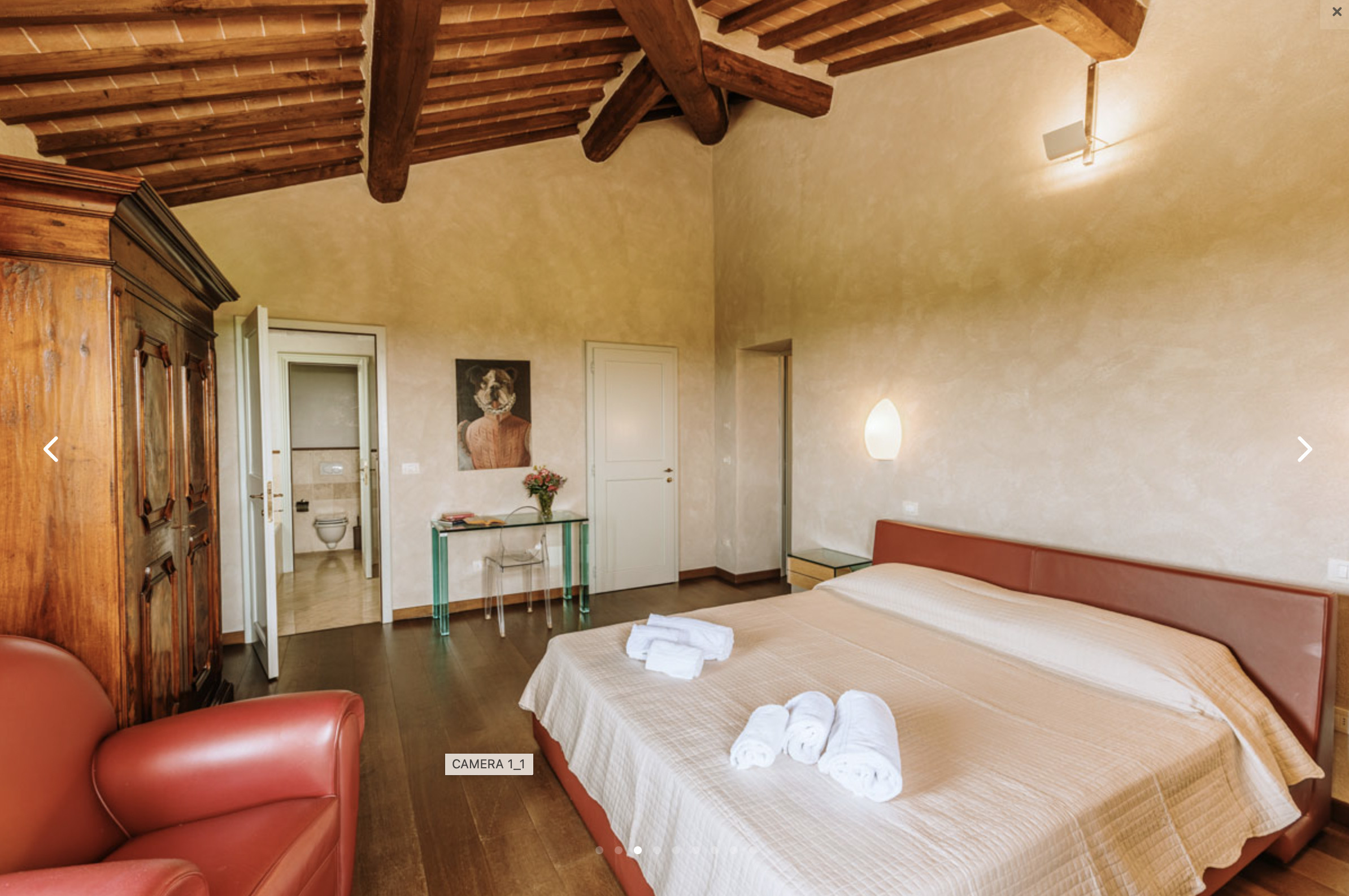 The inside of the villa has the high quality finishes typical of rural Tuscan architecture: handmade cotto floors, ceilings with wooden beams , stone walls while on the hot Summer evenings the outside areas are perfect for living under the stars with family or friends. All the furnishings have been chosen with care for details it is an ideal place for comfort and relax.
