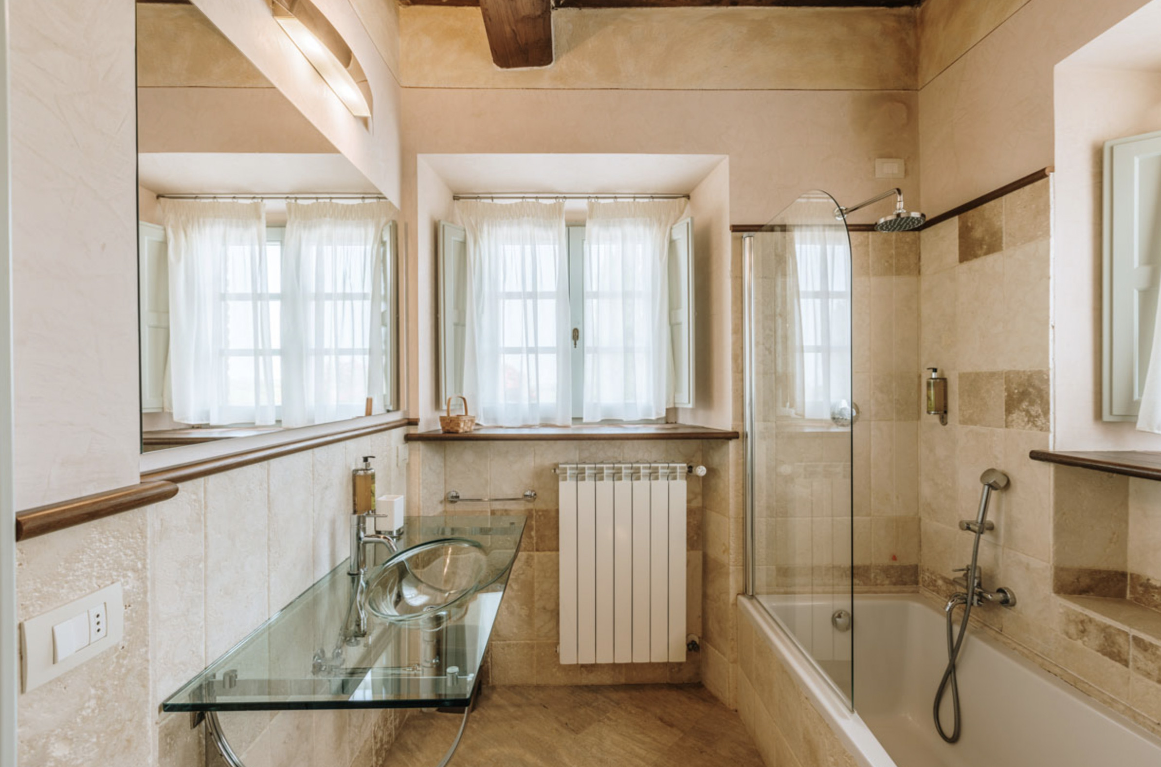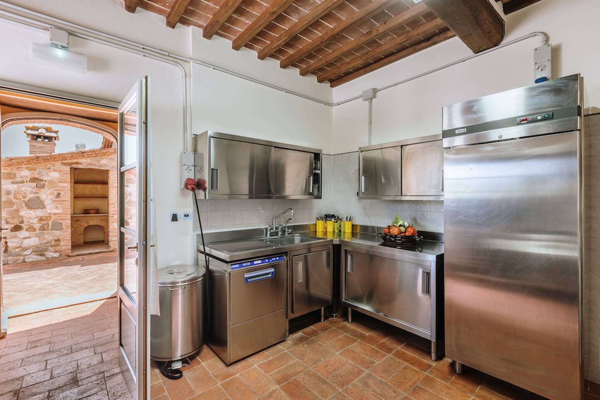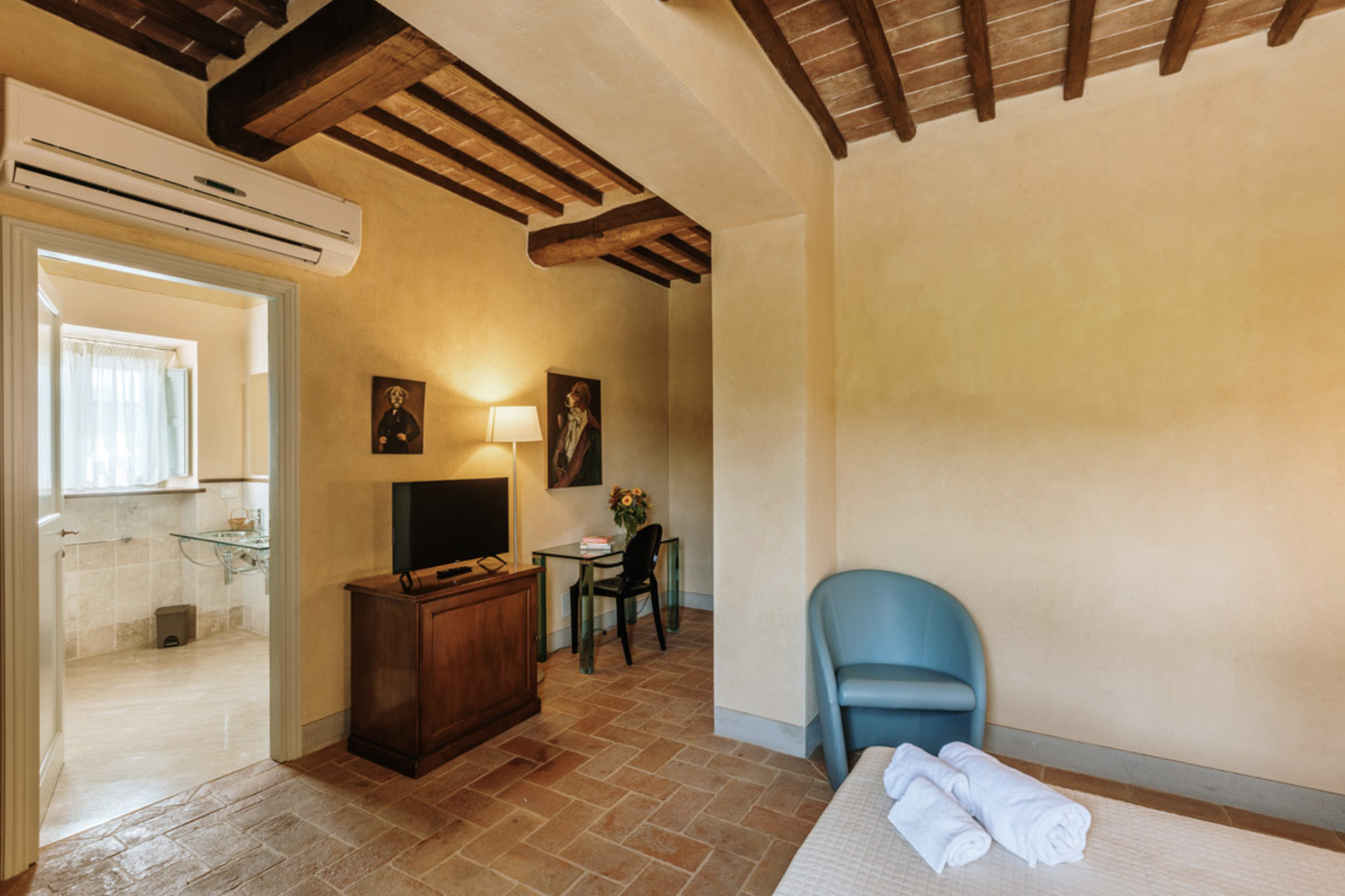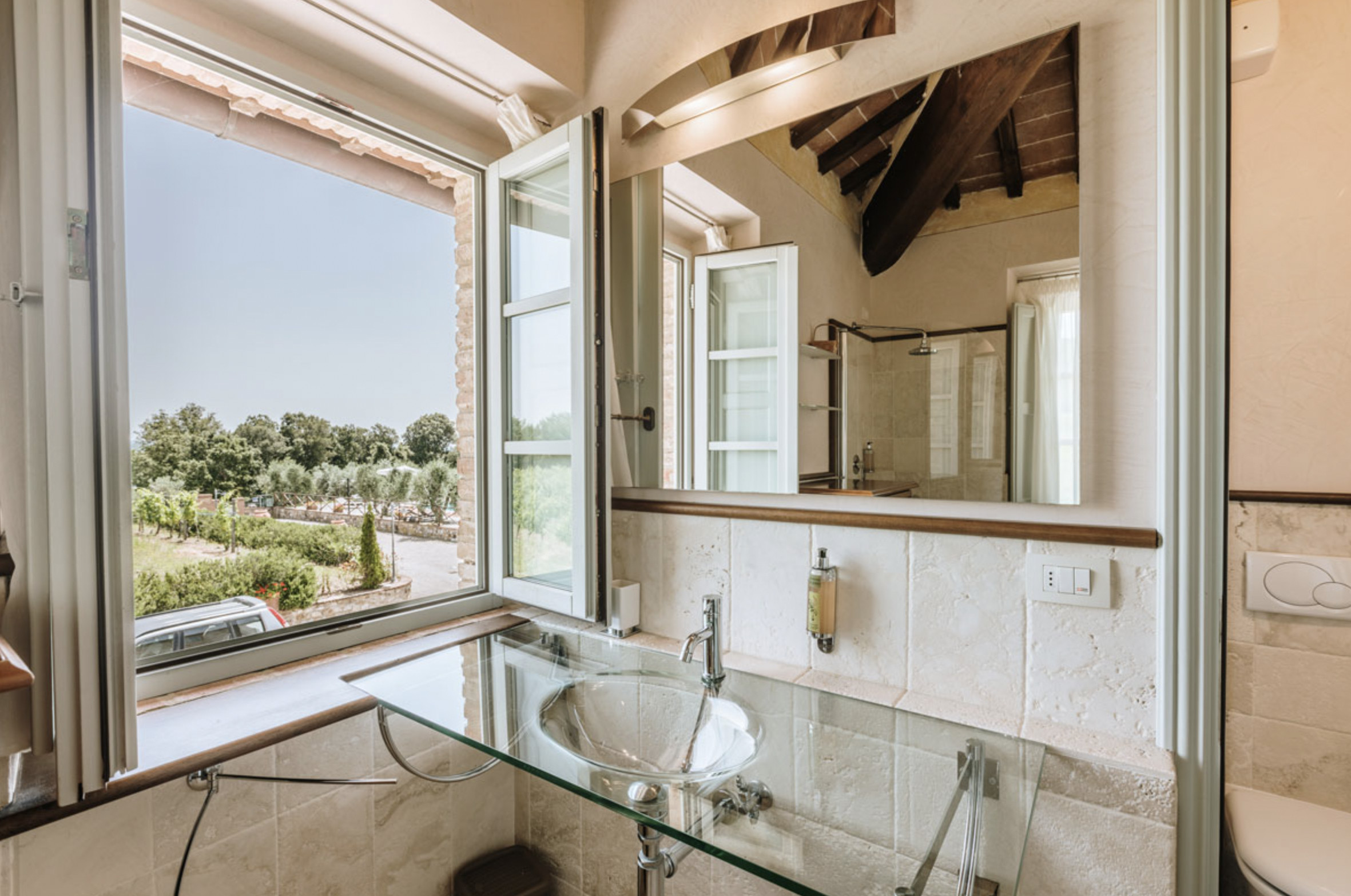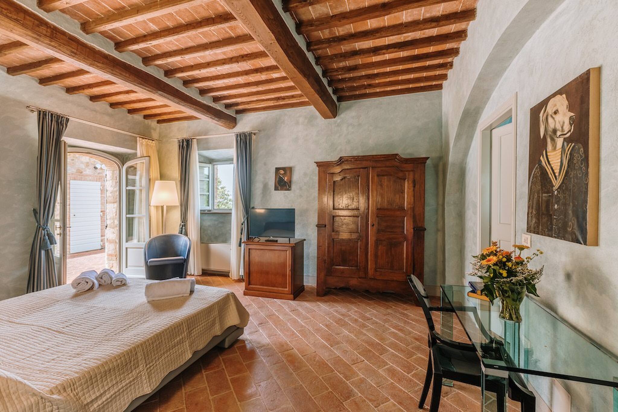 The inside of the villa has the high quality finishes typical of rural Tuscan architecture: handmade cotto floors, ceilings with wooden beams , stone walls while on the hot Summer evenings the outside areas are perfect for living under the stars with family or friends. All the furnishings have been chosen with care for details it is an ideal place for comfort and relax.