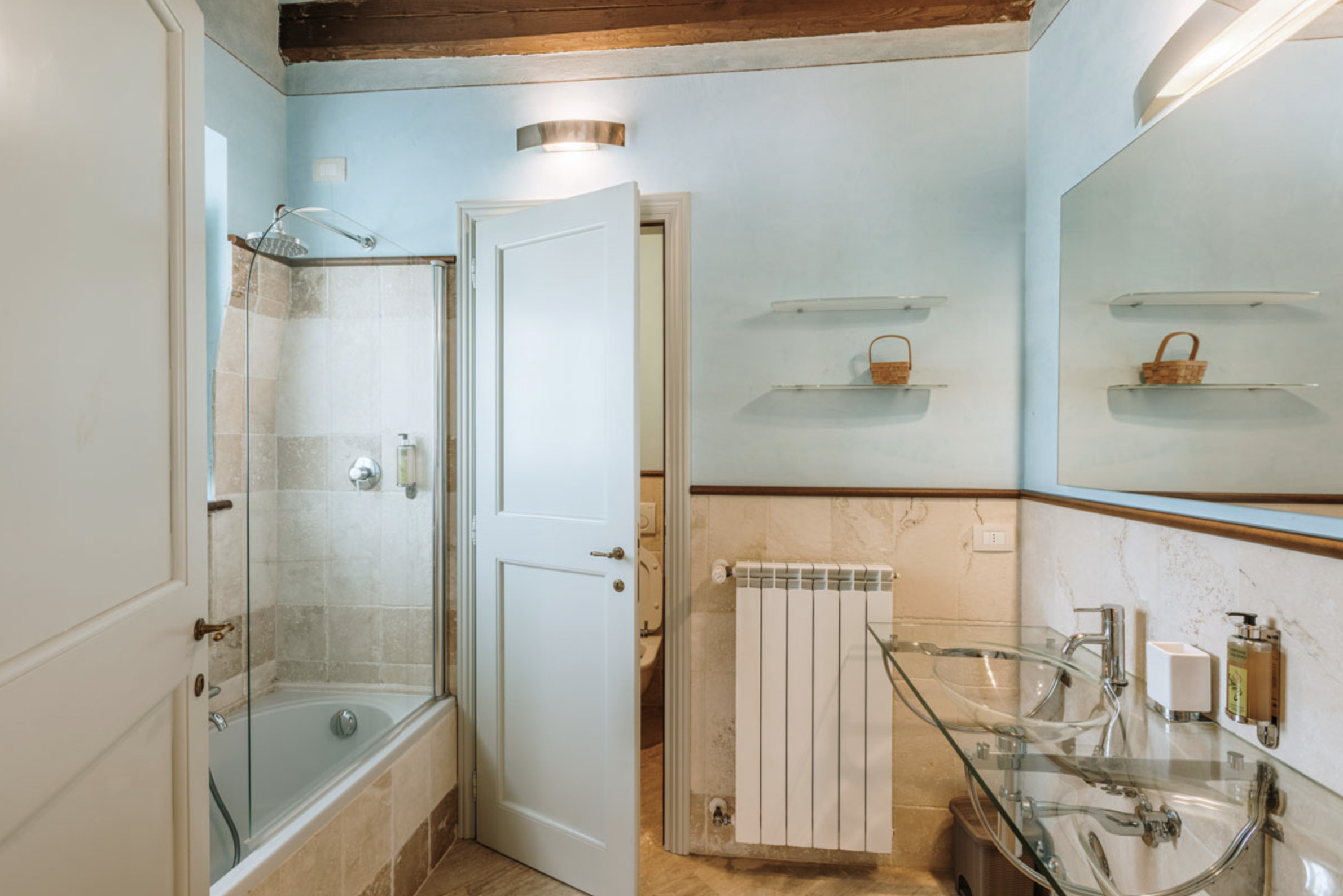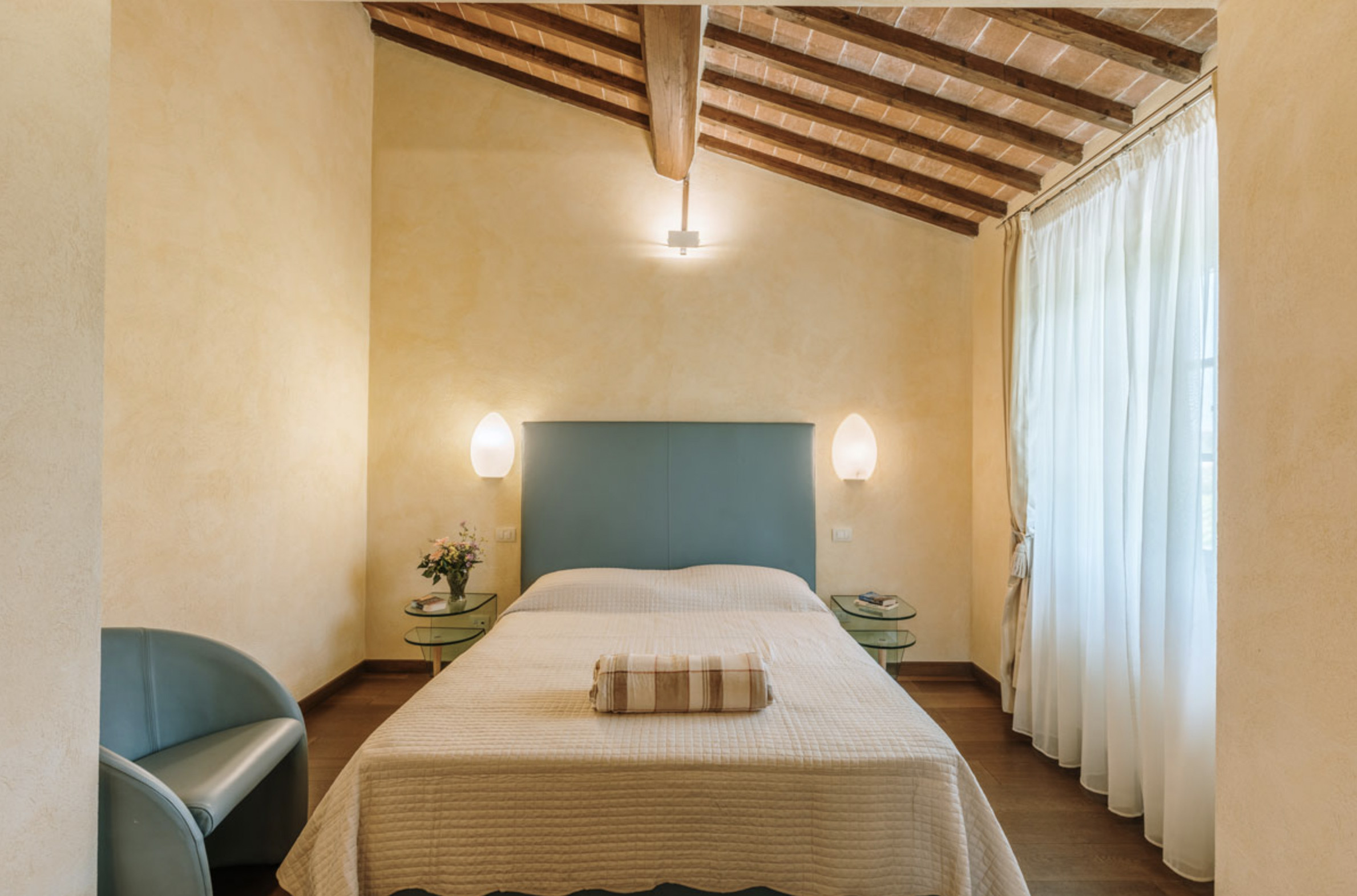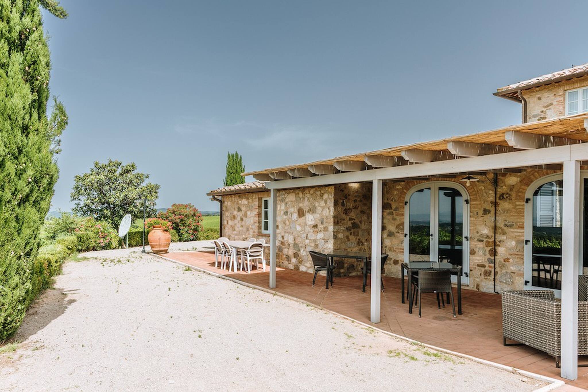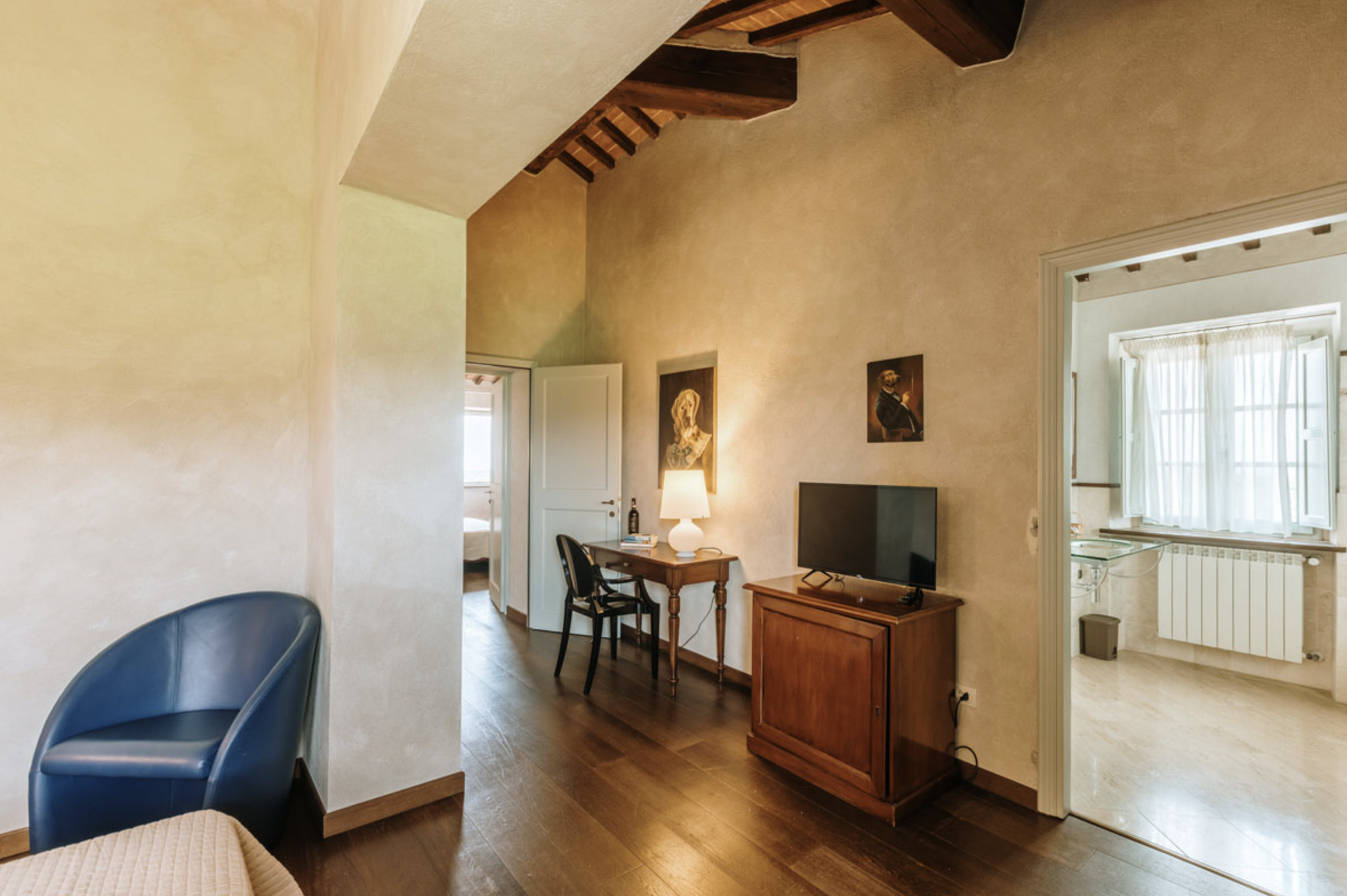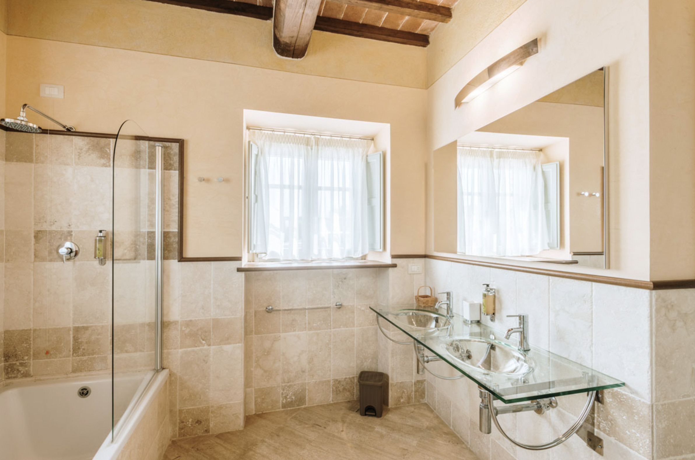 The inside of the villa has the high quality finishes typical of rural Tuscan architecture: handmade cotto floors, ceilings with wooden beams , stone walls while on the hot Summer evenings the outside areas are perfect for living under the stars with family or friends. All the furnishings have been chosen with care for details it is an ideal place for comfort and relax.