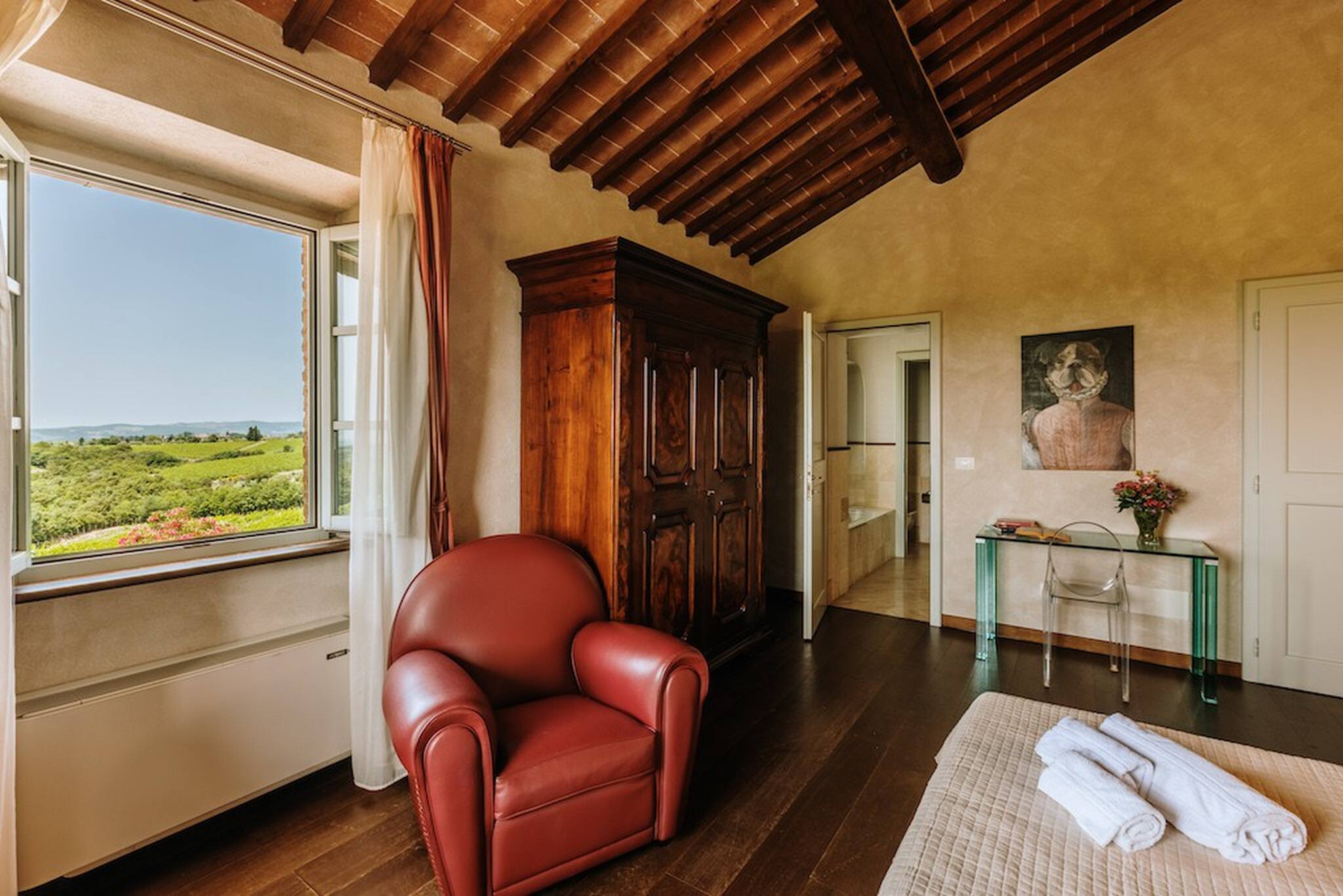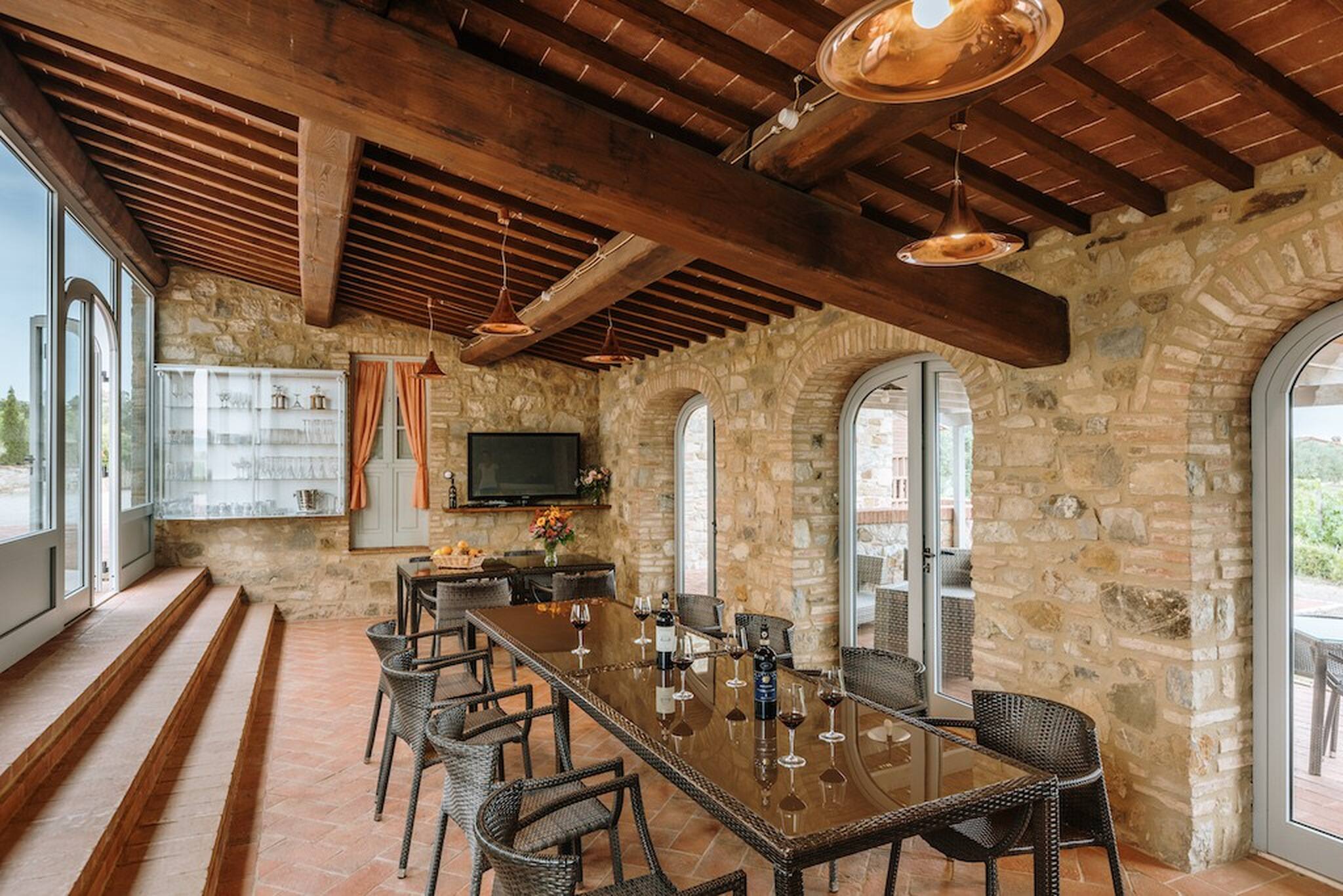 Surrounded by the green hills of Chianti and with a magnificent view over vineyards and pool is the ideal place for those who are searching for an ideal holiday in the charms of the Tuscan countryside.