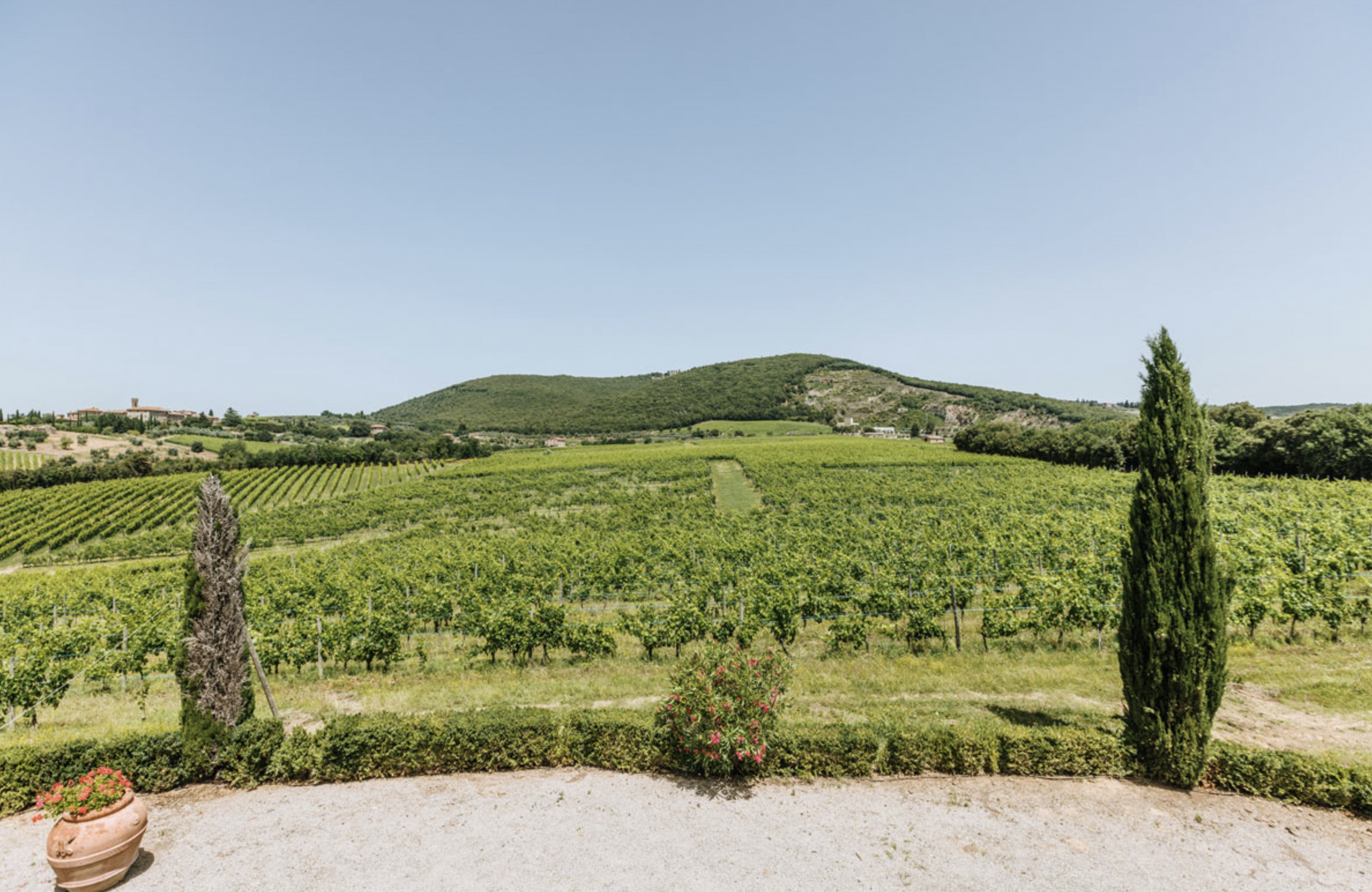 distance from the town of Villa a Sesta, in the province of Siena. It is a villa in which the elegance of tradition has been reinvented and has learnt to live side by side with modern elegance. The property extends for more than 1,100 hectares of grounds, of which 47hectares are of specialized vineyard, predominantly Sangiovese, the base of Chianti Classico. The composition of the soil, the height, the particular exposition to the sun, the particular micro-climate and the selection of the grapes are the fundamental for the quality of the wines of Villa