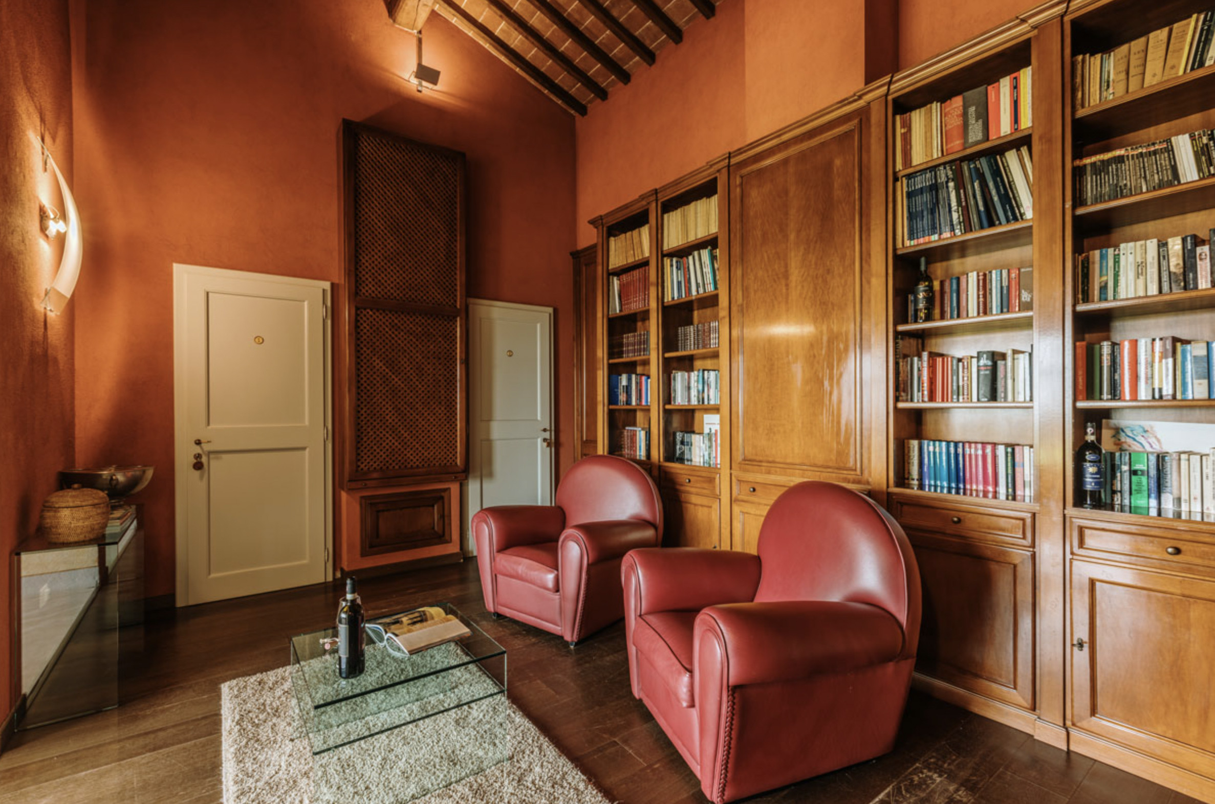 On the first floor there is a lounge room it’s bookcase, TV and a vetrata from which to enjoy the beautiful panorama. It has 4