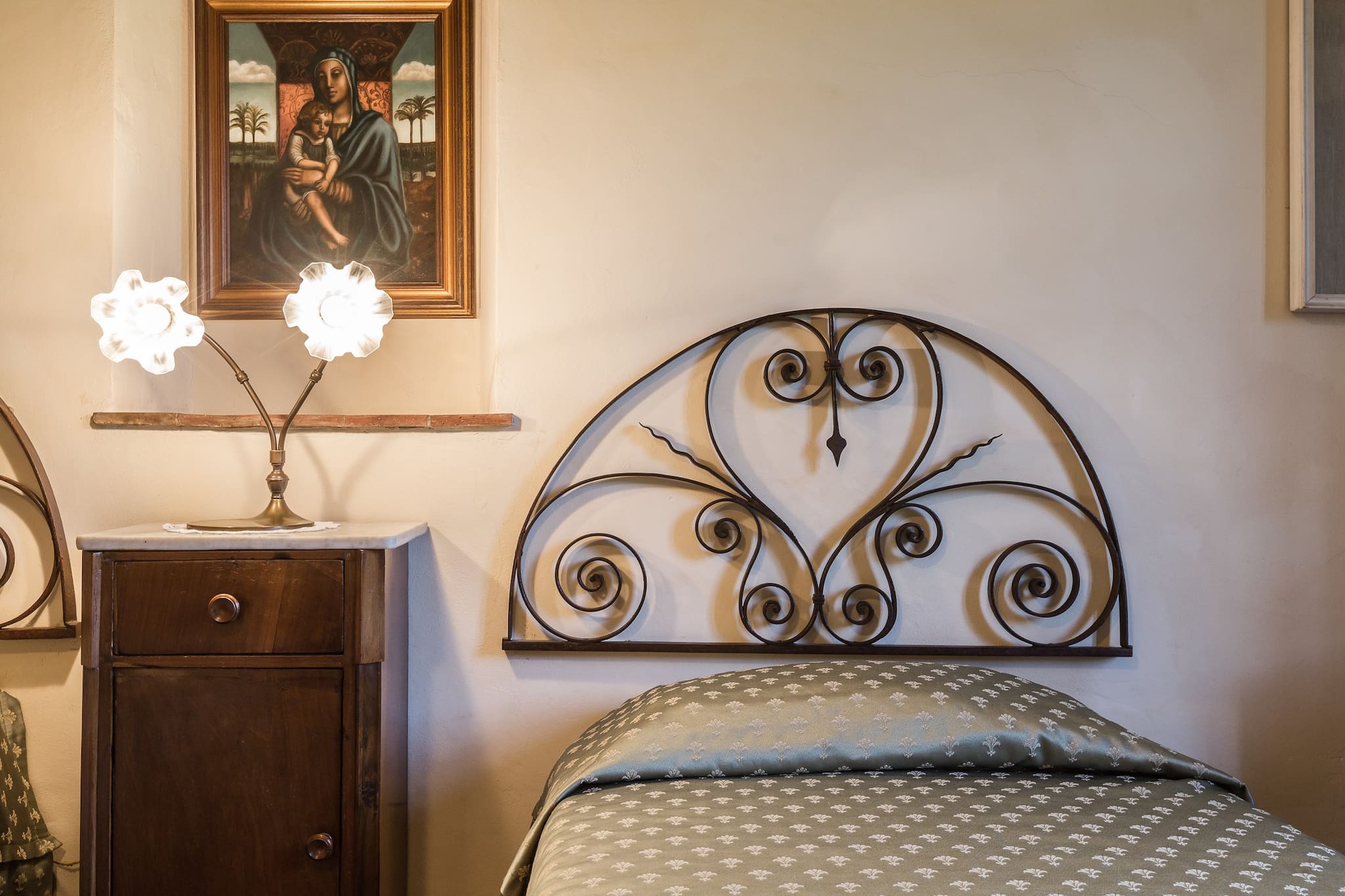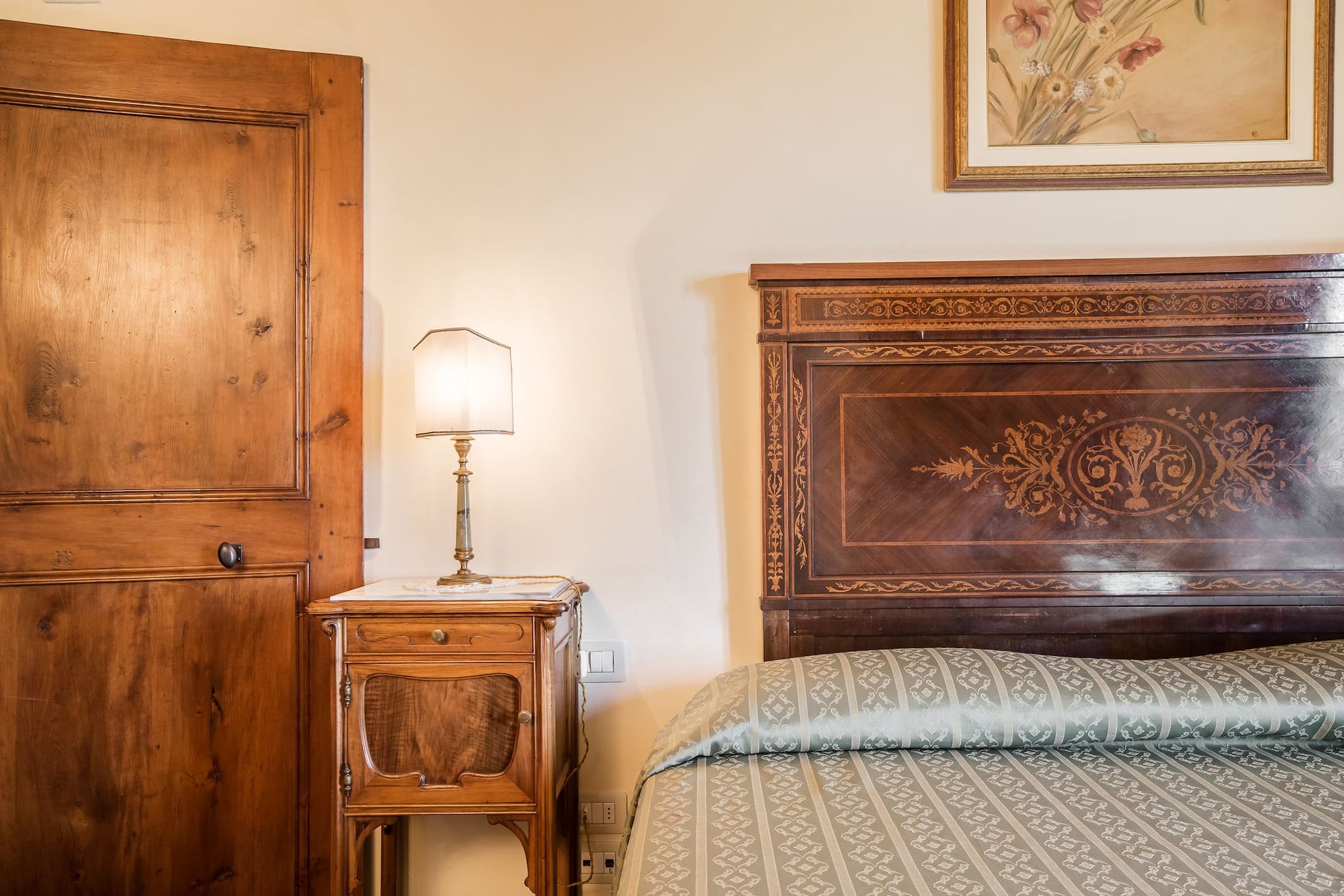 The mezzanine floor, accessible from the large dining room by means of an open staircase of 9 steps, consists of a bedroom with 2 single beds with wrought-iron headboards from the 18th century, a Piedmontese wardrobe from the mid-1800s, half-length Tuscan bedside table '800, a mid-18th century turnaround and an English desk from the end of the 19th century.