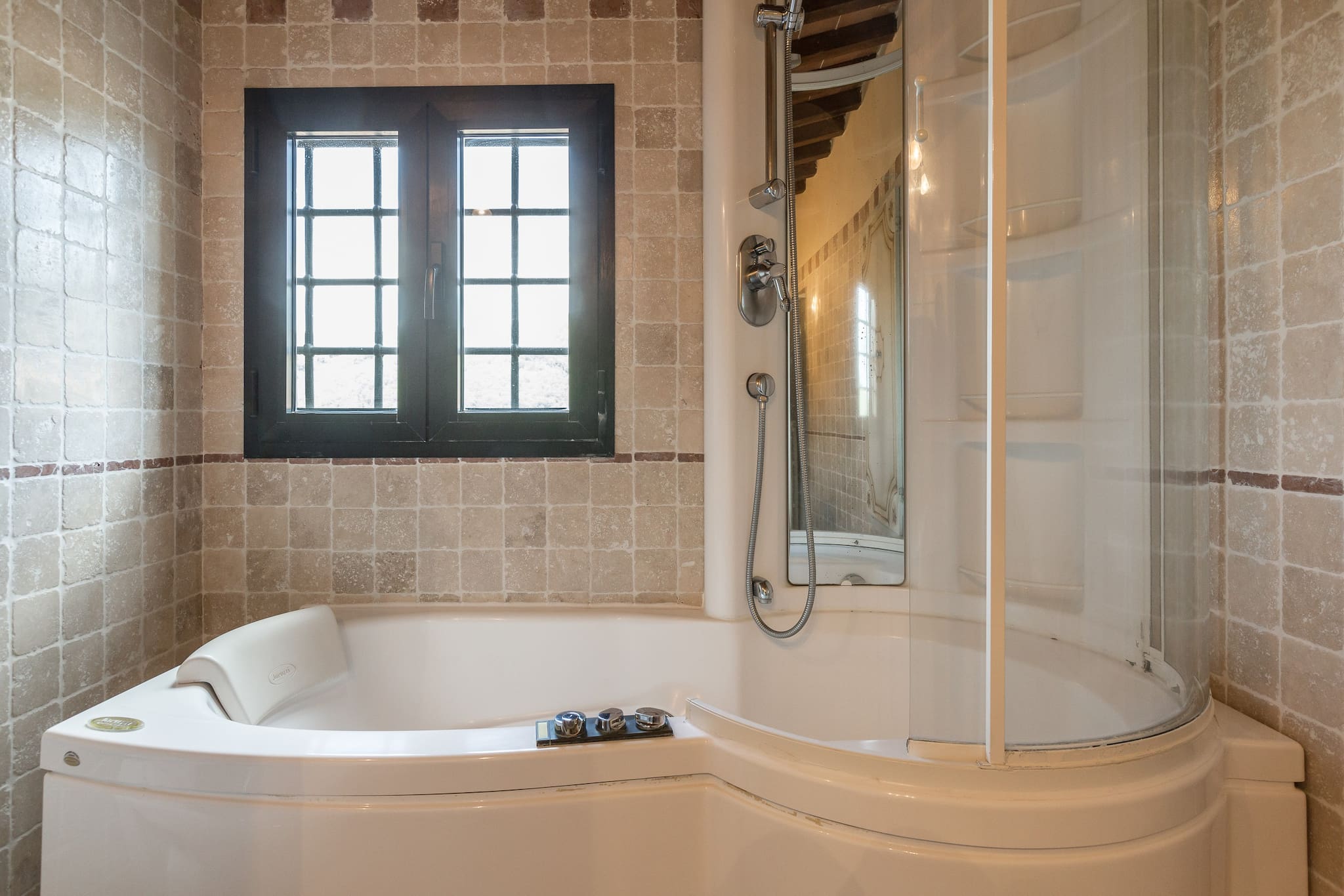 • bathroom with Jacuzzi tub and shower, shared by a triple room and a single room
