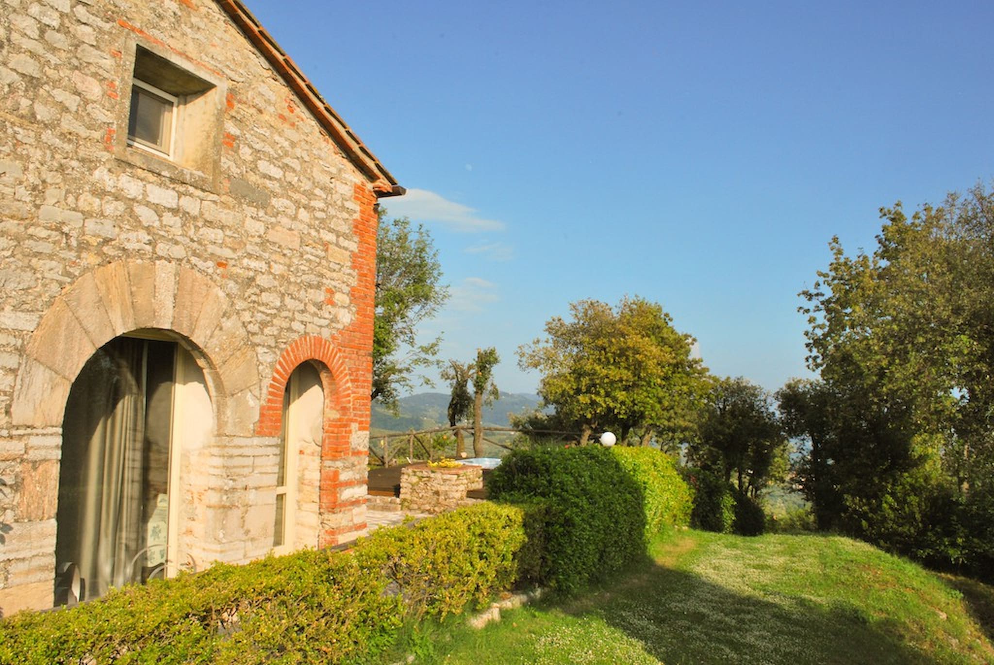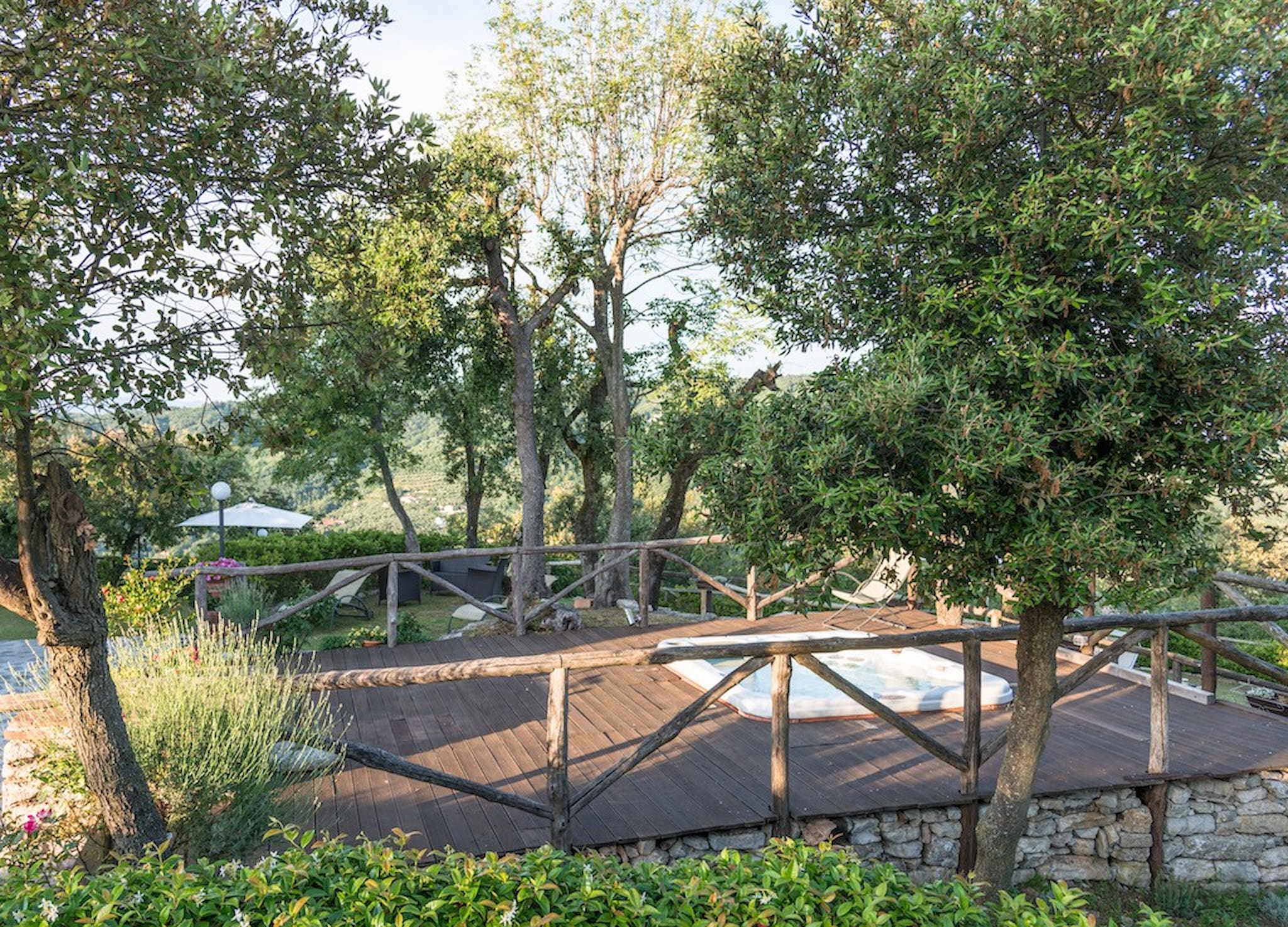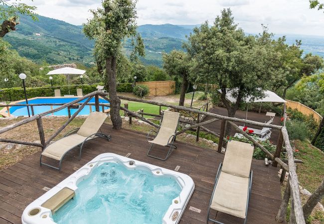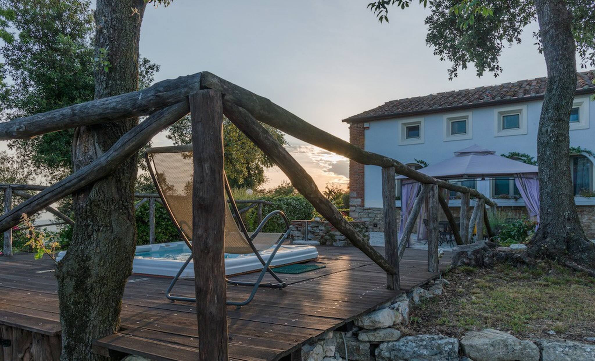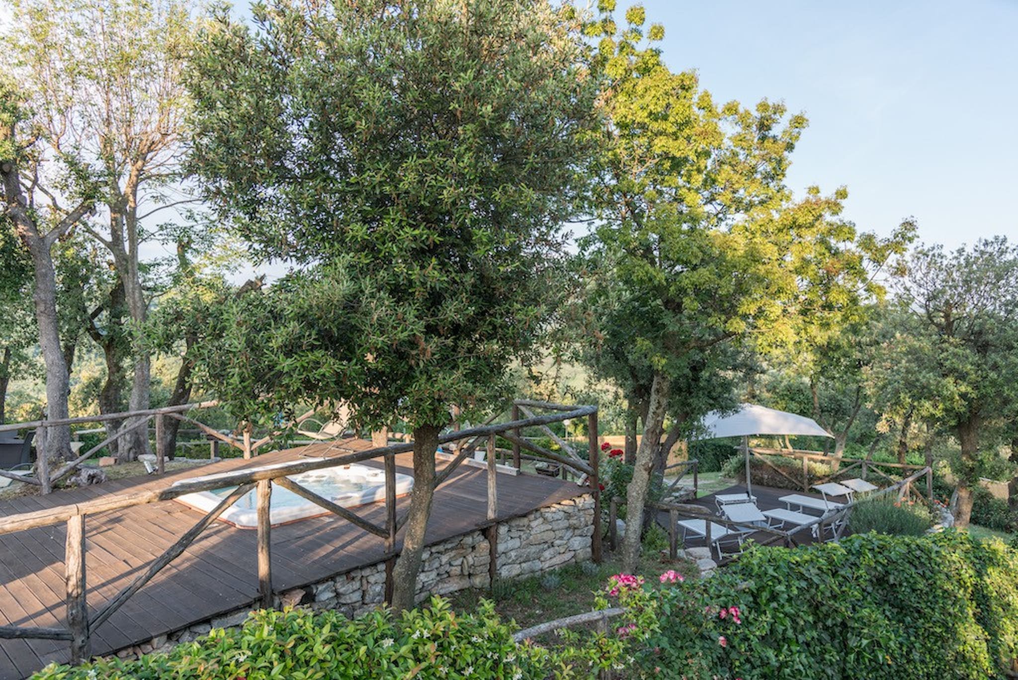 The Swimming Pool (6 mt. x 3,90 mt. with depth 112 cm) is framed by Tuscan hills . The Jacuzzi is located in the garden, among the trees.