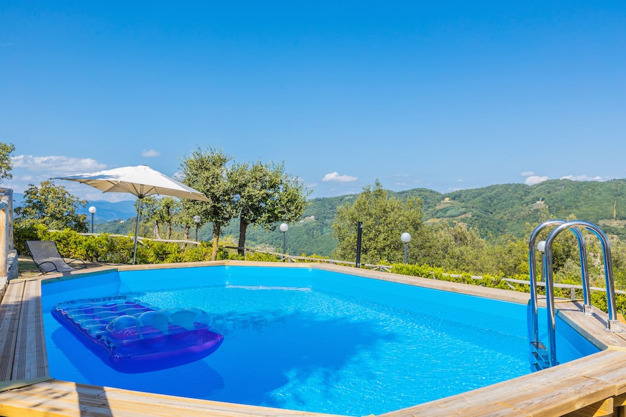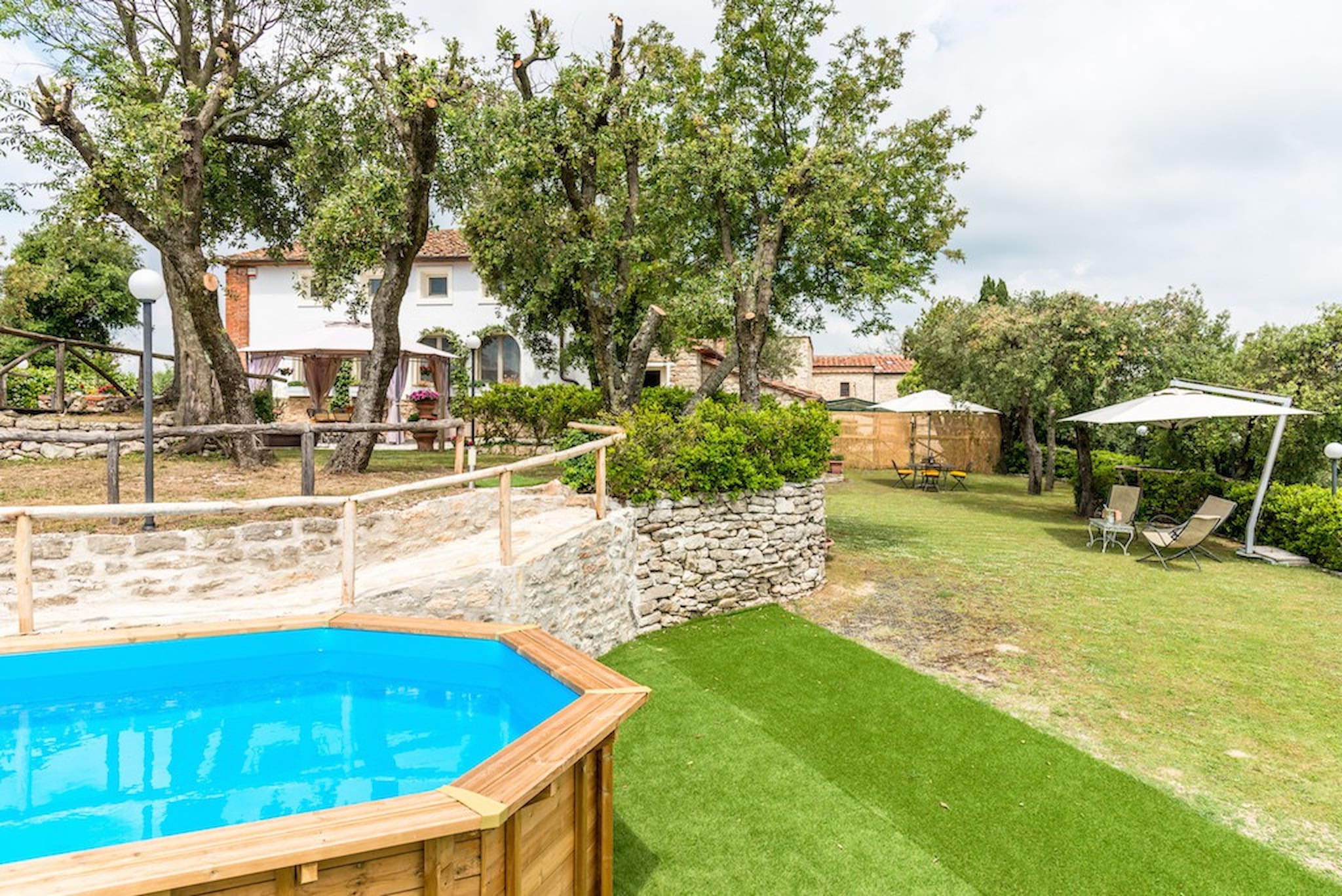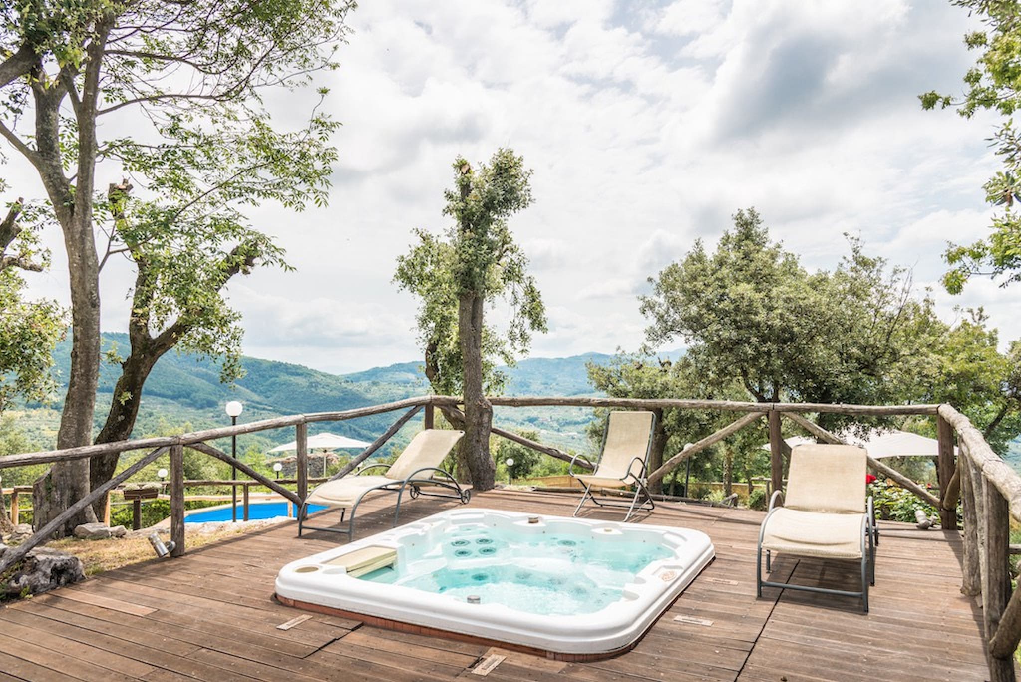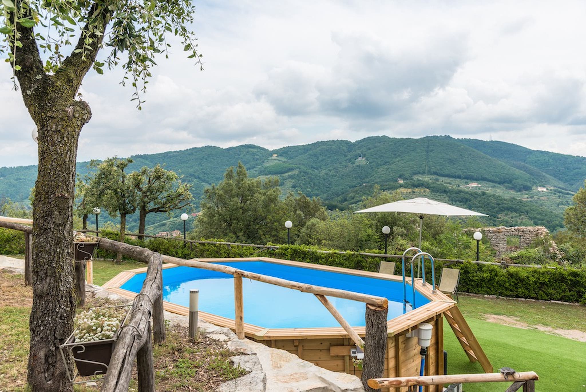 The Swimming Pool (6 mt. x 3,90 mt. with depth 112 cm) is framed by Tuscan hills . The Jacuzzi is located in the garden, among the trees.