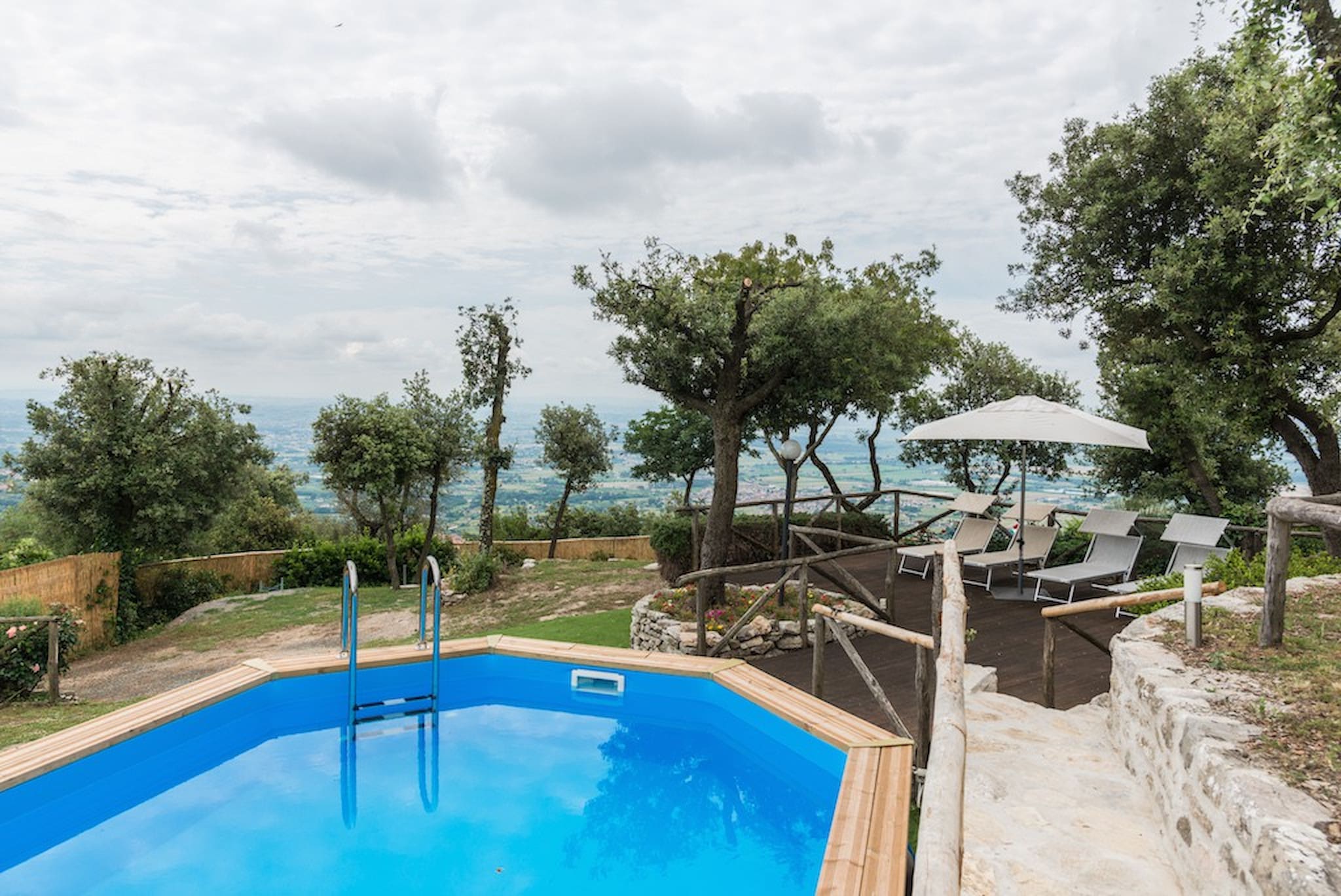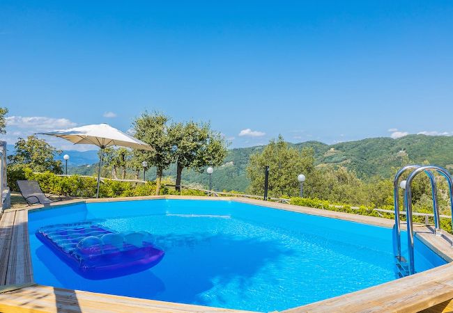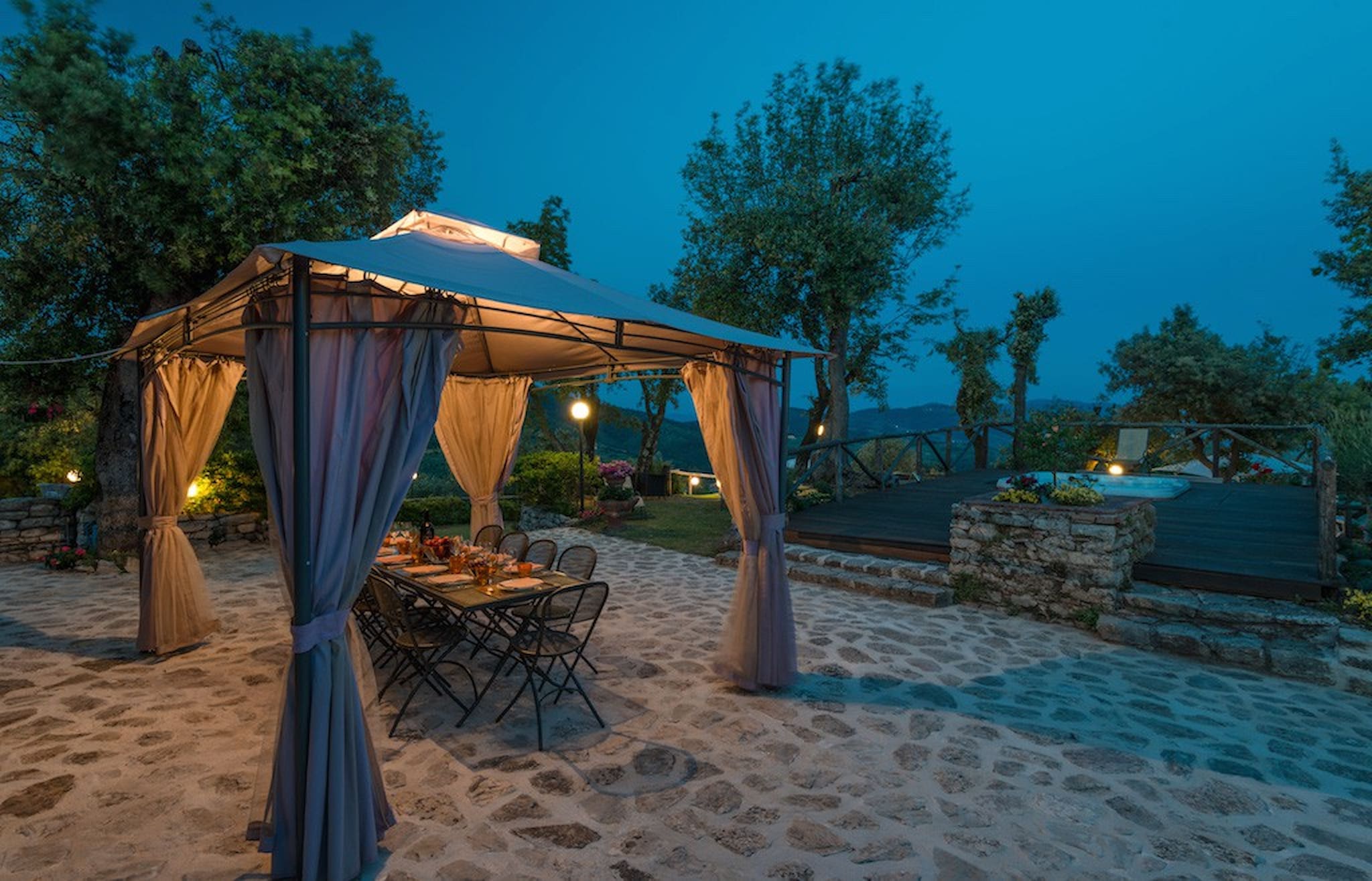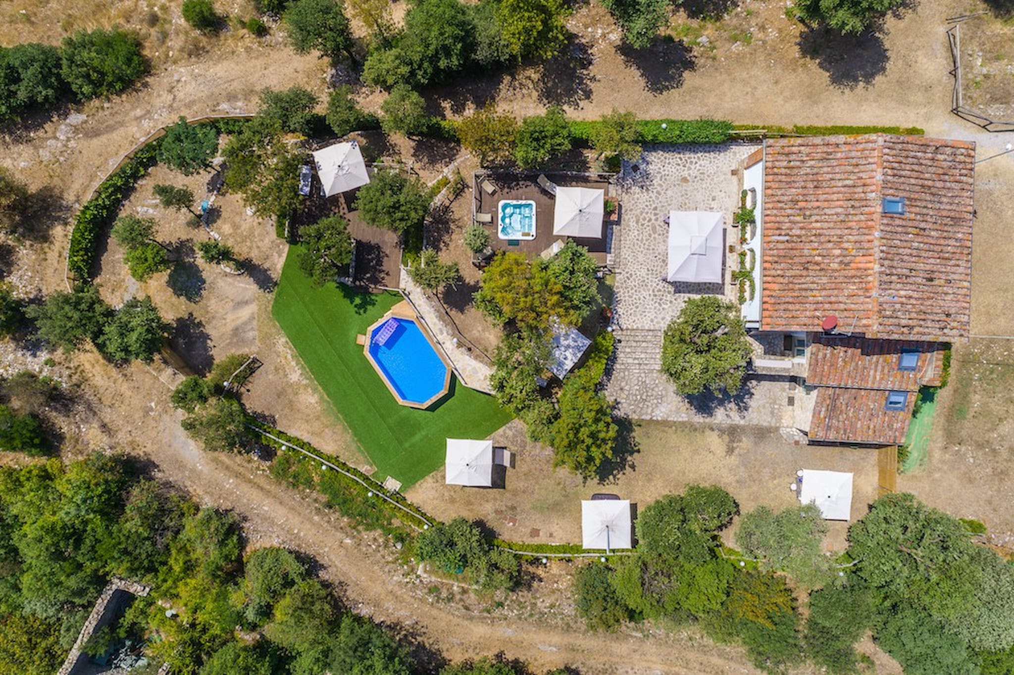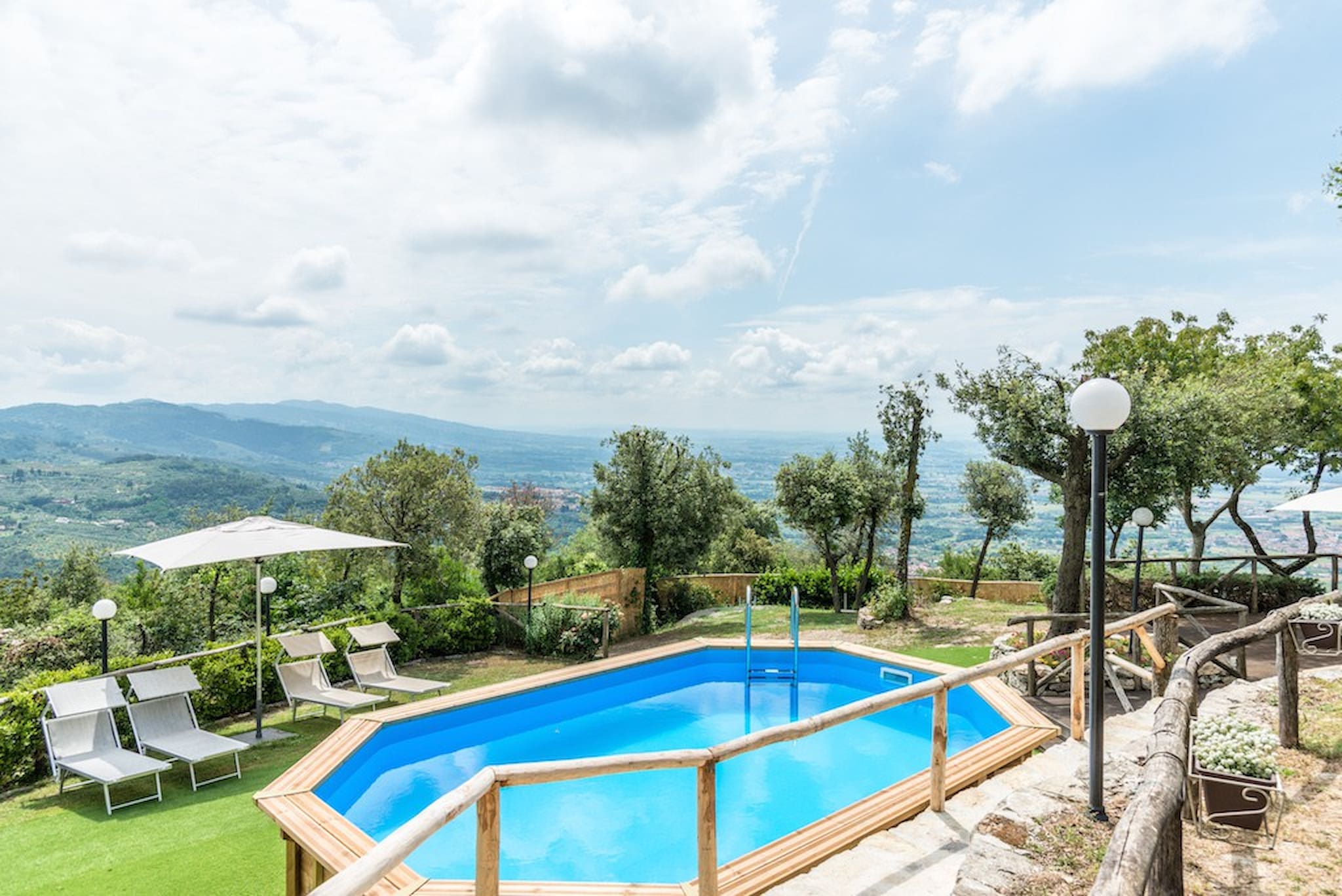 The Swimming Pool (6 mt. x 3,90 mt. with depth 112 cm) is framed by Tuscan hills . The Jacuzzi is located in the garden, among the trees.