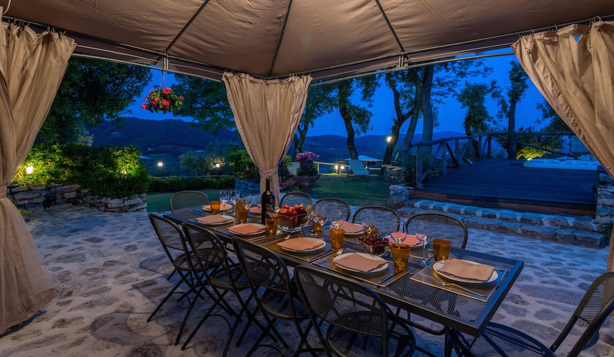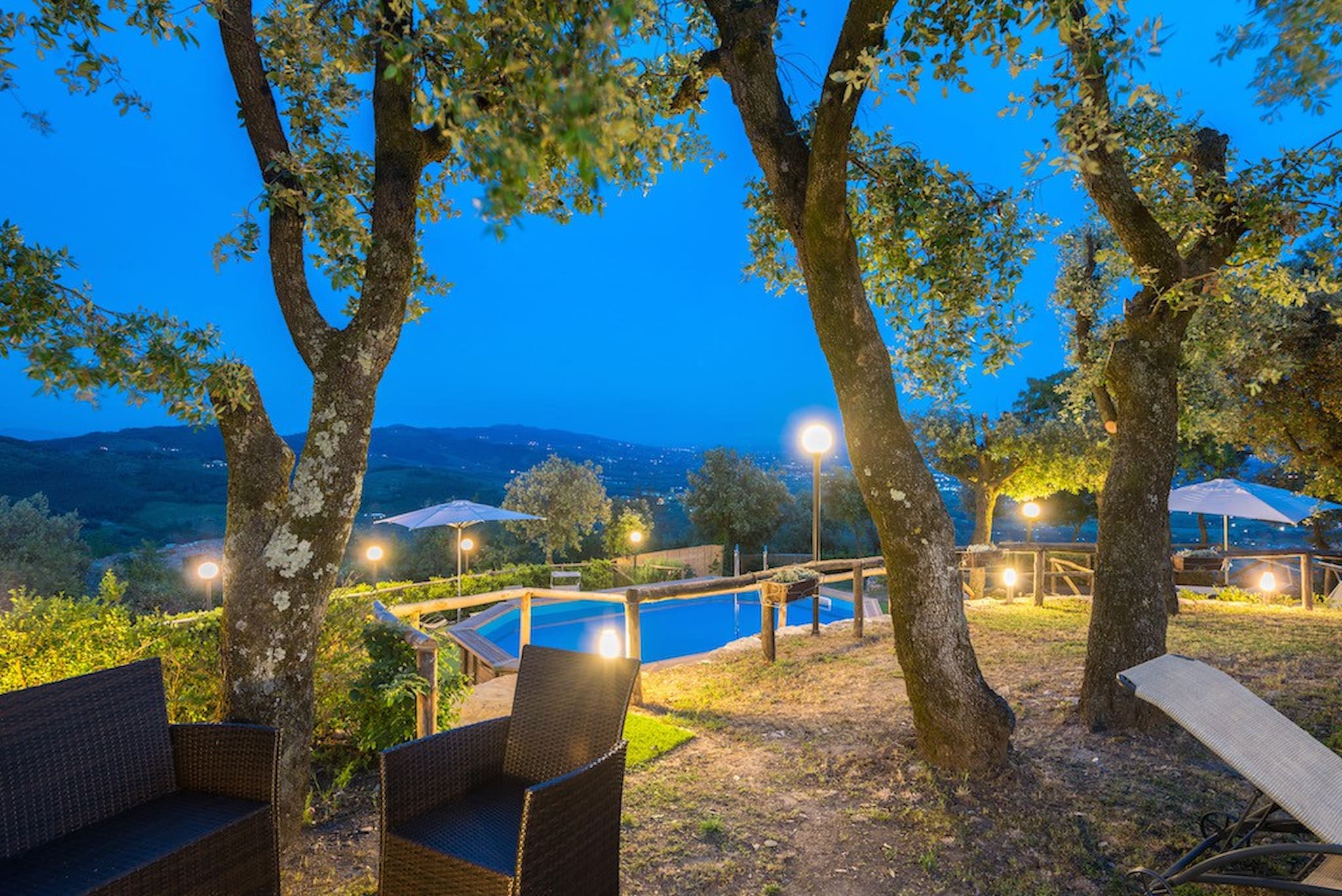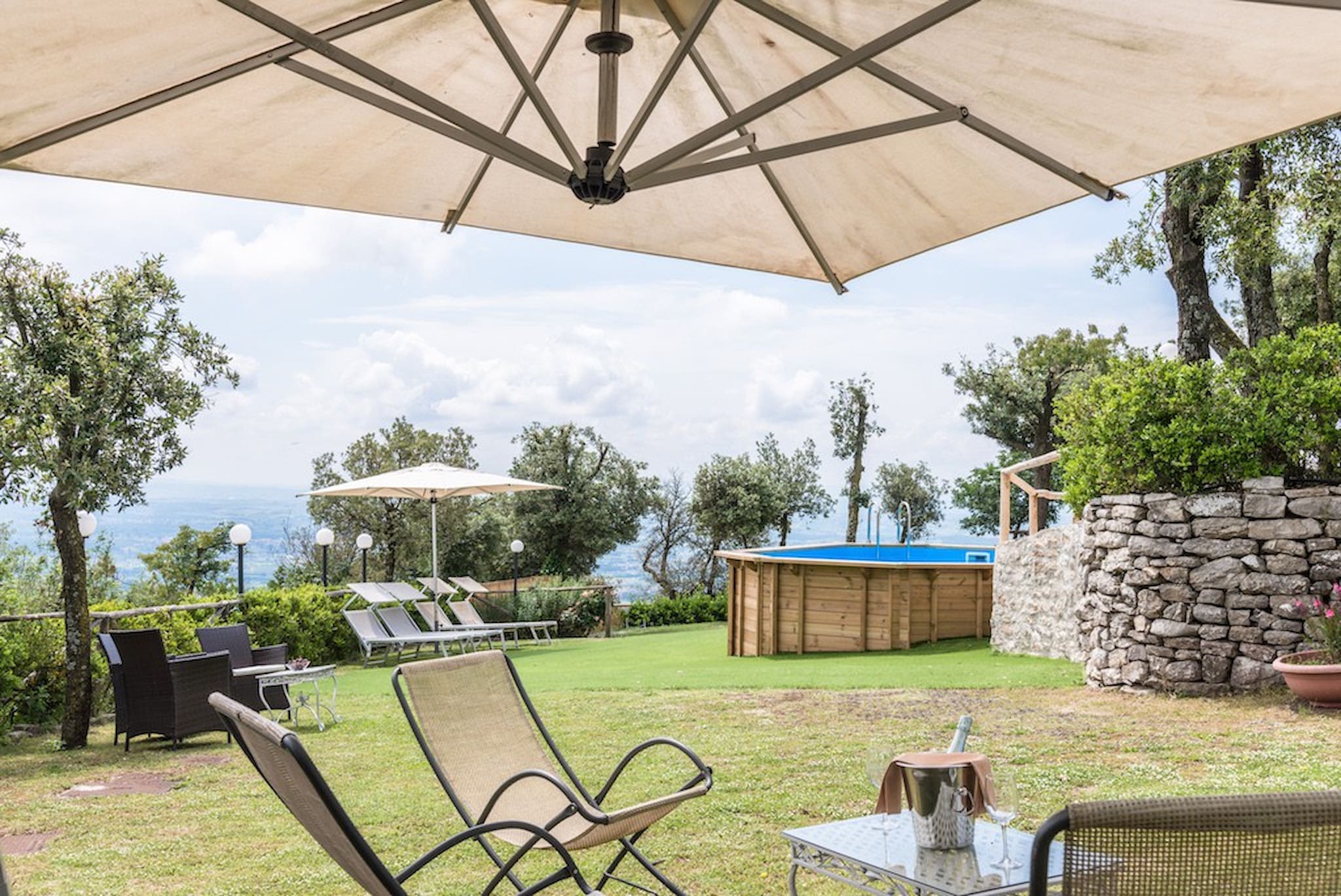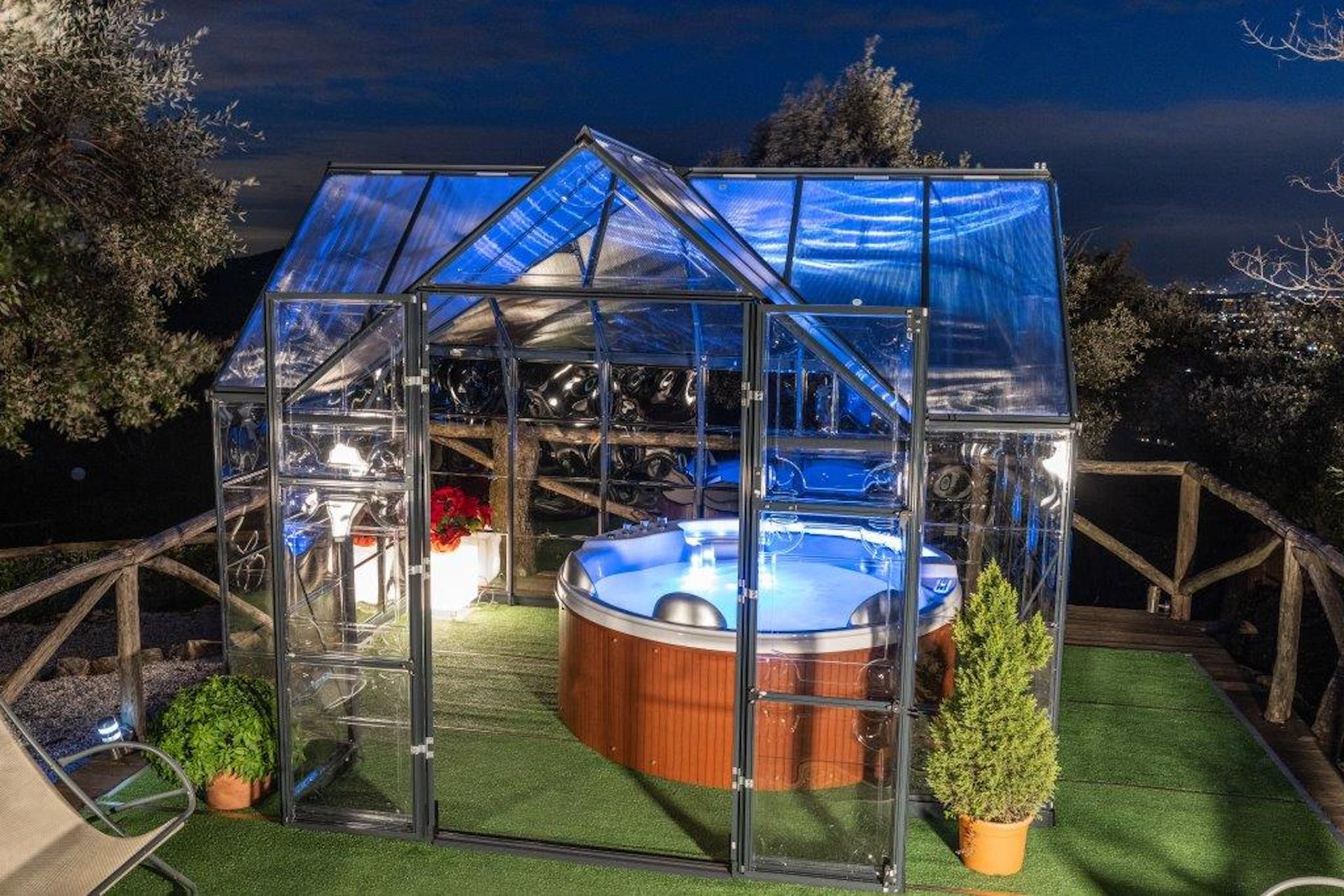 The Swimming Pool (6 mt. x 3,90 mt. with depth 112 cm) is framed by Tuscan hills . The Jacuzzi is located in the garden, among the trees.