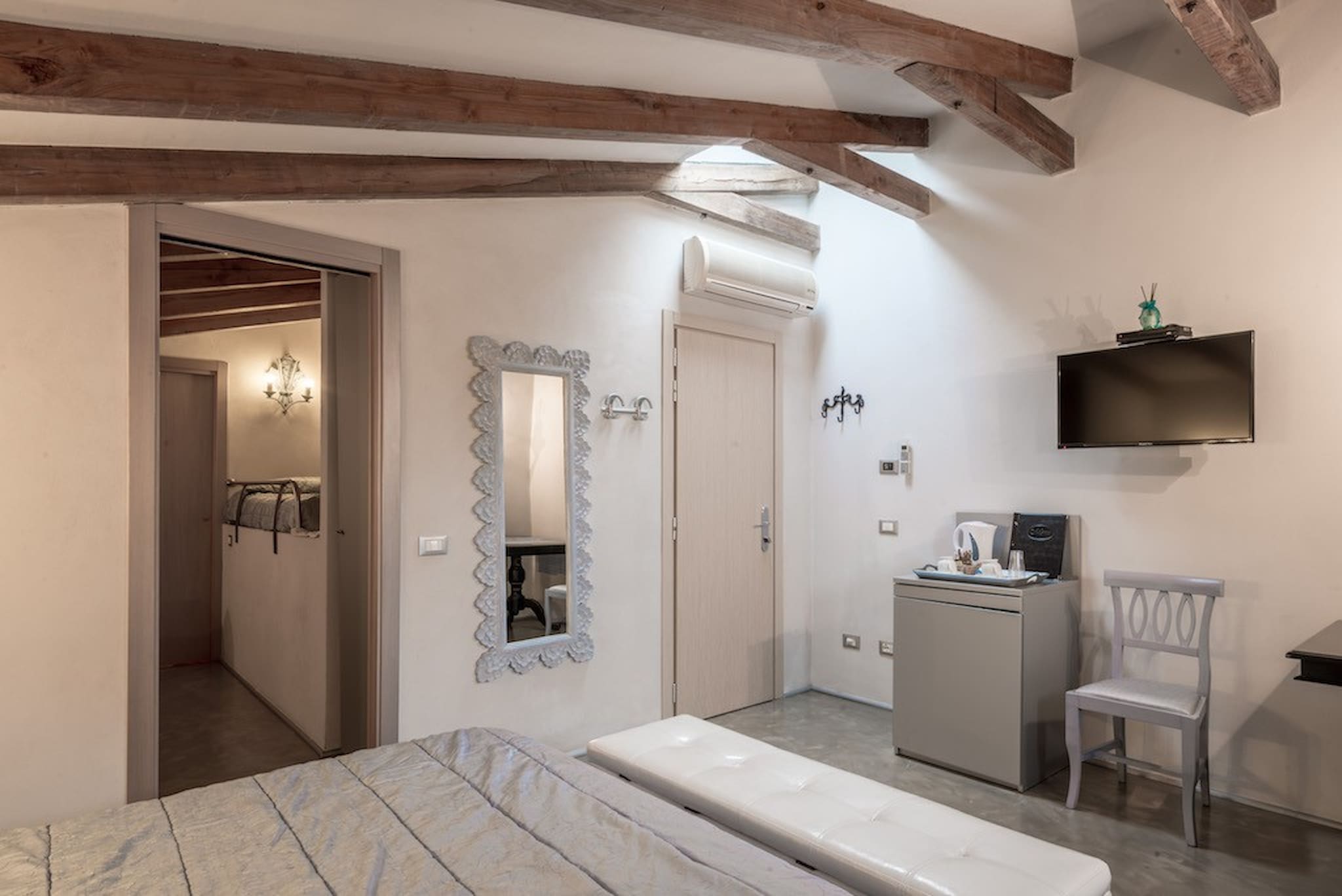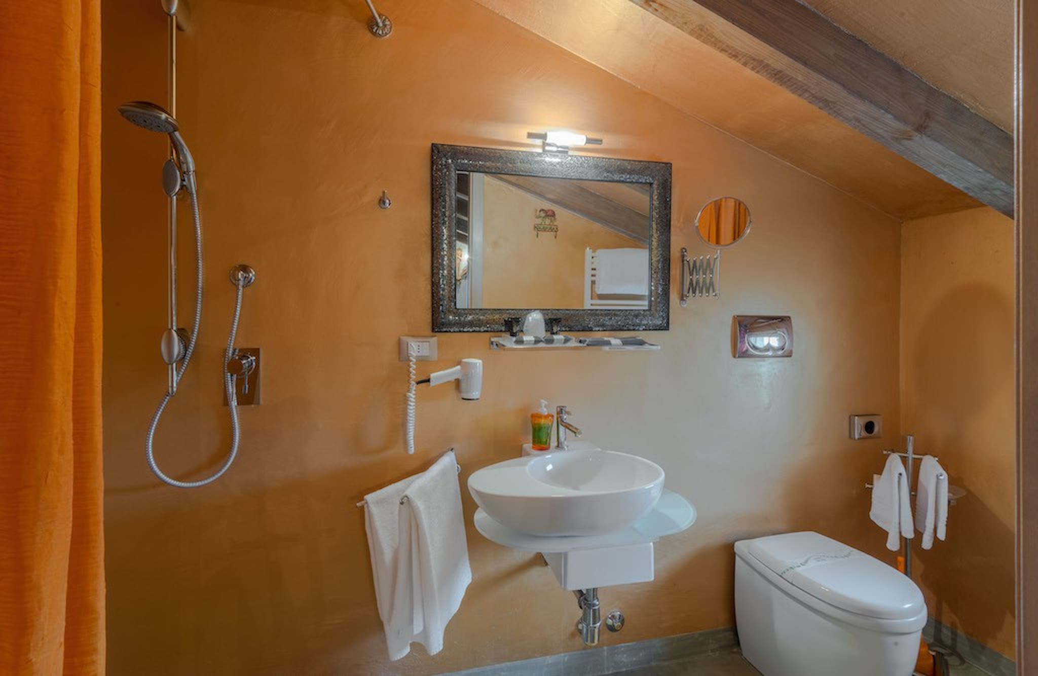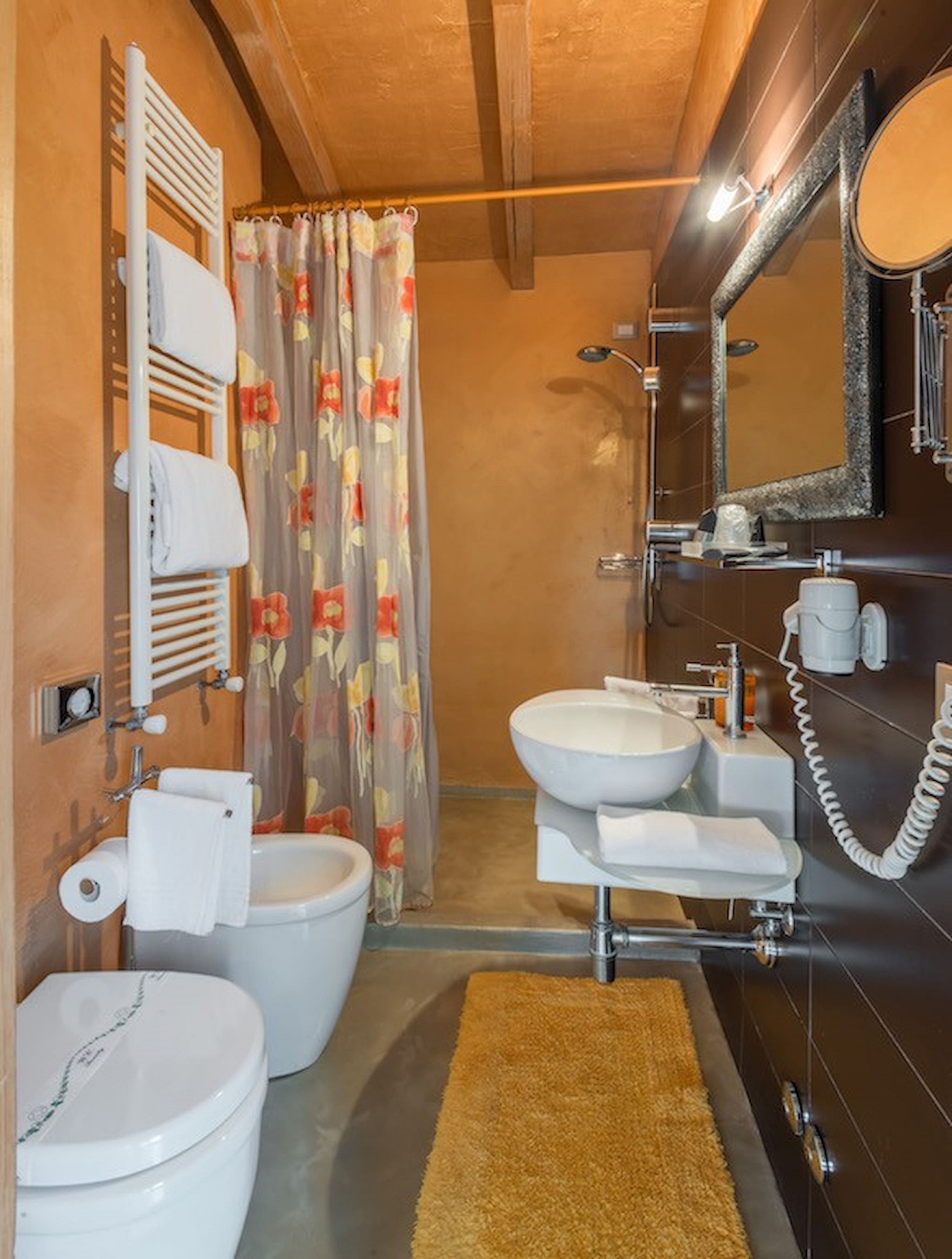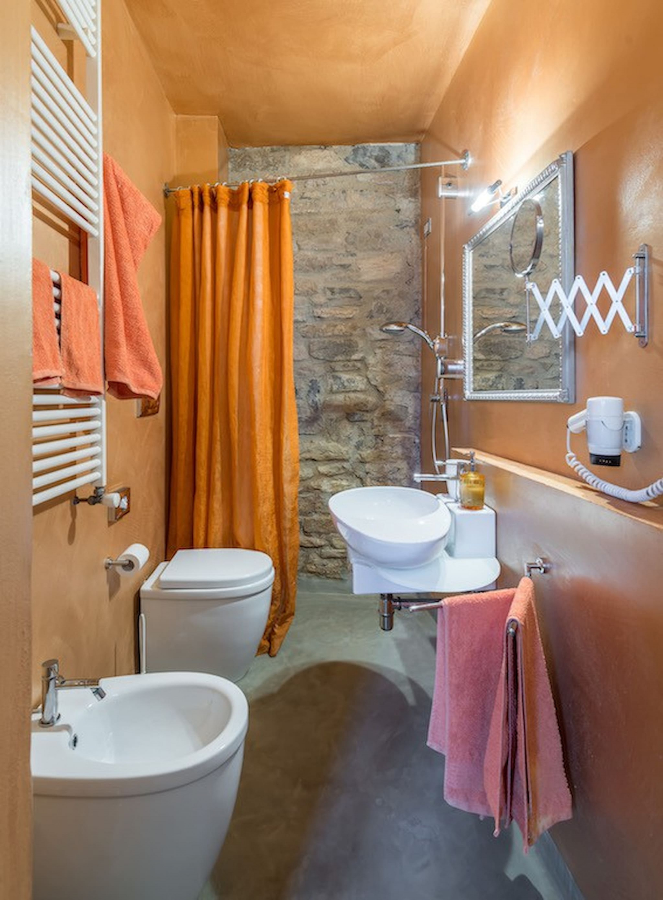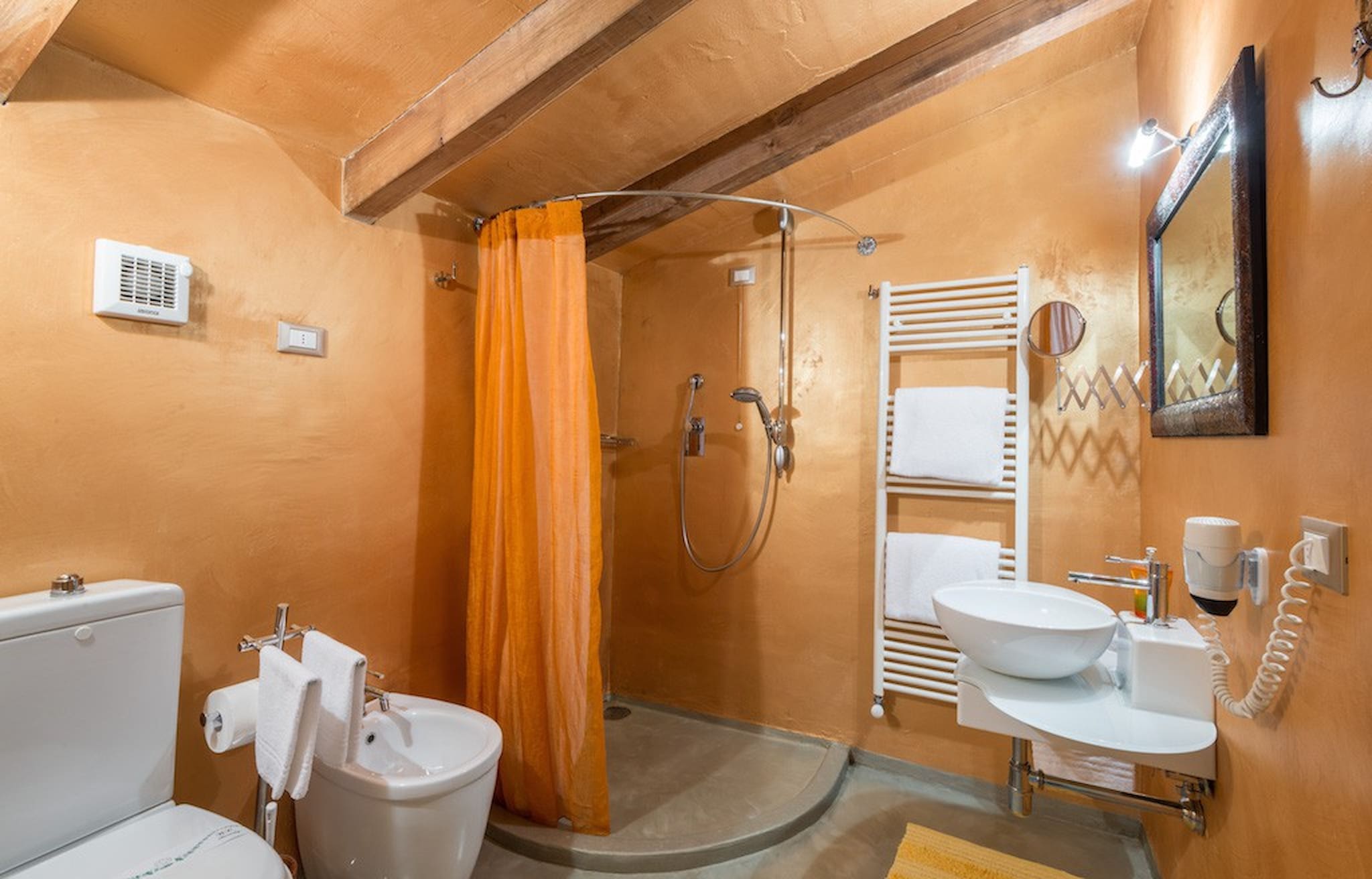 Bedroom + Ensuite Bathroom 1: double bed, WIFI internet, air conditioning, basin, toilet, bidet, shower, hairdryer. Bedroom + Ensuite Bathroom 2: double bed, WIFI internet, air conditioning, basin, toilet, bidet, shower, hairdryer. Bedroom + Ensuite Bathroom 3: double bed, two single beds, WIFI internet, air conditioning, basin, toilet, bidet, shower, hairdryer.