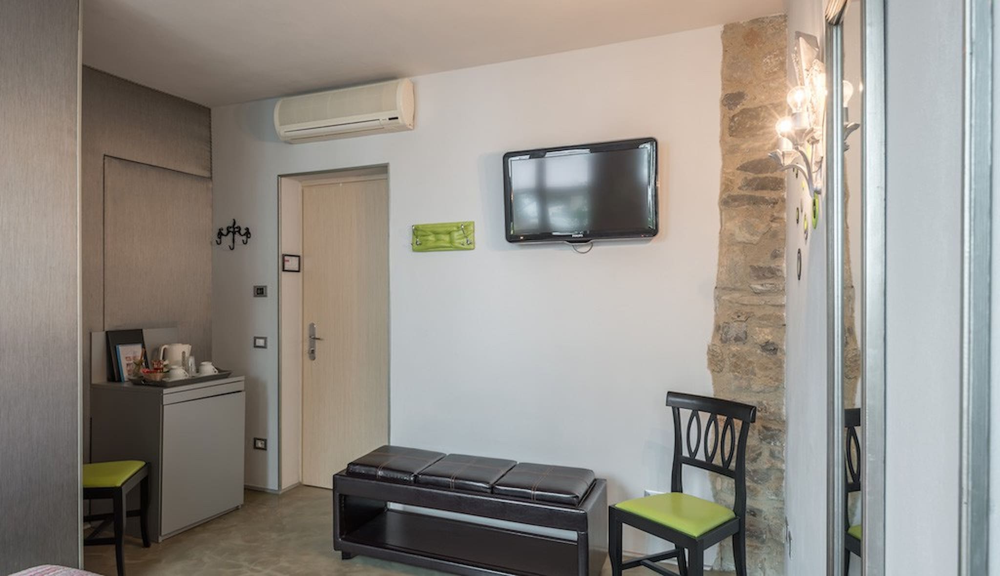 Villa is equipped with 5 rooms “de charme” (one with balcony) designed to offer maximum relaxation, with all comforts and in perfect harmony with the surrounding environment. The furniture has been designed to be in contrast with the exterior space, deliberately modern and essential, and it presents itself with a fine contrast between ancient and modern. The rooms offer an extraordinary view of the Colle di Monsummano Alto and the surrounding valleys.