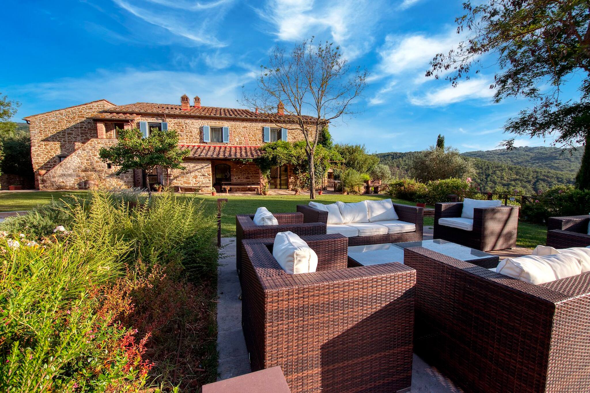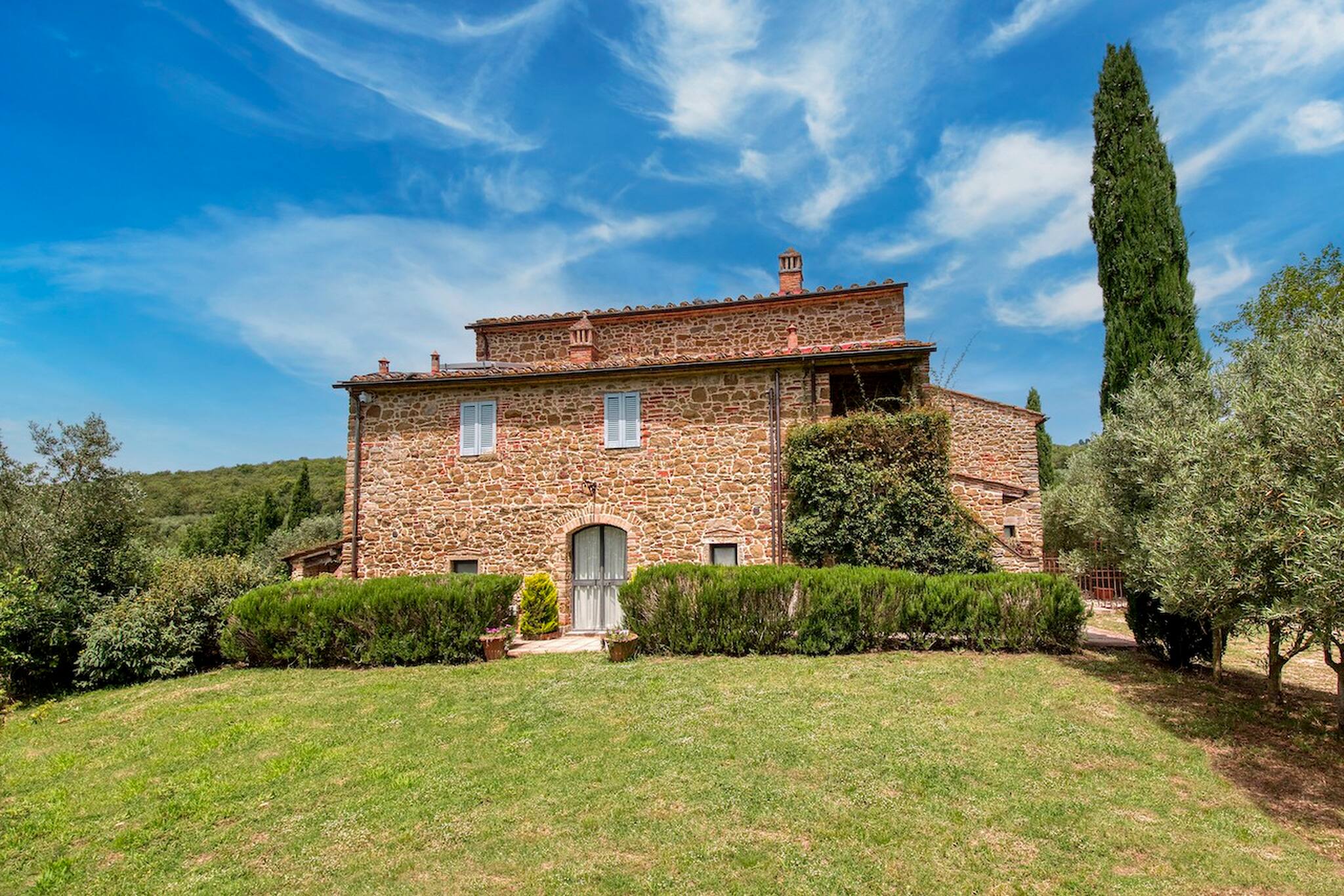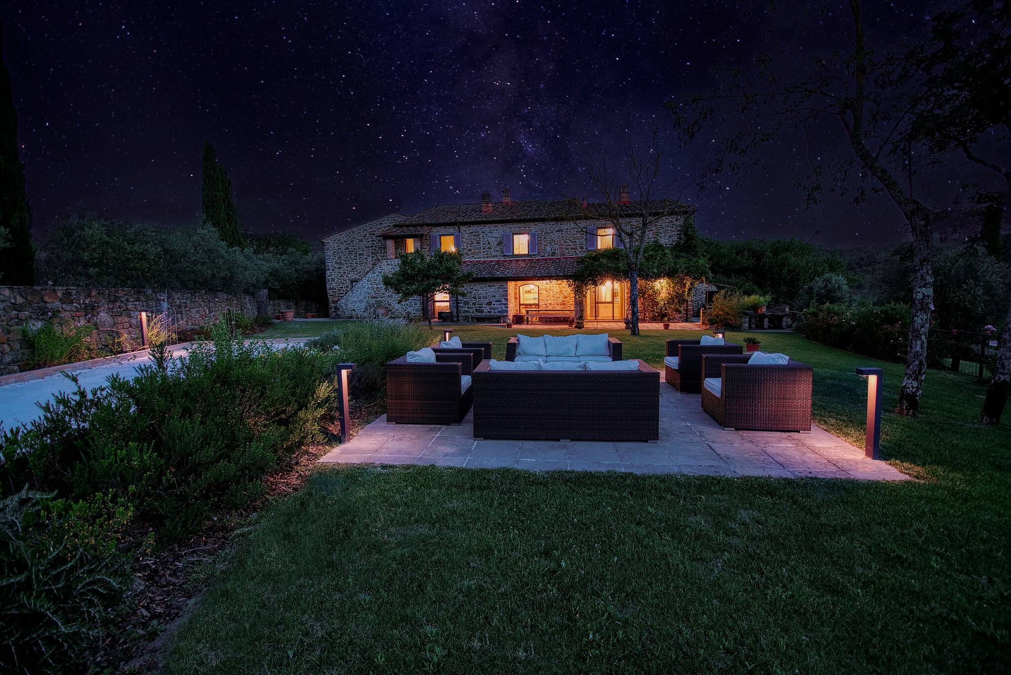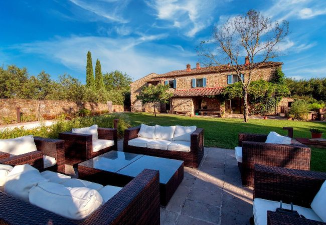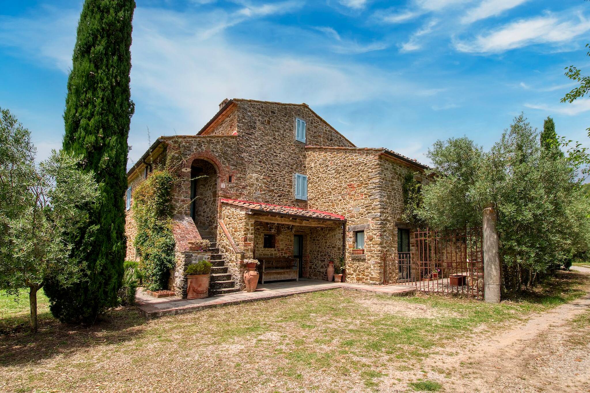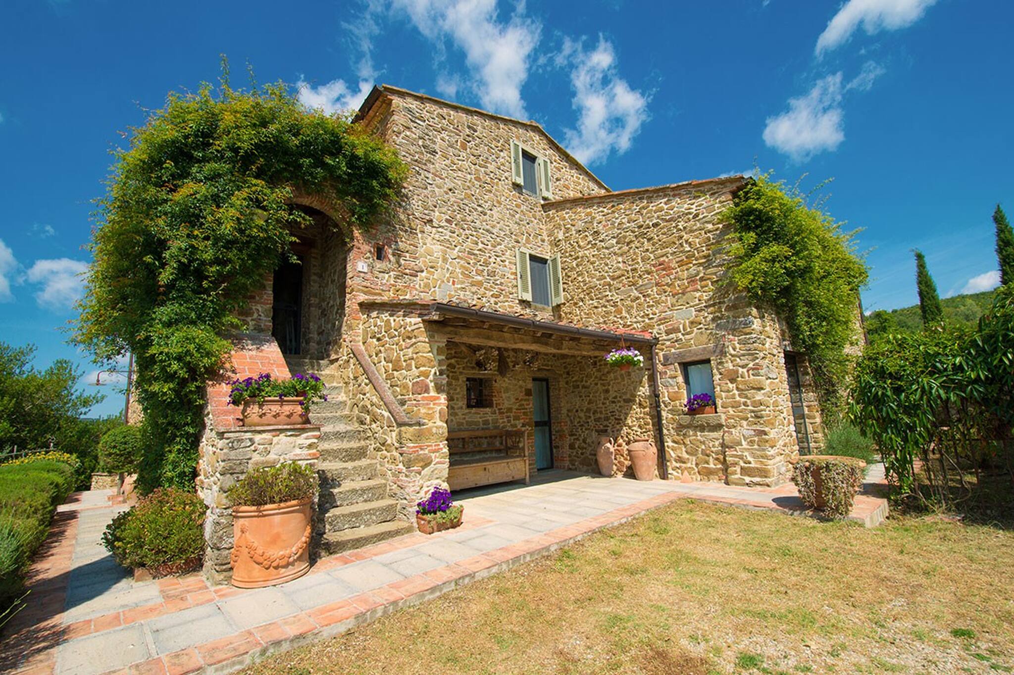 Villa Cacciatora is a stonecountry house, completely restored in the typical Tuscan style and can sleep 12 people. It is an ideal spot for those who want to discover Tuscany. It is a strategic position for those who want to visit the numerous art cities such as Florence, Siena, Arezzo as well as Chianti and the natural beauty of the Sienese countryside. The villa is 350 square metres with a pergola and many terraces for alfresco eating.