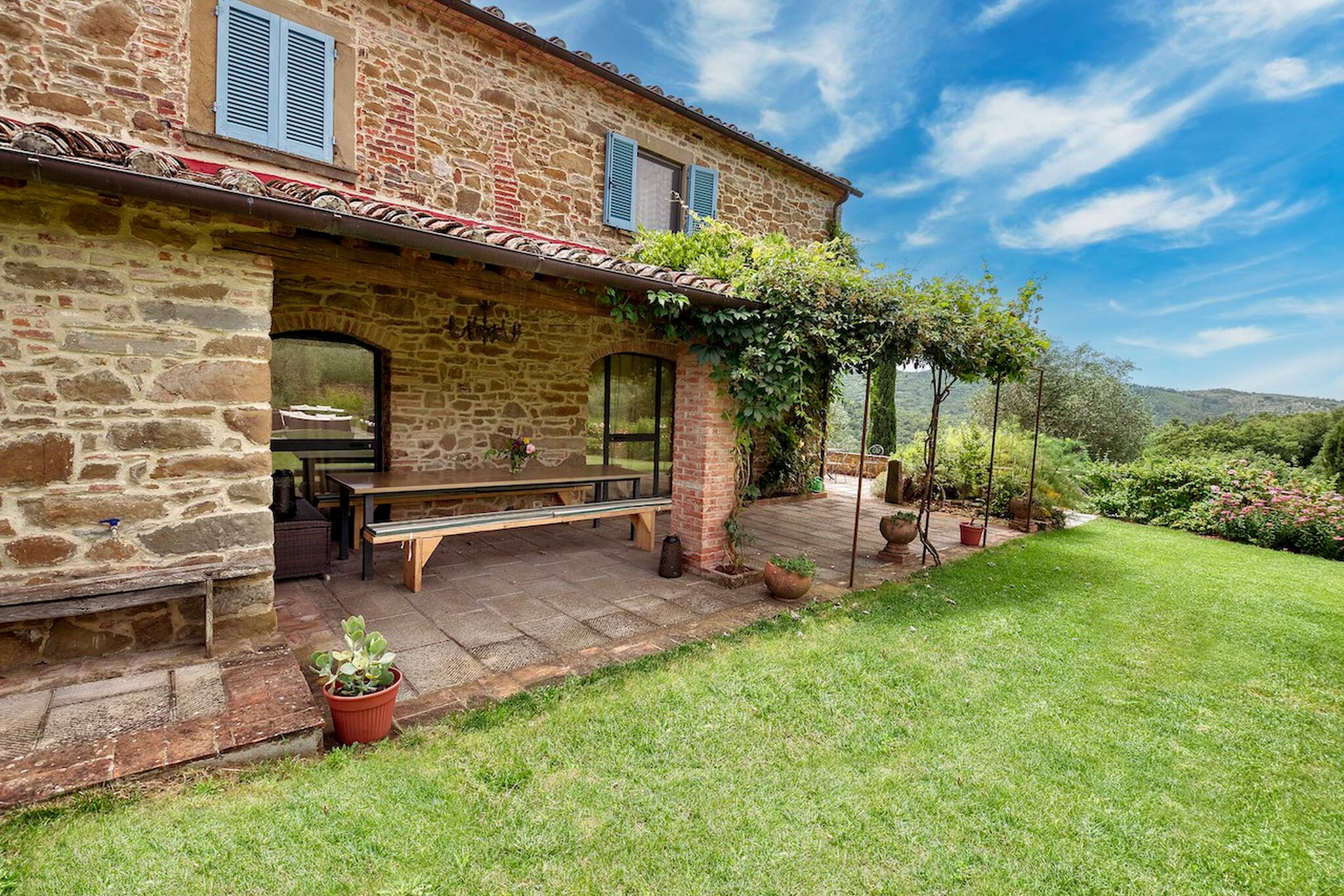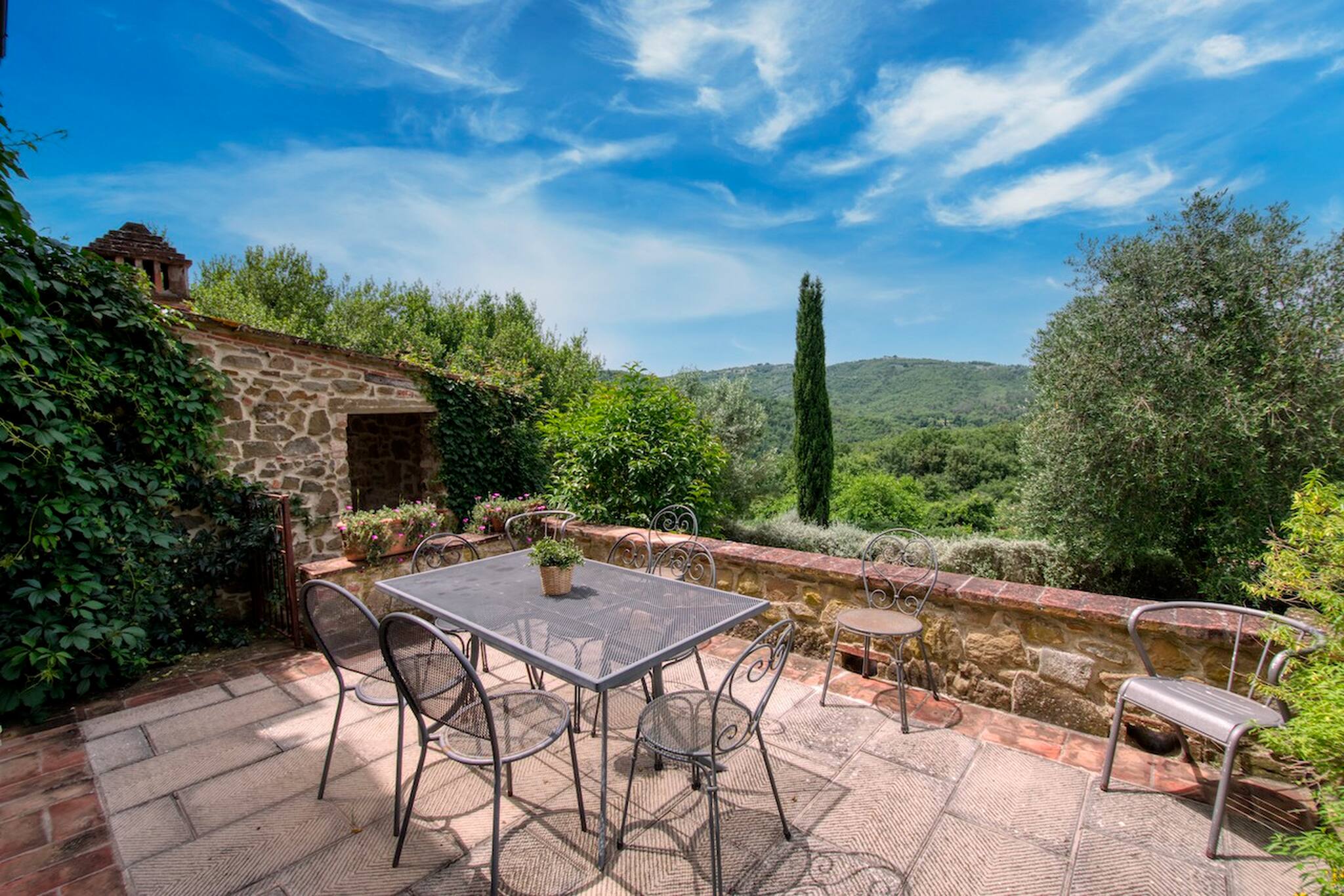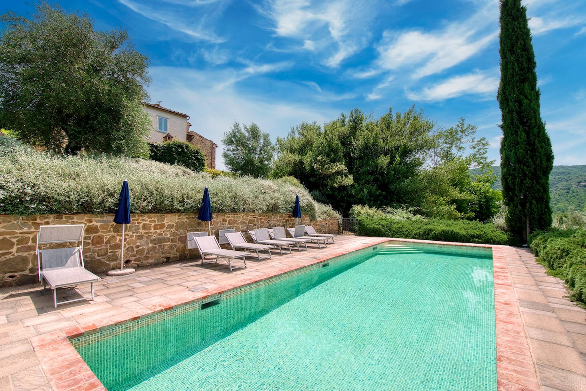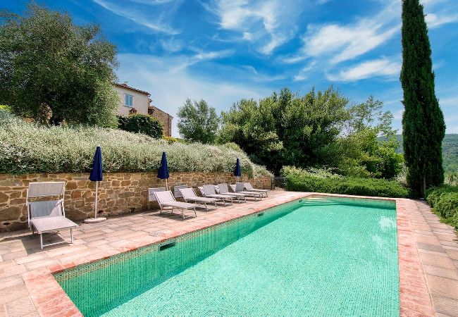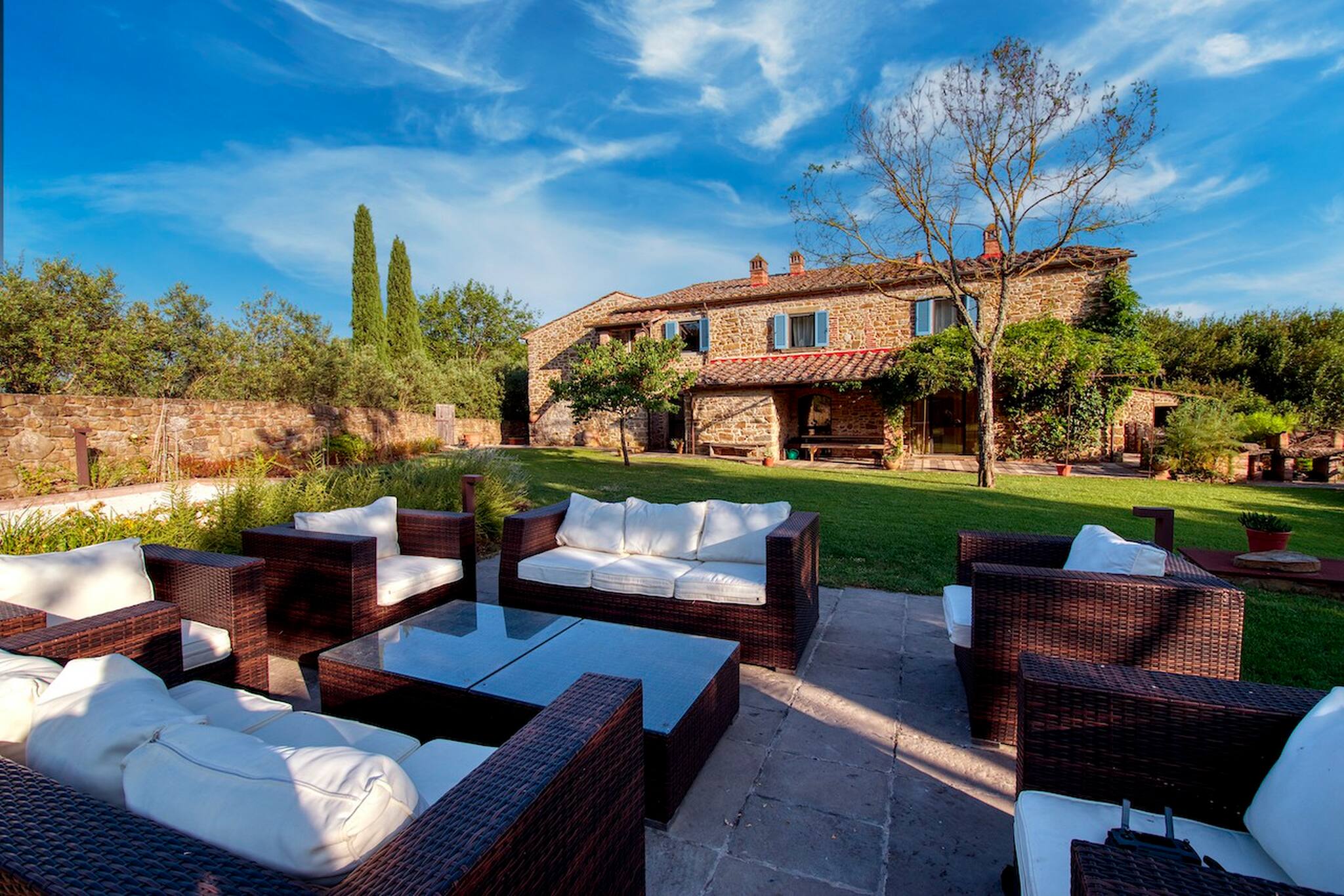 Villa Cacciatora is a stonecountry house, completely restored in the typical Tuscan style and can sleep 12 people. It is an ideal spot for those who want to discover Tuscany. It is a strategic position for those who want to visit the numerous art cities such as Florence, Siena, Arezzo as well as Chianti and the natural beauty of the Sienese countryside. The villa is 350 square metres with a pergola and many terraces for alfresco eating.