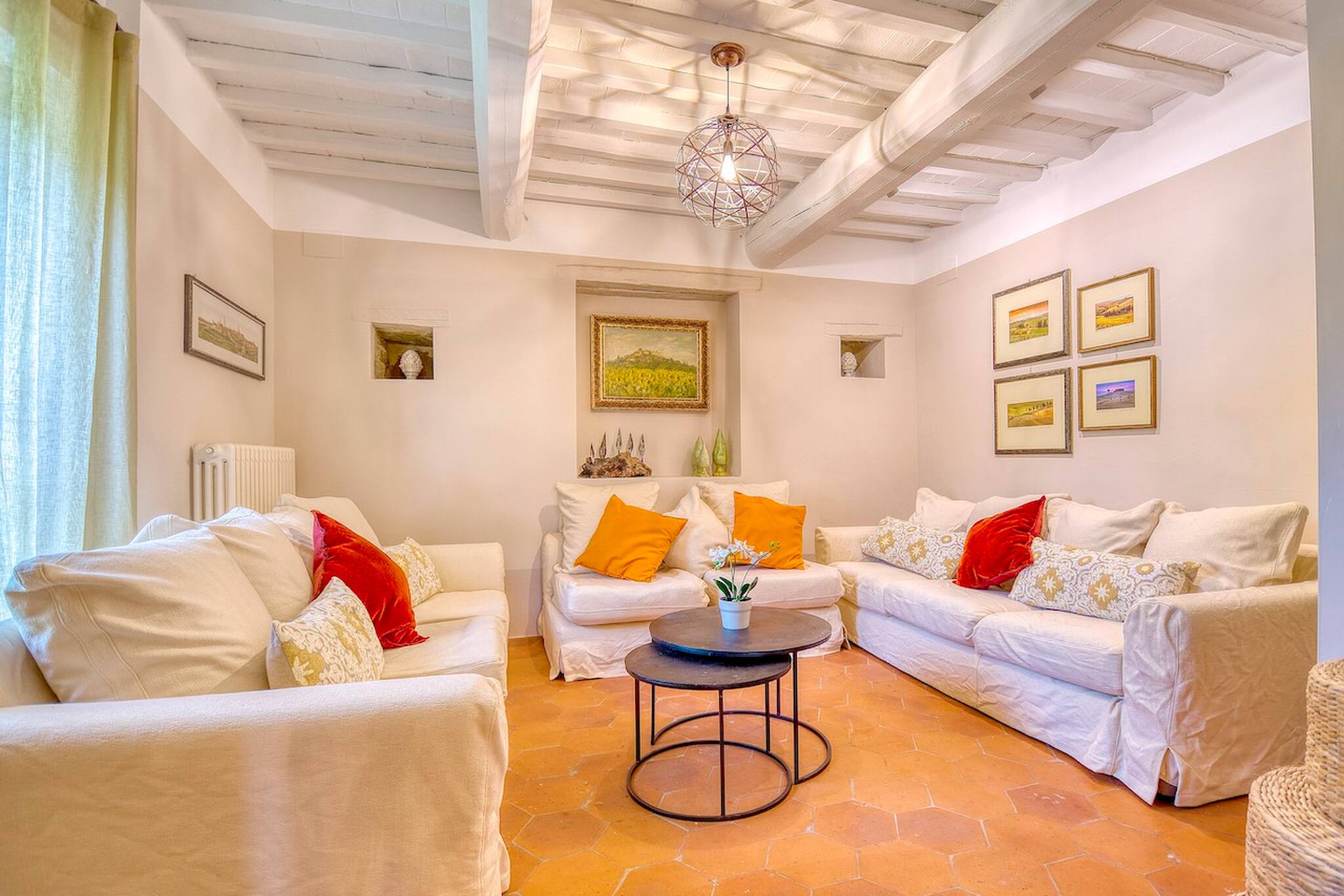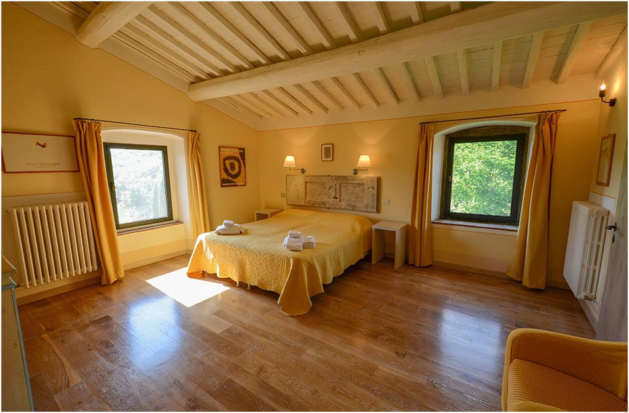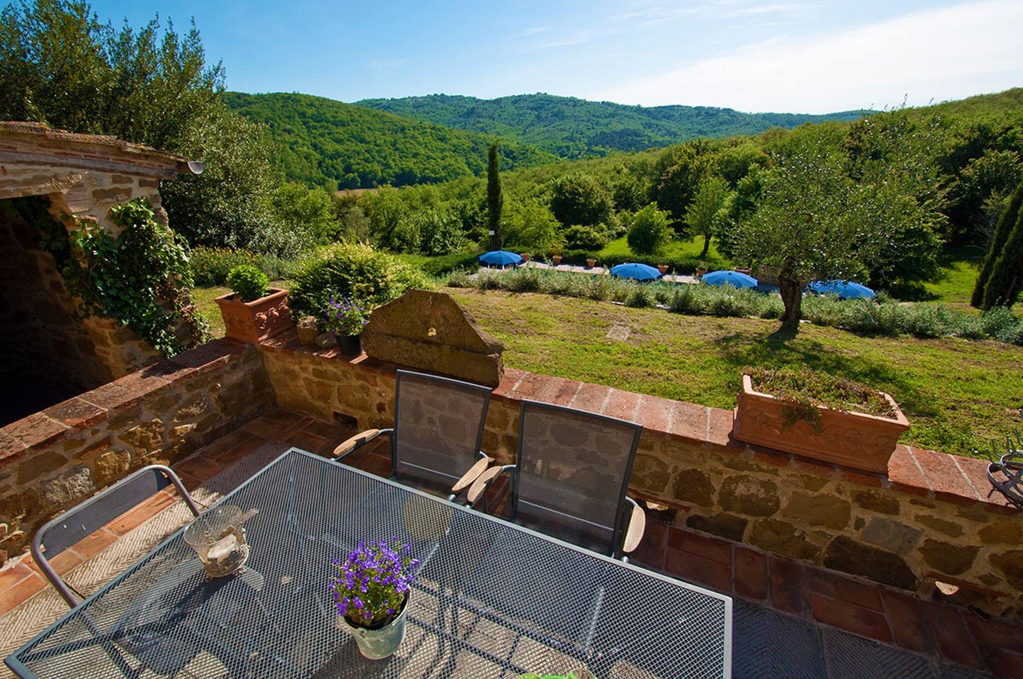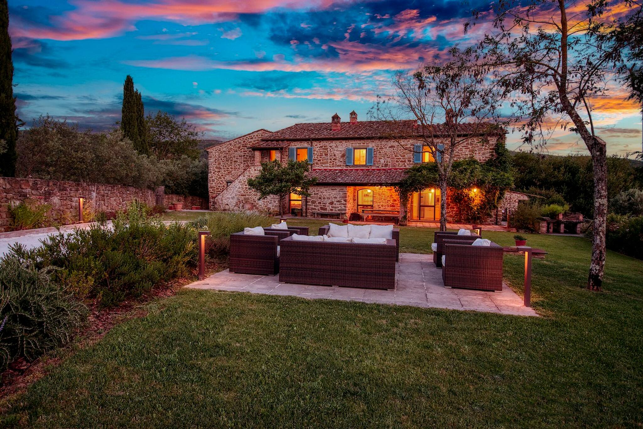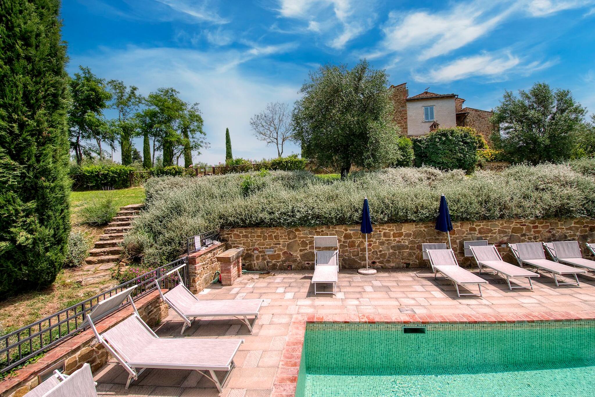 Villa Cacciatora is a stonecountry house, completely restored in the typical Tuscan style and can sleep 12 people. It is an ideal spot for those who want to discover Tuscany. It is a strategic position for those who want to visit the numerous art cities such as Florence, Siena, Arezzo as well as Chianti and the natural beauty of the Sienese countryside. The villa is 350 square metres with a pergola and many terraces for alfresco eating.