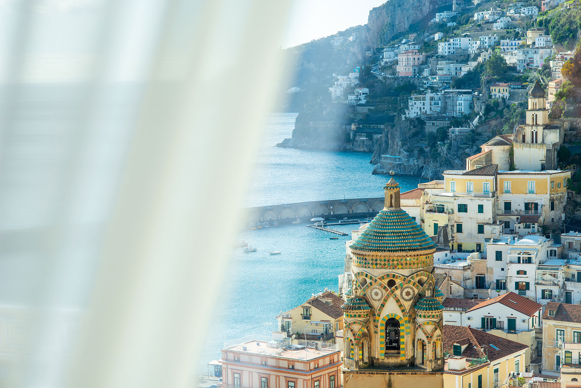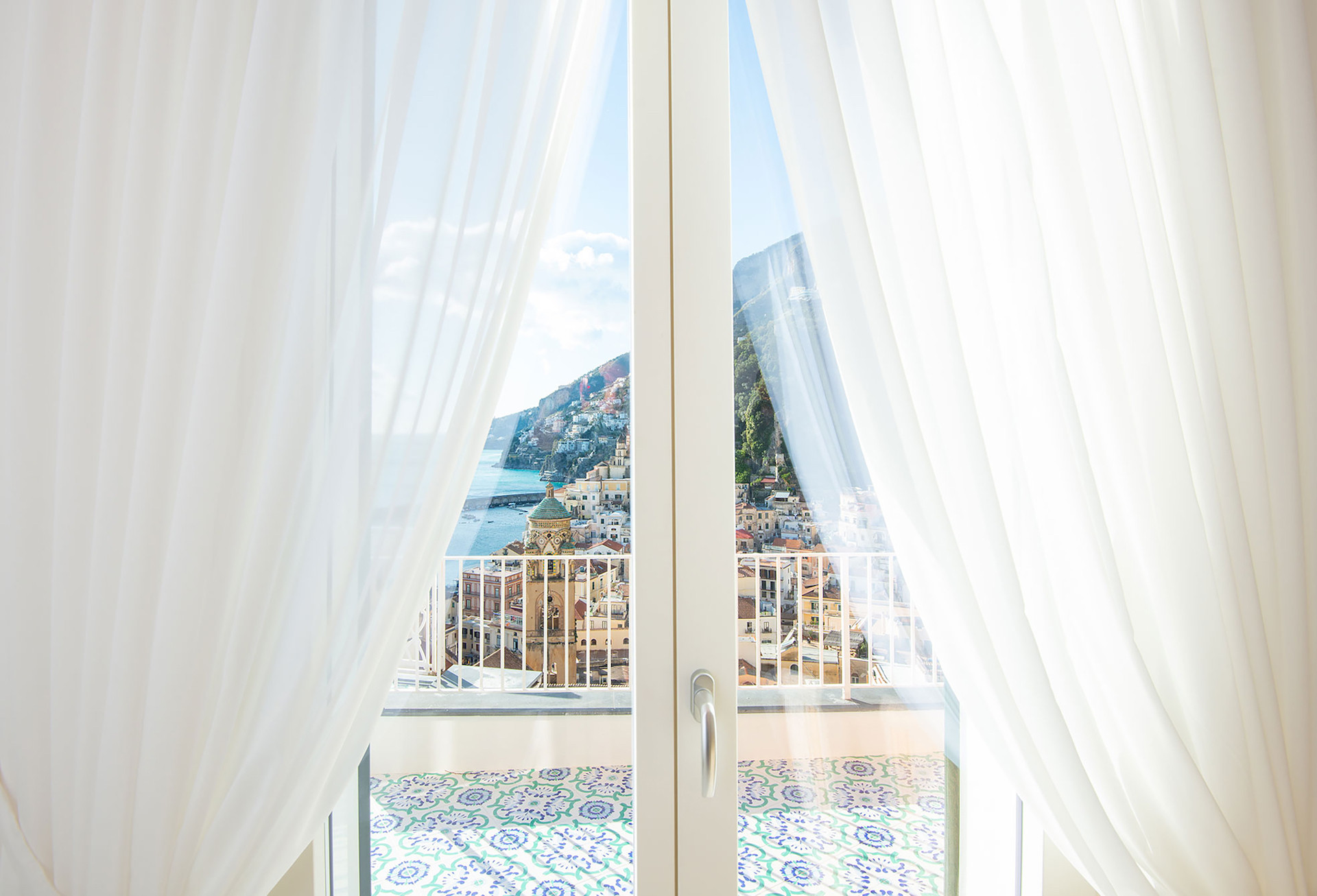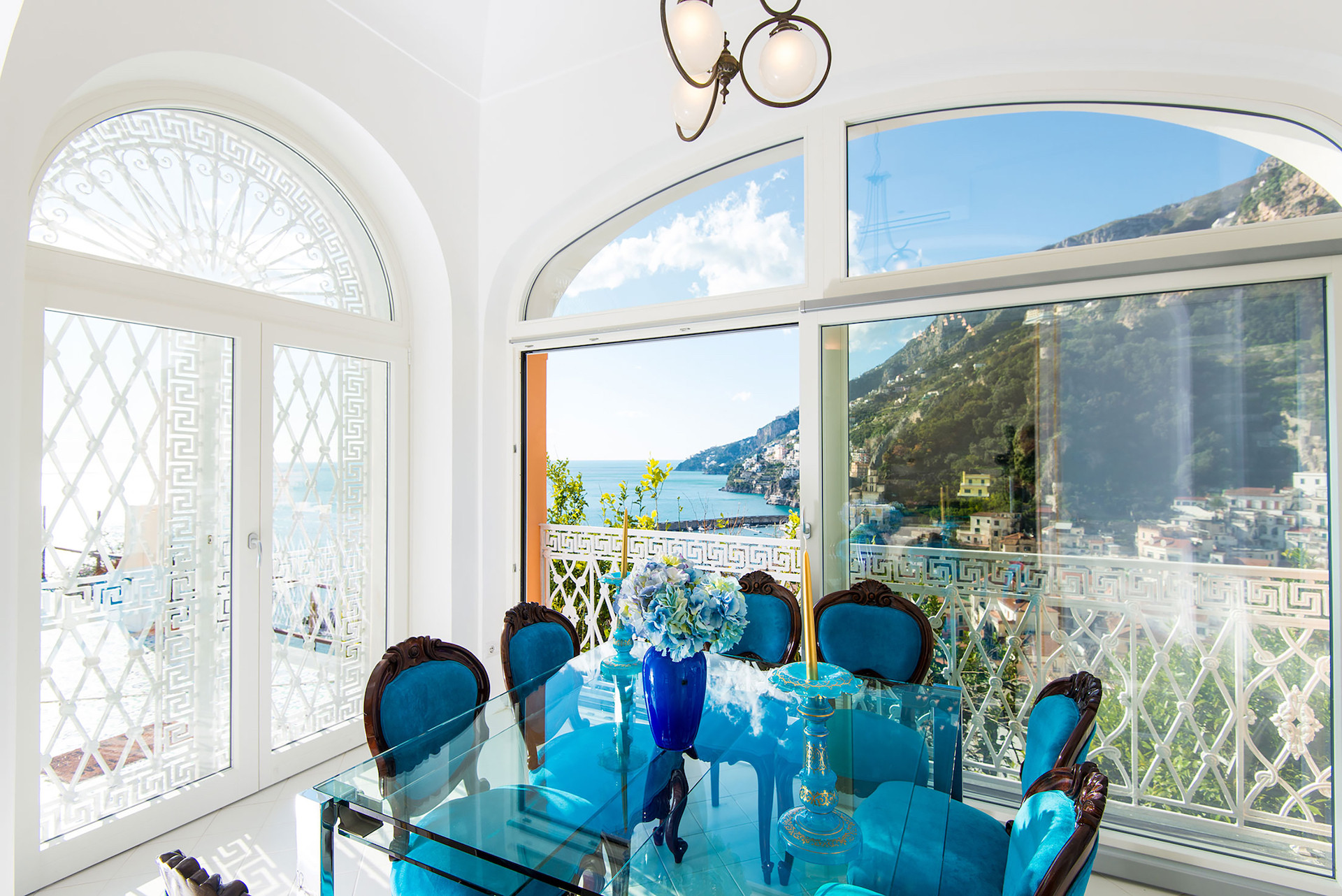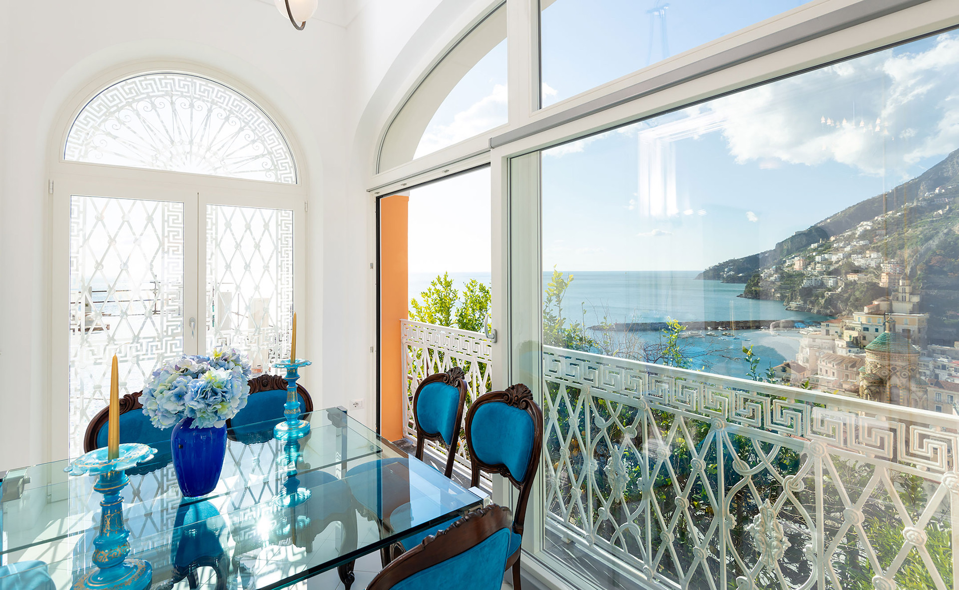 sea and Amalfi. You’ll have access through a French window to the second terrace with a view of the sea from the dining