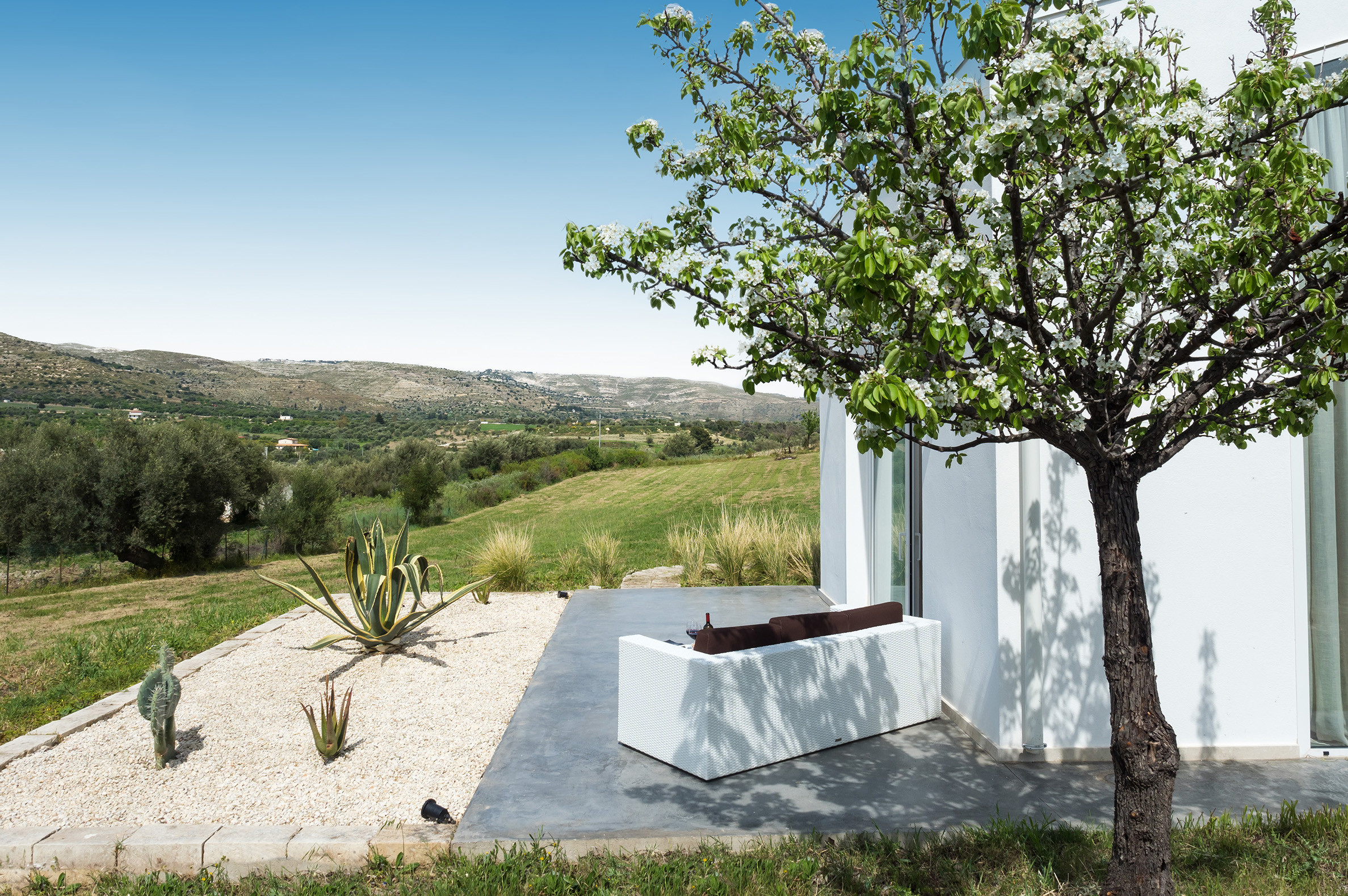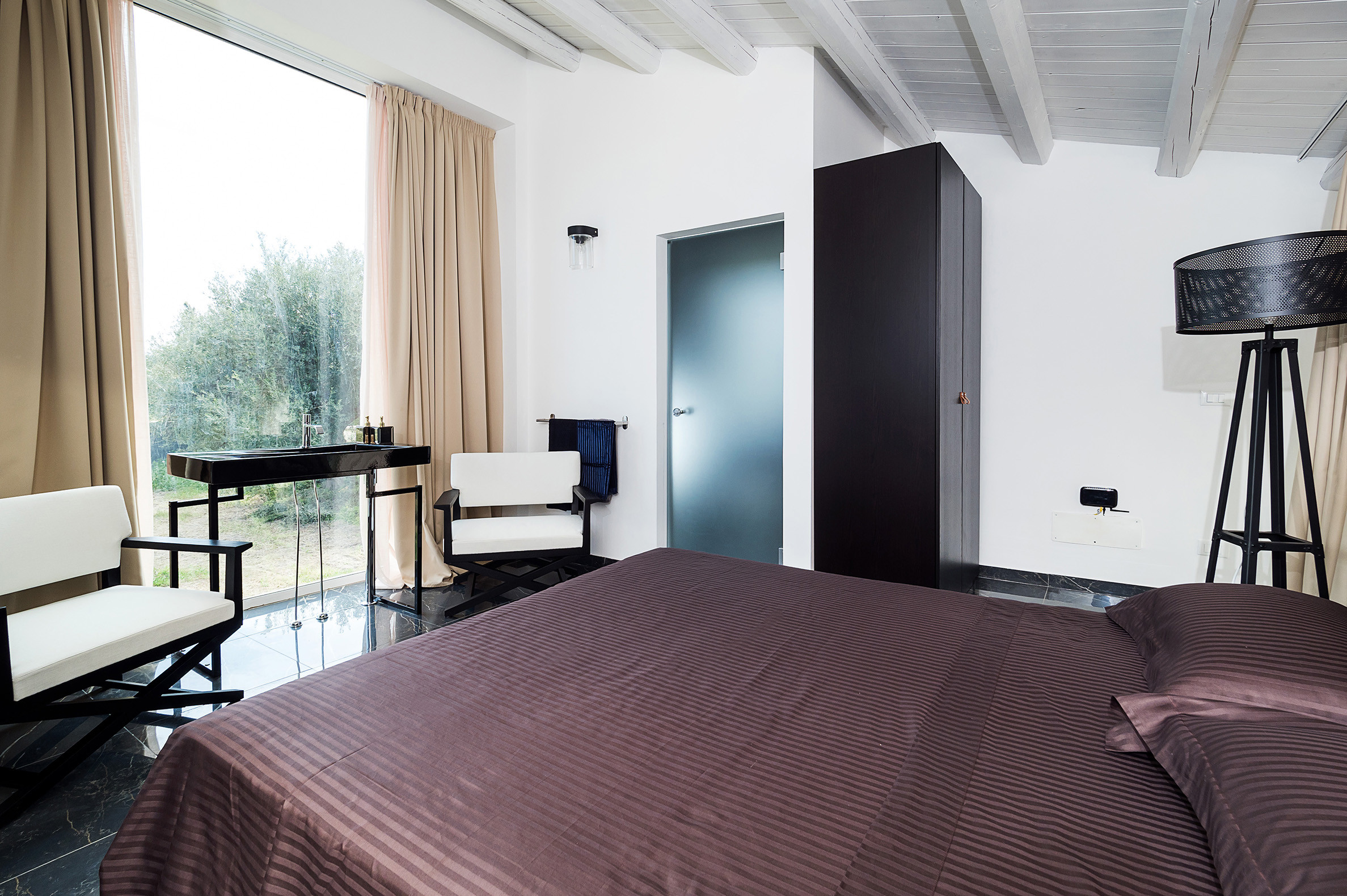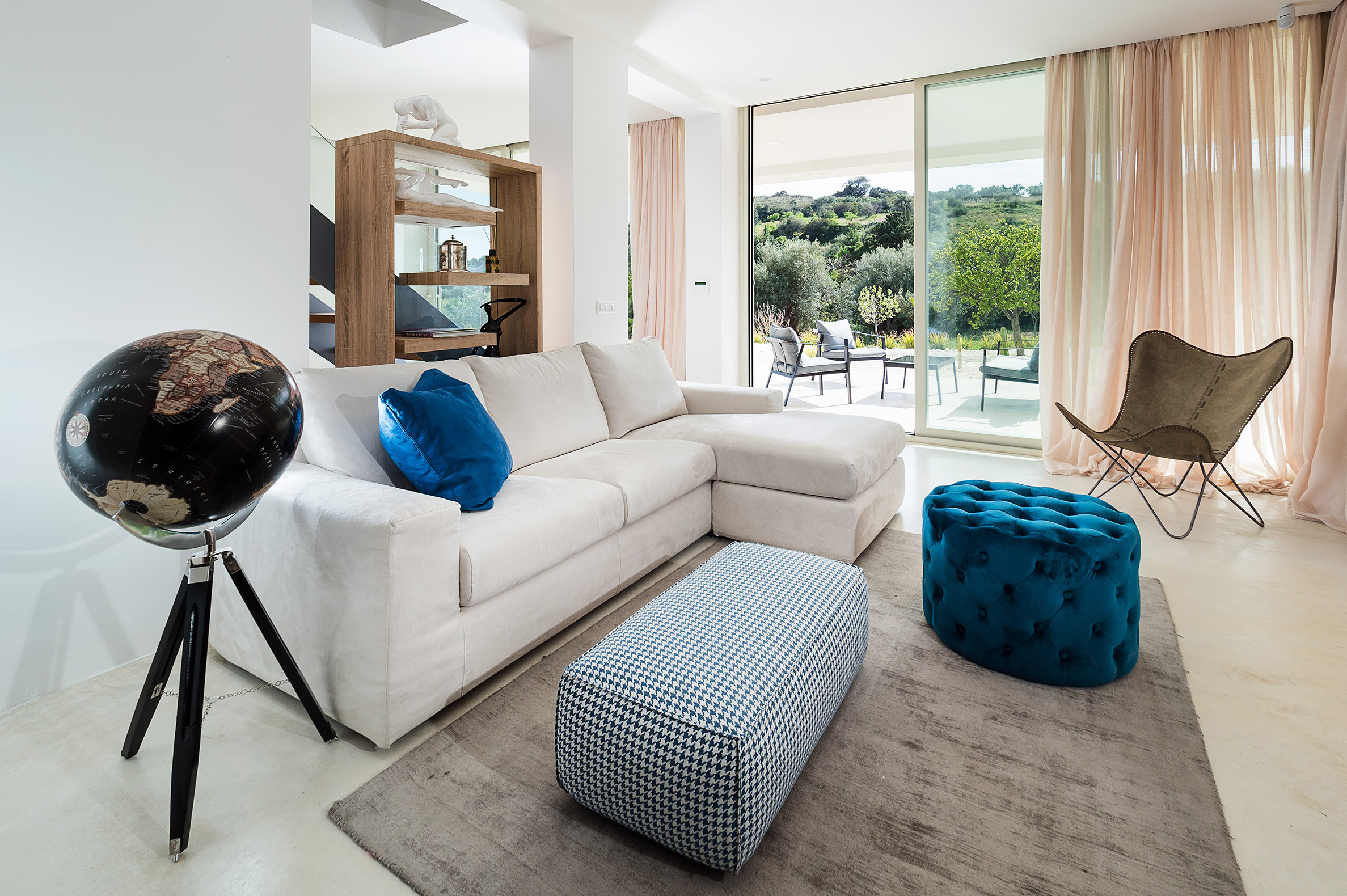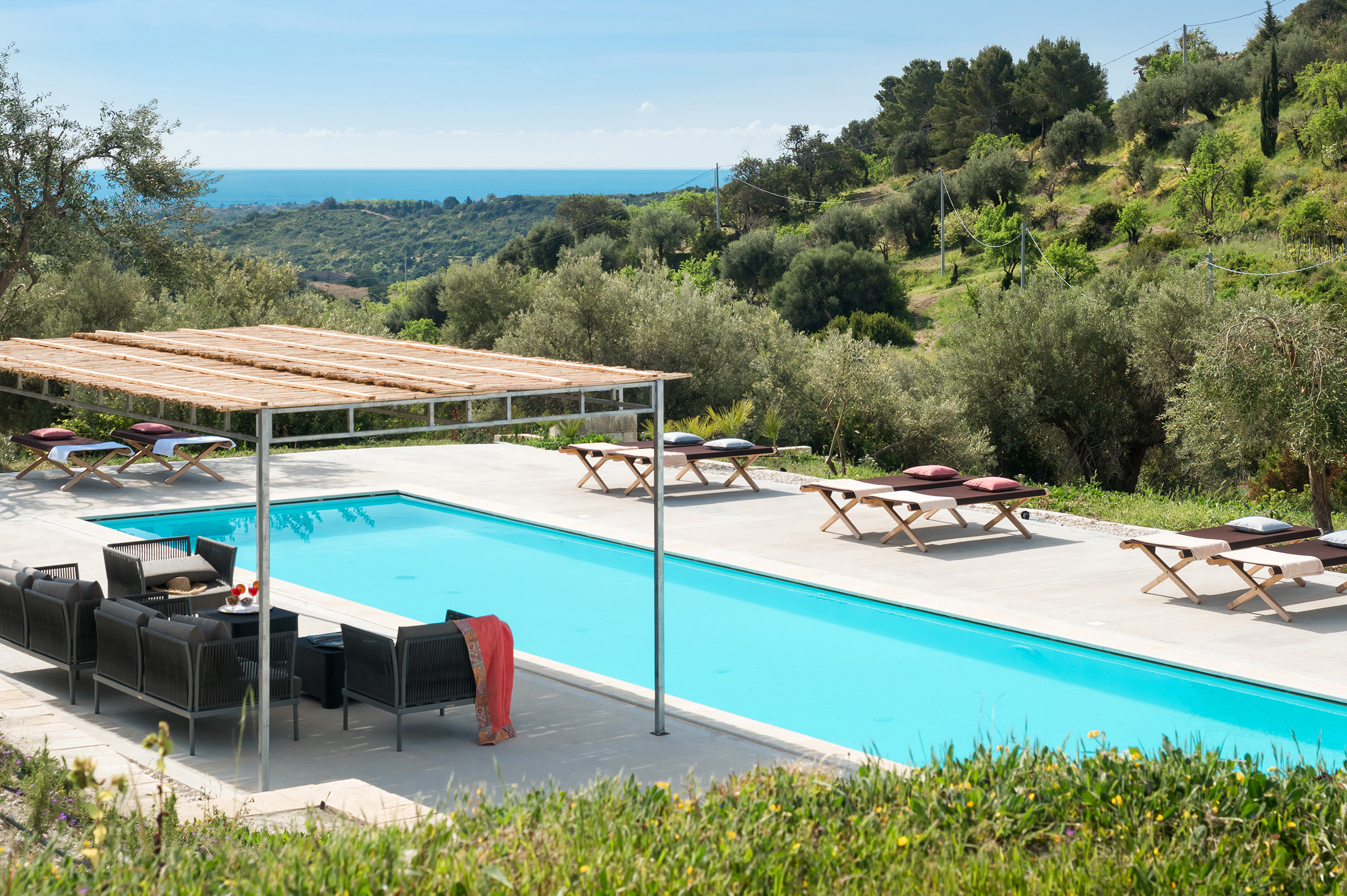 surrounding countryside and the sea. This beautiful scenery can be enjoyed in total relaxation from the characteristic, natural garden, the lovely pool and large, well-equipped terraces. This newly-built, contemporary villa consists of two buildings, both spreading over two floors. The main villa includes on the ground floor two elegant suites with double bed and bathroom with shower. On the first floor, connected with an internal and an external staircase, are a large, bright living area with a sitting and a dining room, a modern kitchen, a guest bathroom and a further double bedroom with en-suite bathroom. The annex includes on the ground floor a living room with kitchenette, a small single bedroom and a bathroom, and on the first floor is the fifth bedroom with en-suite bathroom.