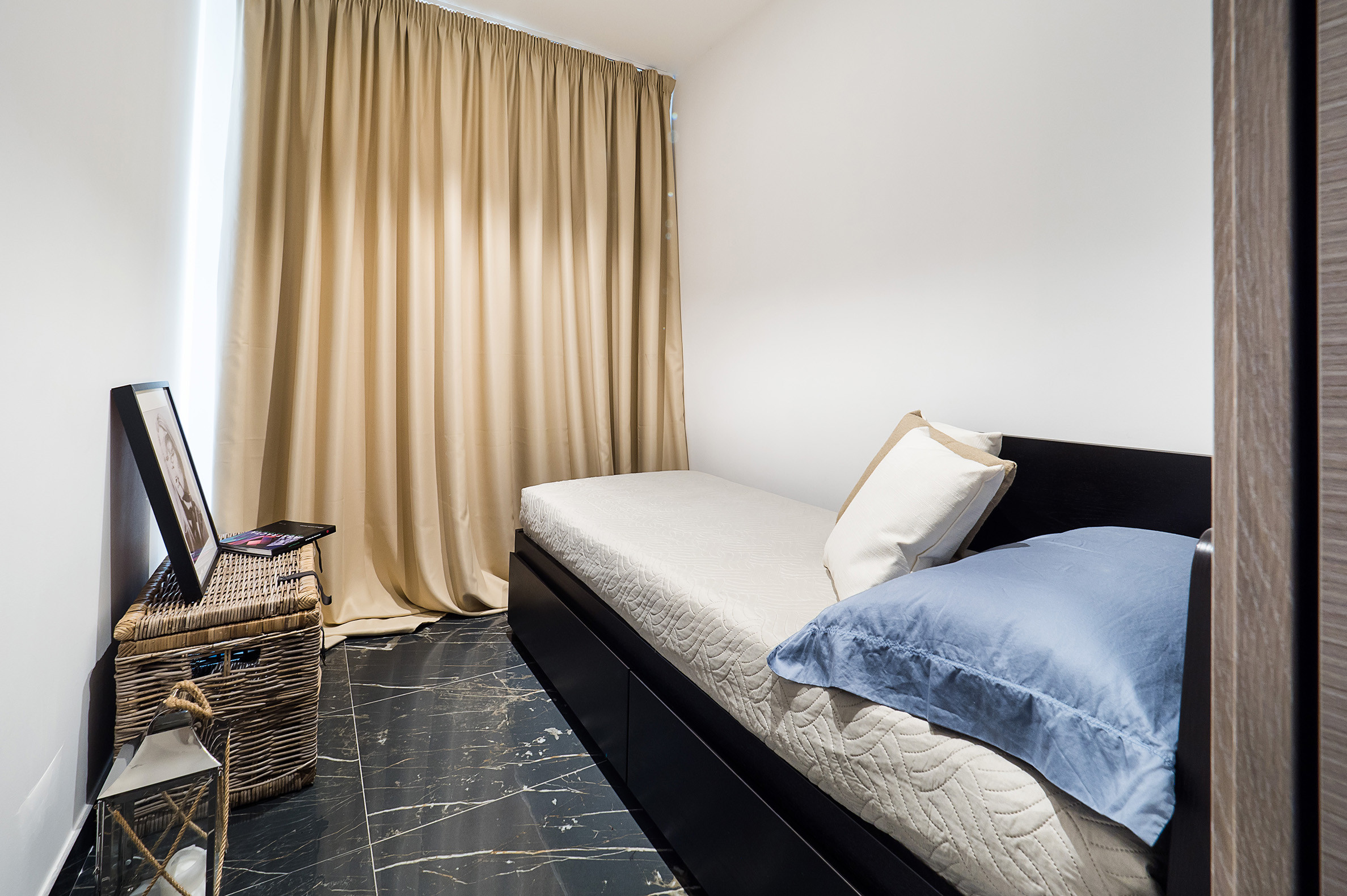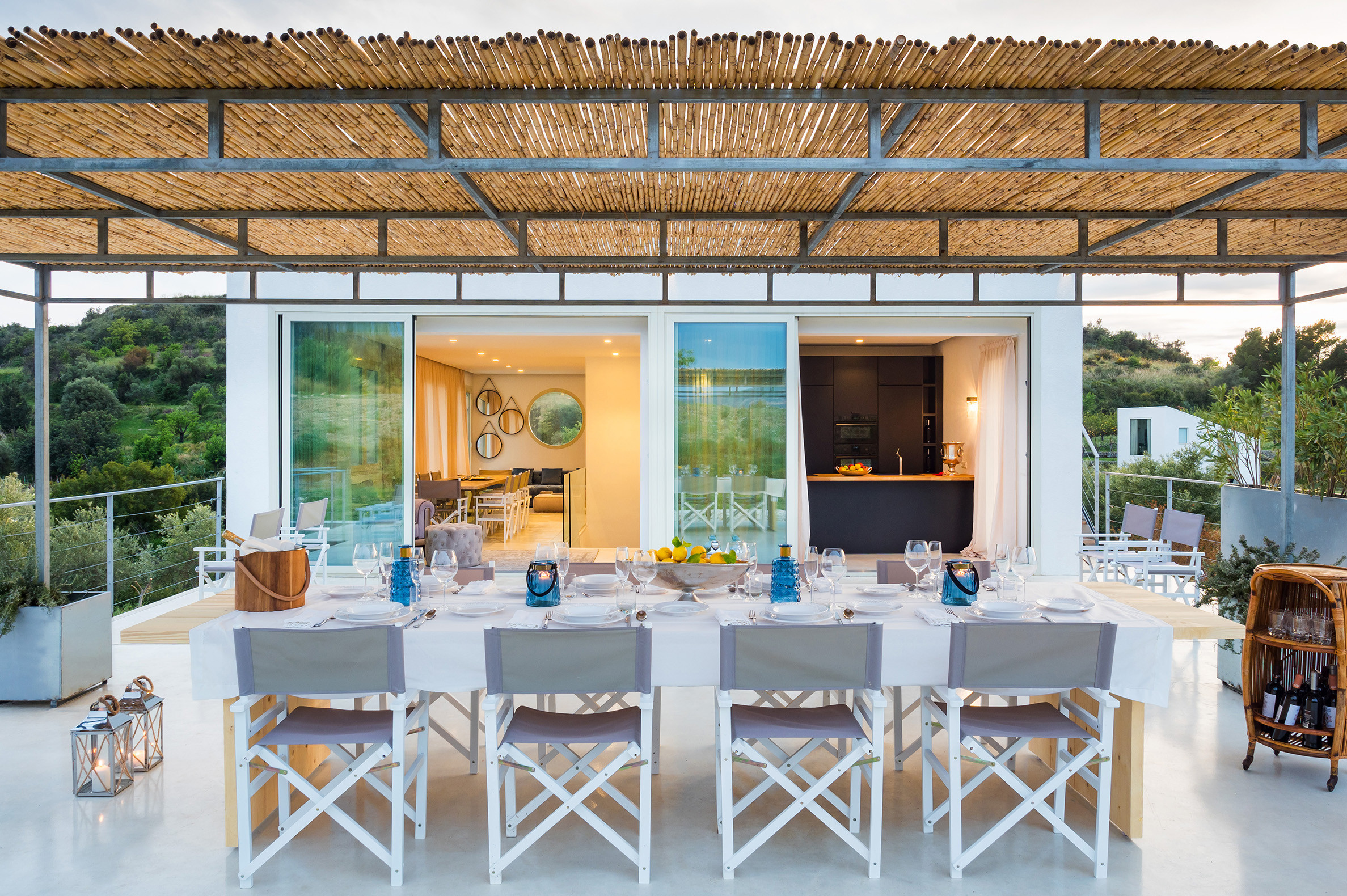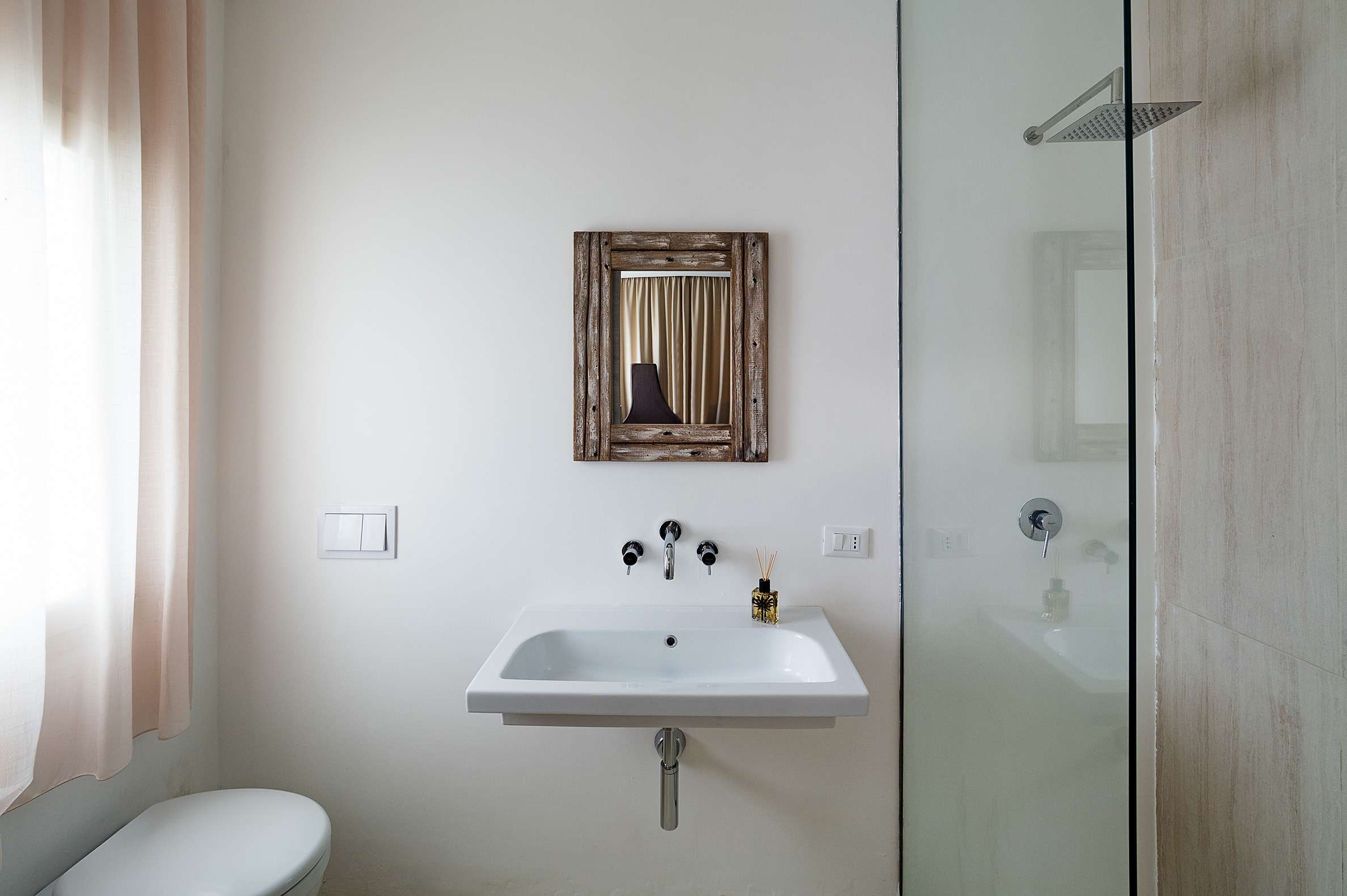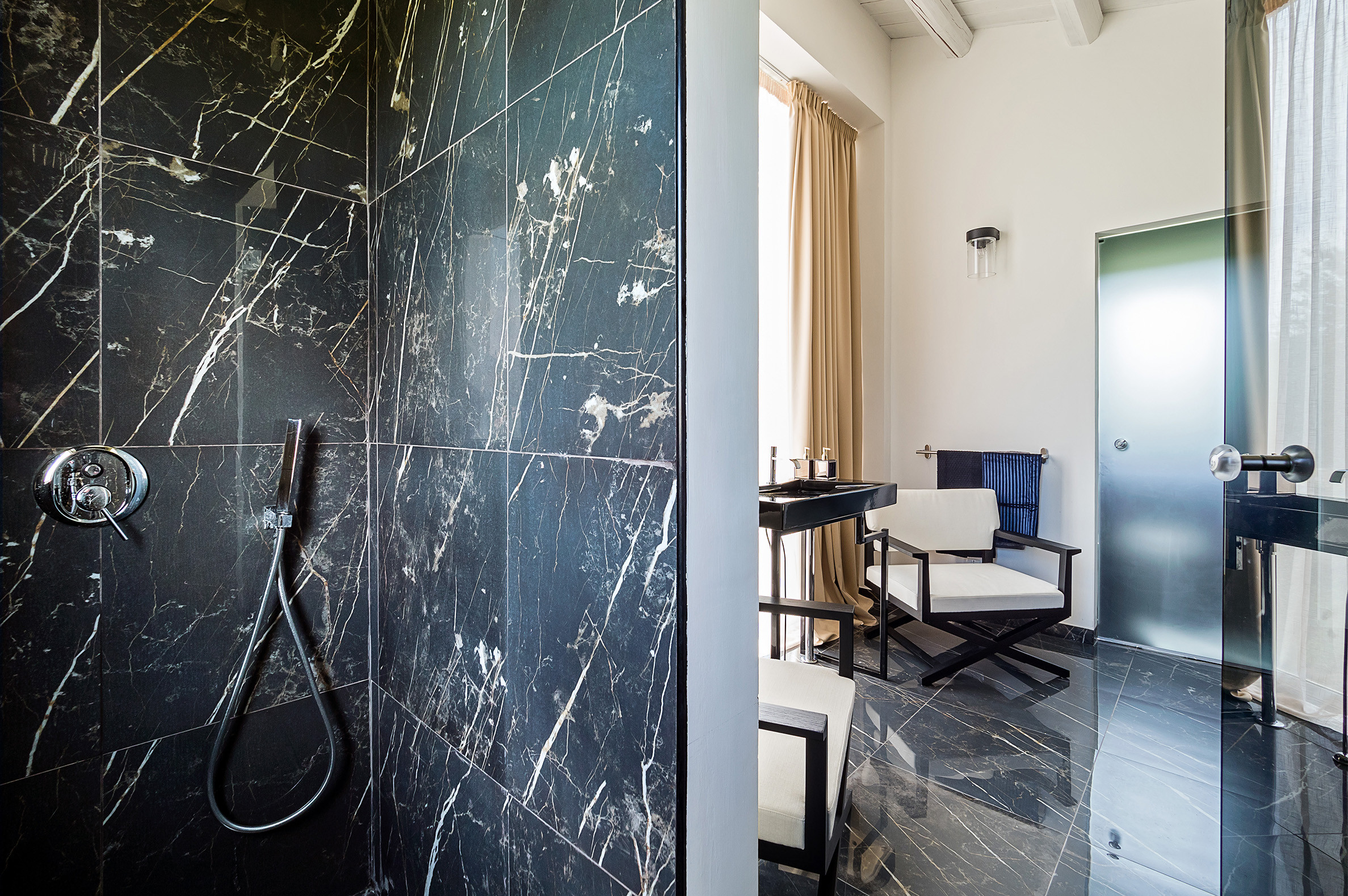 surrounding countryside and the sea. This beautiful scenery can be enjoyed in total relaxation from the characteristic, natural garden, the lovely pool and large, well-equipped terraces. This newly-built, contemporary villa consists of two buildings, both spreading over two floors. The main villa includes on the ground floor two elegant suites with double bed and bathroom with shower. On the first floor, connected with an internal and an external staircase, are a large, bright living area with a sitting and a dining room, a modern kitchen, a guest bathroom and a further double bedroom with en-suite bathroom. The annex includes on the ground floor a living room with kitchenette, a small single bedroom and a bathroom, and on the first floor is the fifth bedroom with en-suite bathroom.