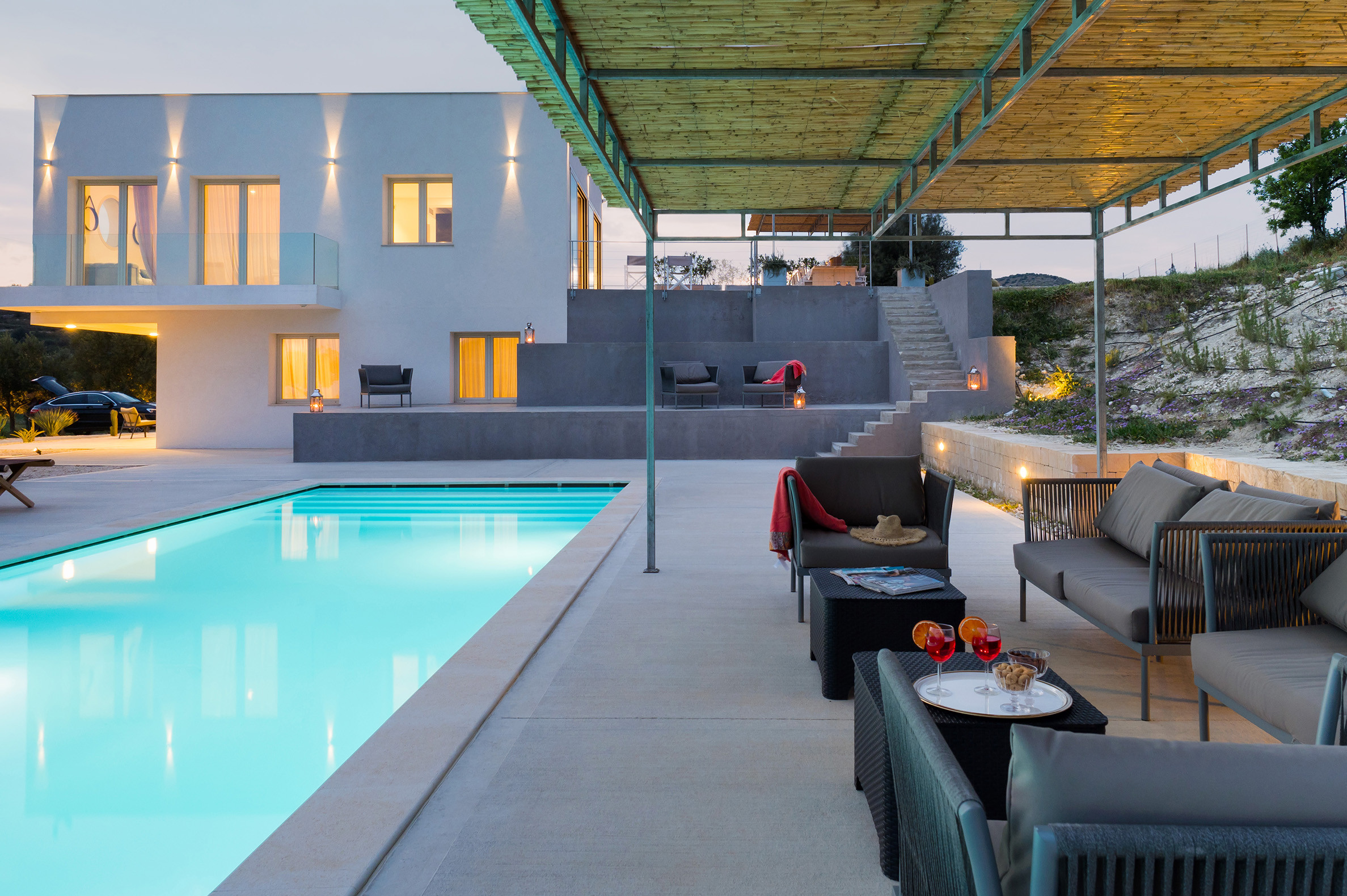 The villa has 5 bedrooms and has capacity for 9 people. Luxury villa with private pool (heated at 21°) situated close to Noto, ancient charming baroque town 30 km south of Syracuse.