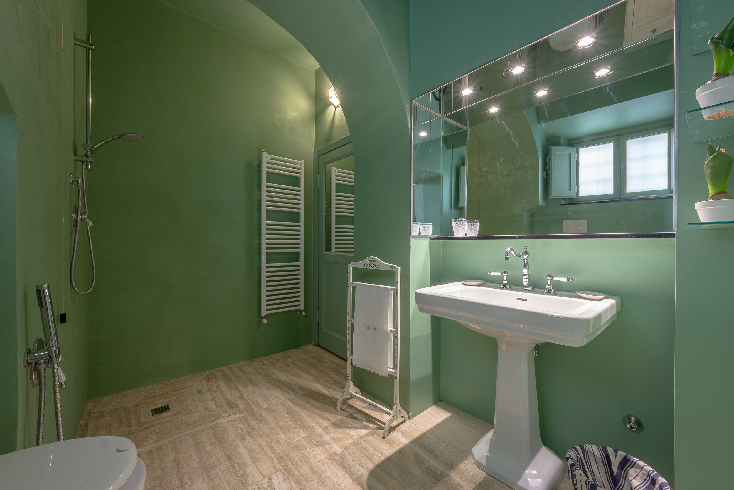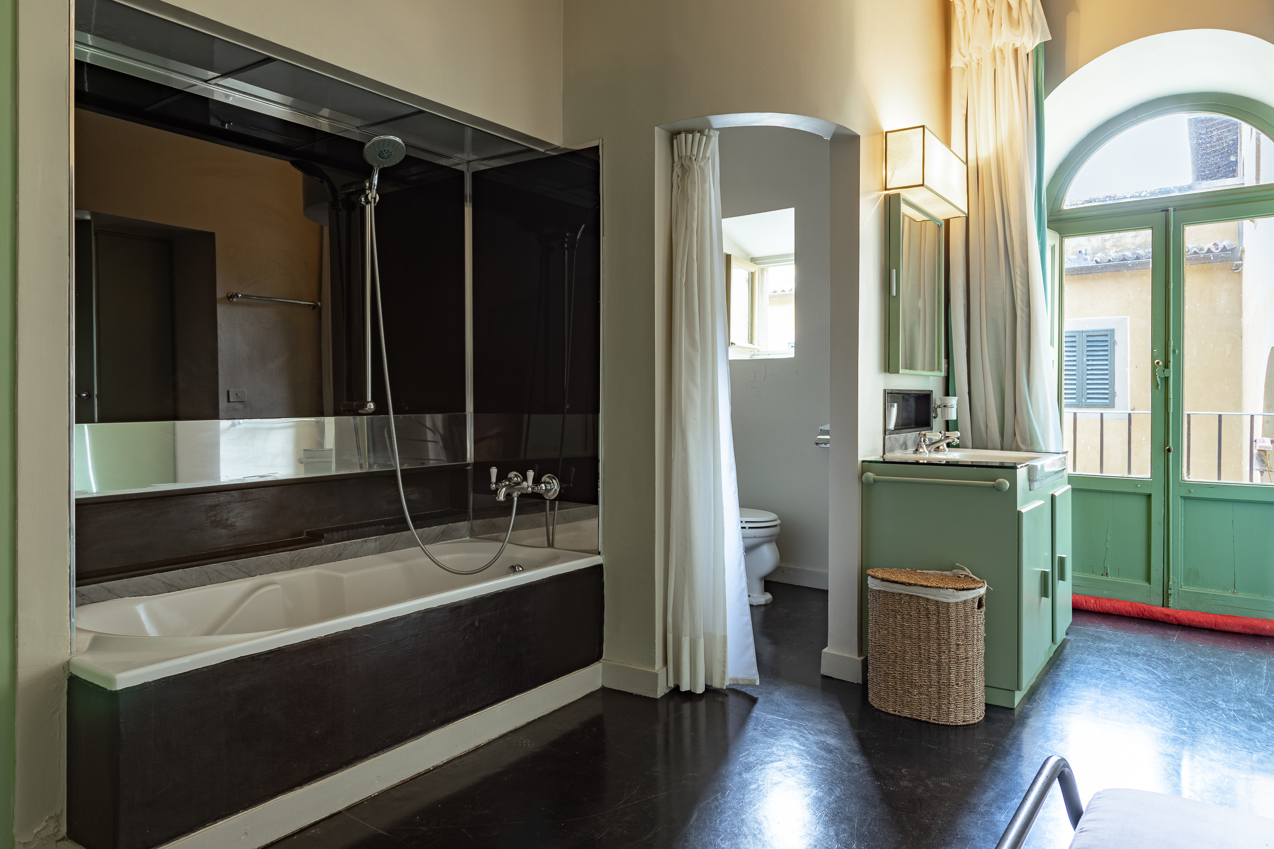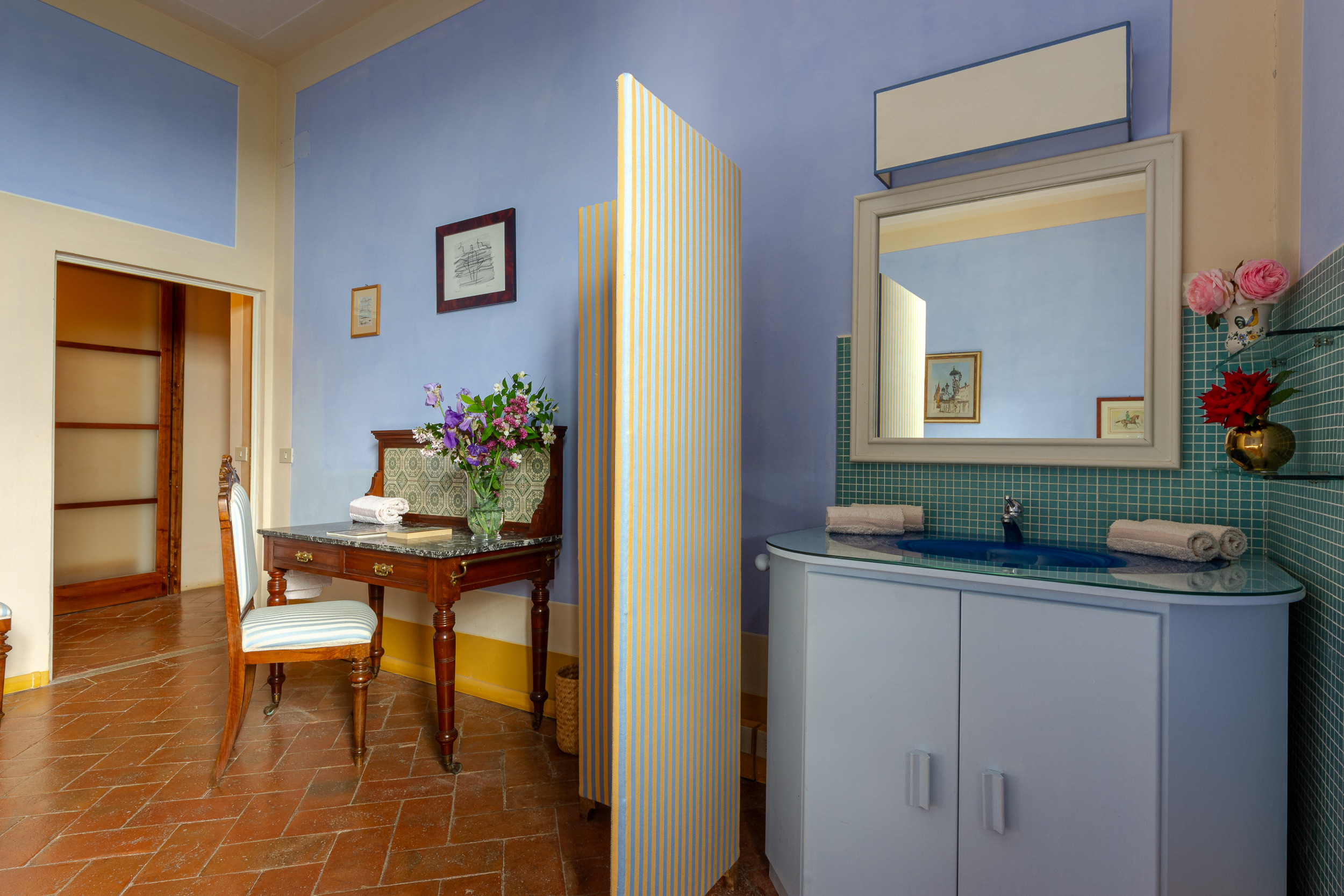 On the second floor there is a bedroom, from where we can admire Florence and the Cathedral Dome, equipped with a king size bed, A/C and a complete ensuite bathroom with bathtub, a double bedroom with private lounge, king size bed and ensuite bathroom with shower and bathtub and two bedrooms with two single beds and a shared bathroom with bathtub with access from the corridor.