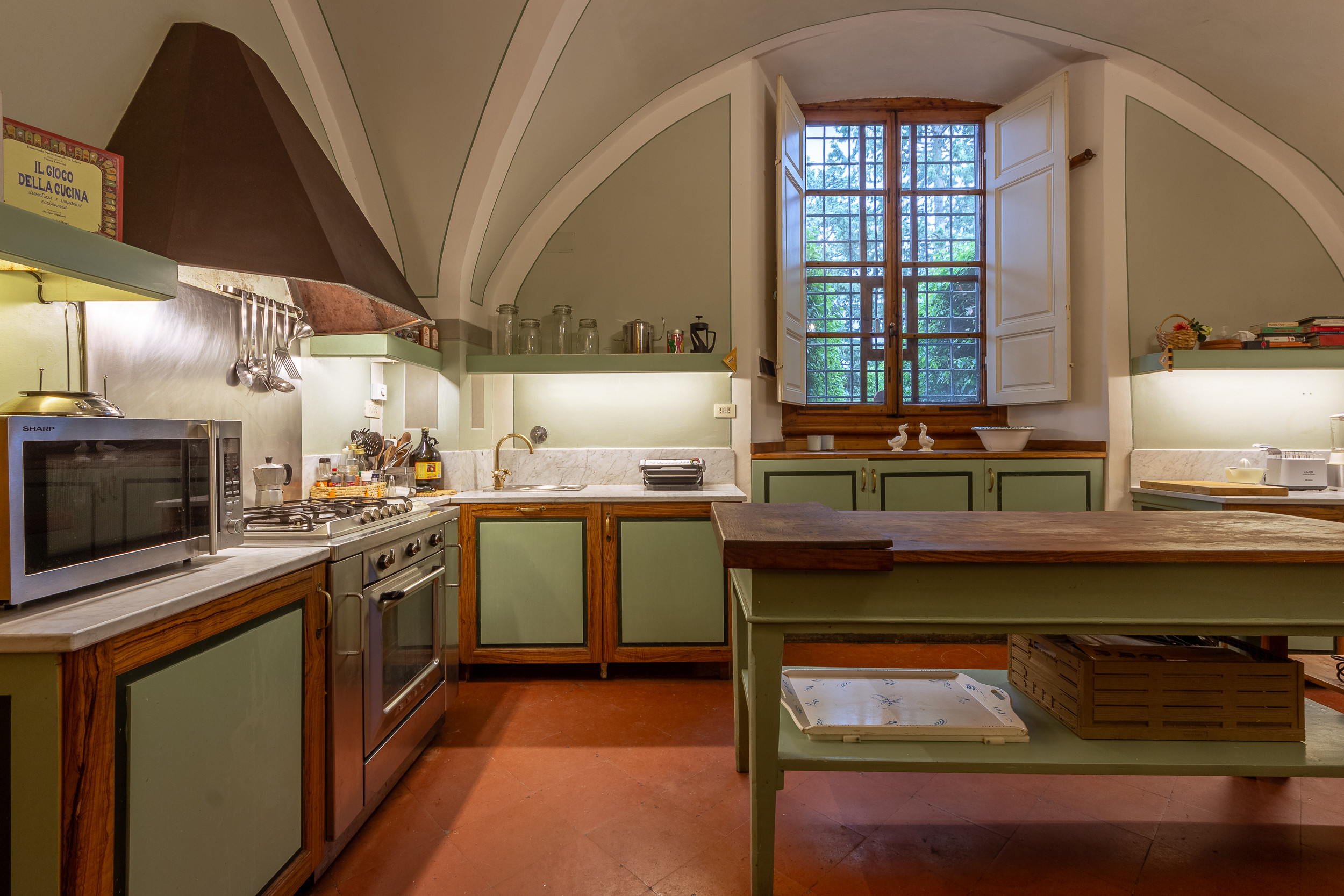 The villa presents several ancient and precious common room areas, such as the Hall of Arms, the kitchen on the ground floor of the tower, and the elegant living room, designed with the greatest care, in harmony with the traditions and taste of Tuscan houses.