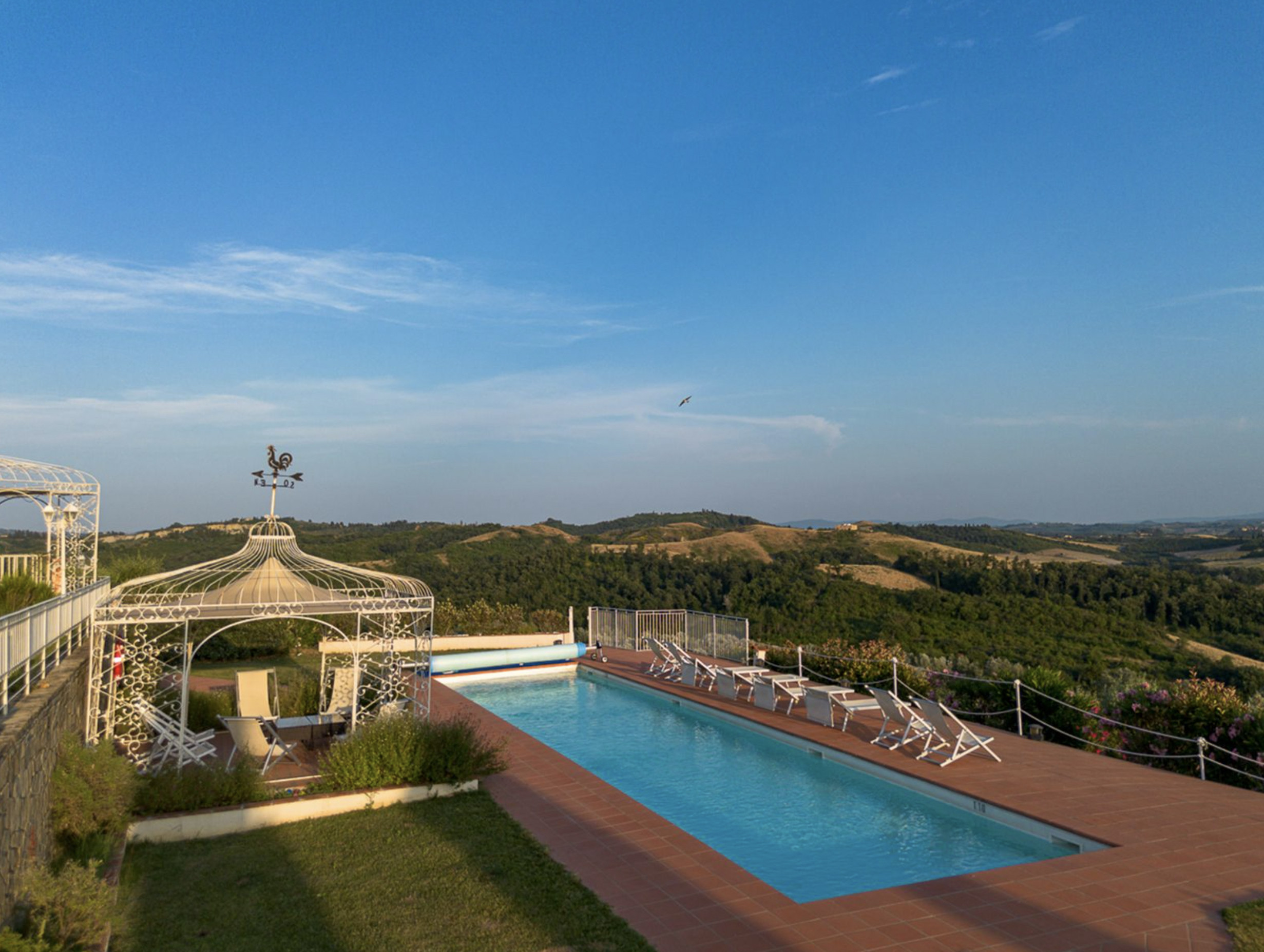 The villa in Tuscany with swimming pool, also has large common areas, a well-kept garden and terraces from which you can enjoy breathtaking views.
