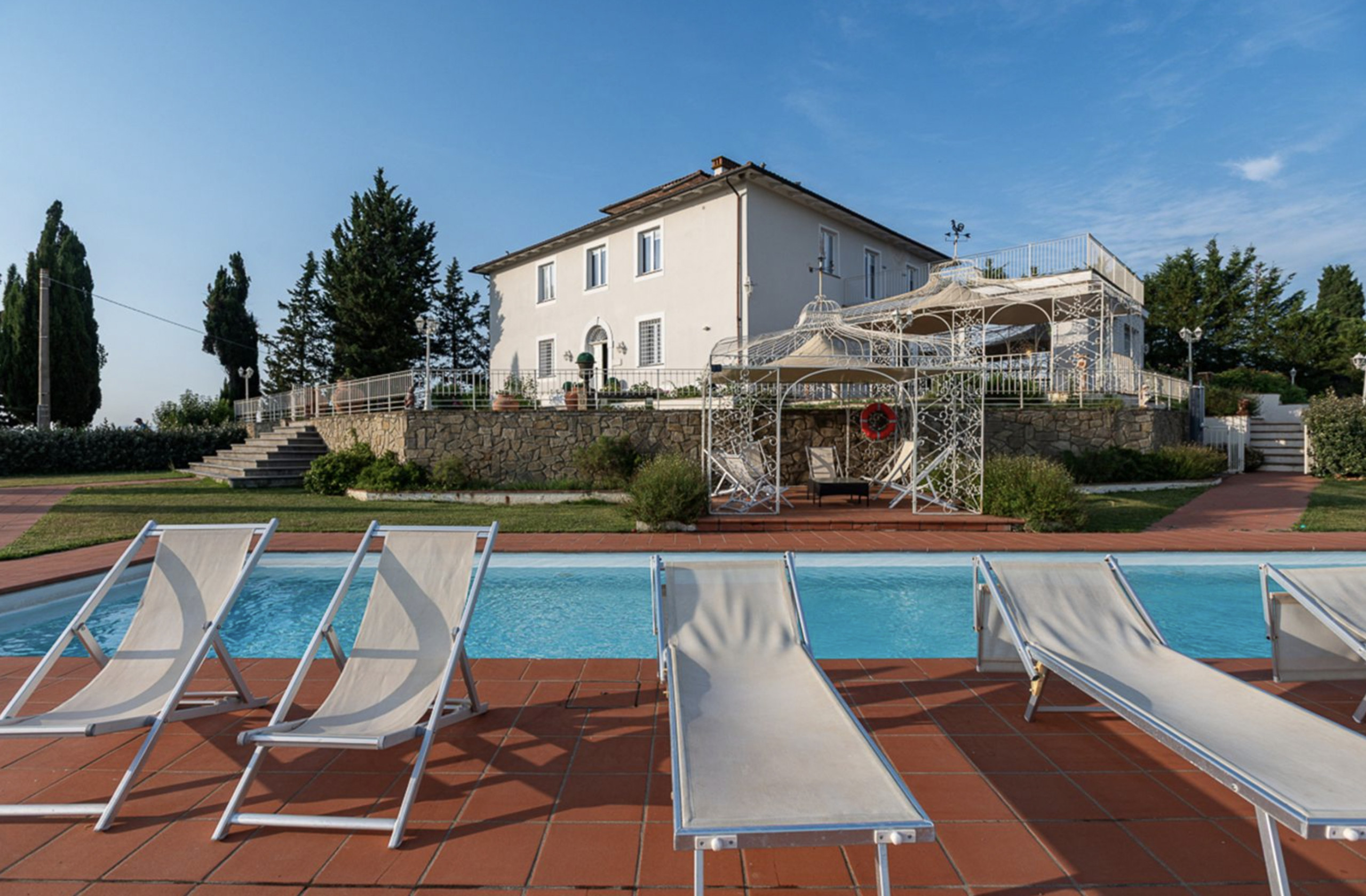 an exclusive villa with swimming pool near Florence , surrounded by a large private park, and equipped with a large private car park which is accessed by an imposing and ancient iron gate. Outside there is a gazebo and a barbecue, all surrounded by olive groves and centuries-old trees, a setting that makes the Tuscan villa ideal for organizing a wedding , event or reception.