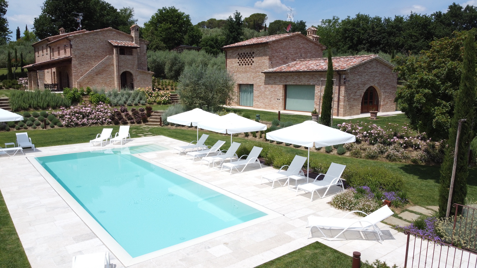 Through a nice little country road you arrive at the property, 3 hectares in total, to reach the villa itself you go trough a picturesque boulevard with tipical cypresses. At the end of the boulevard you find the villa, the suite and the pool area.