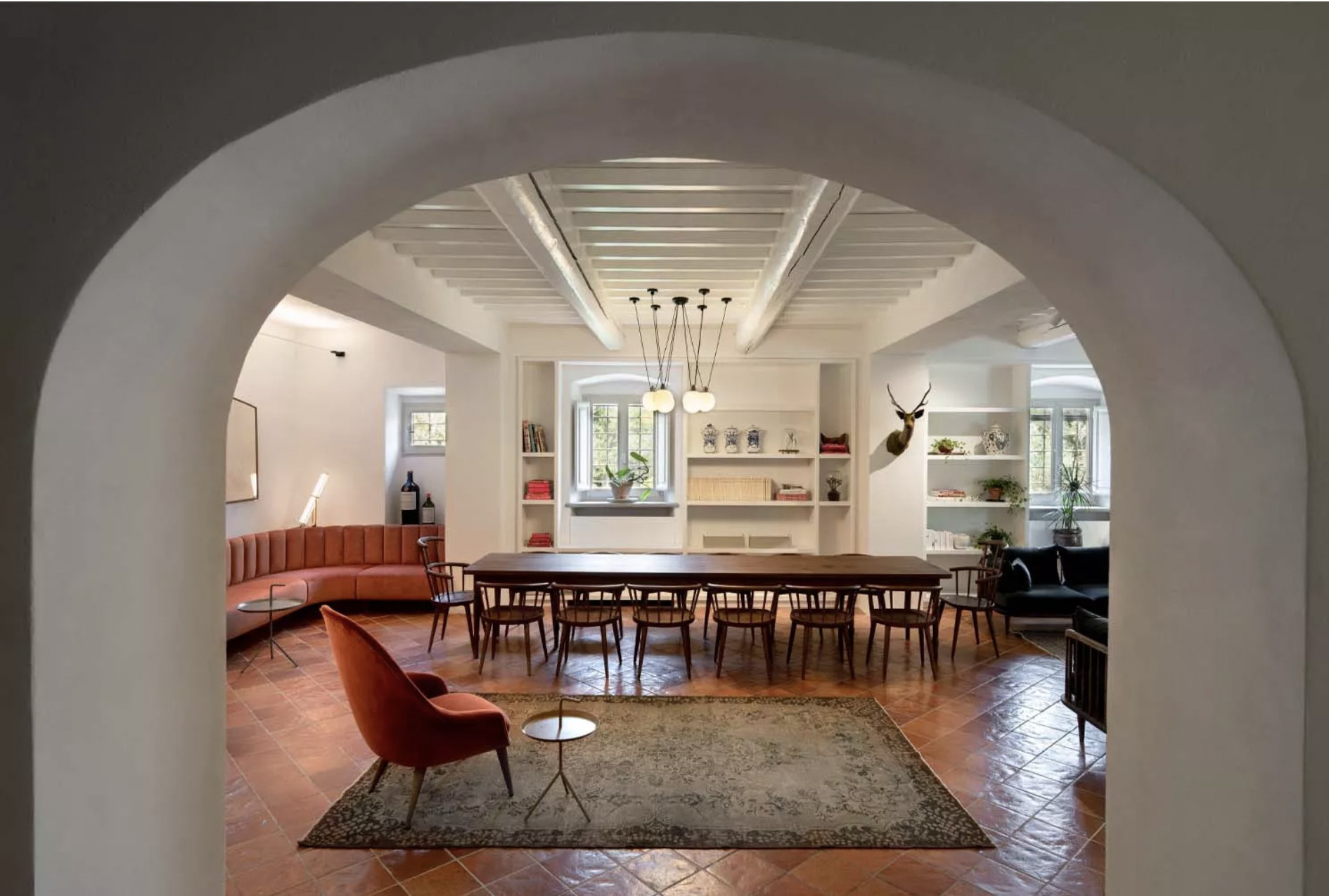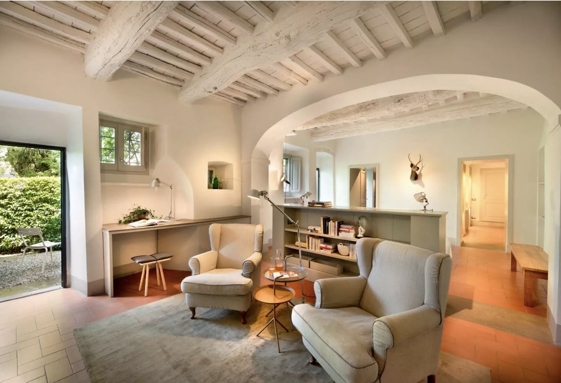 with natural colour schemes and Italian designer furniture, is combined with the typical elements of the traditional Tuscan farmhouse.