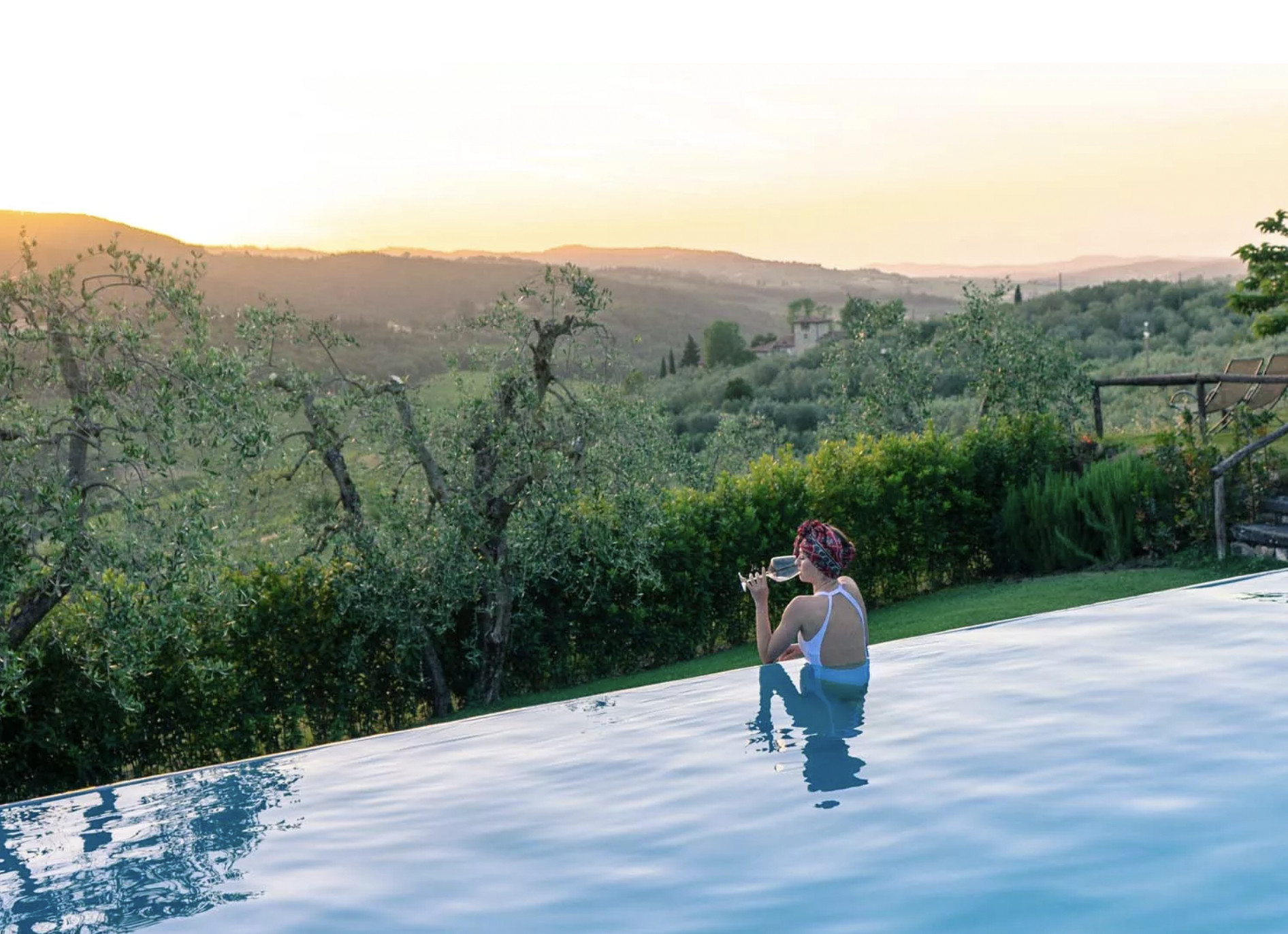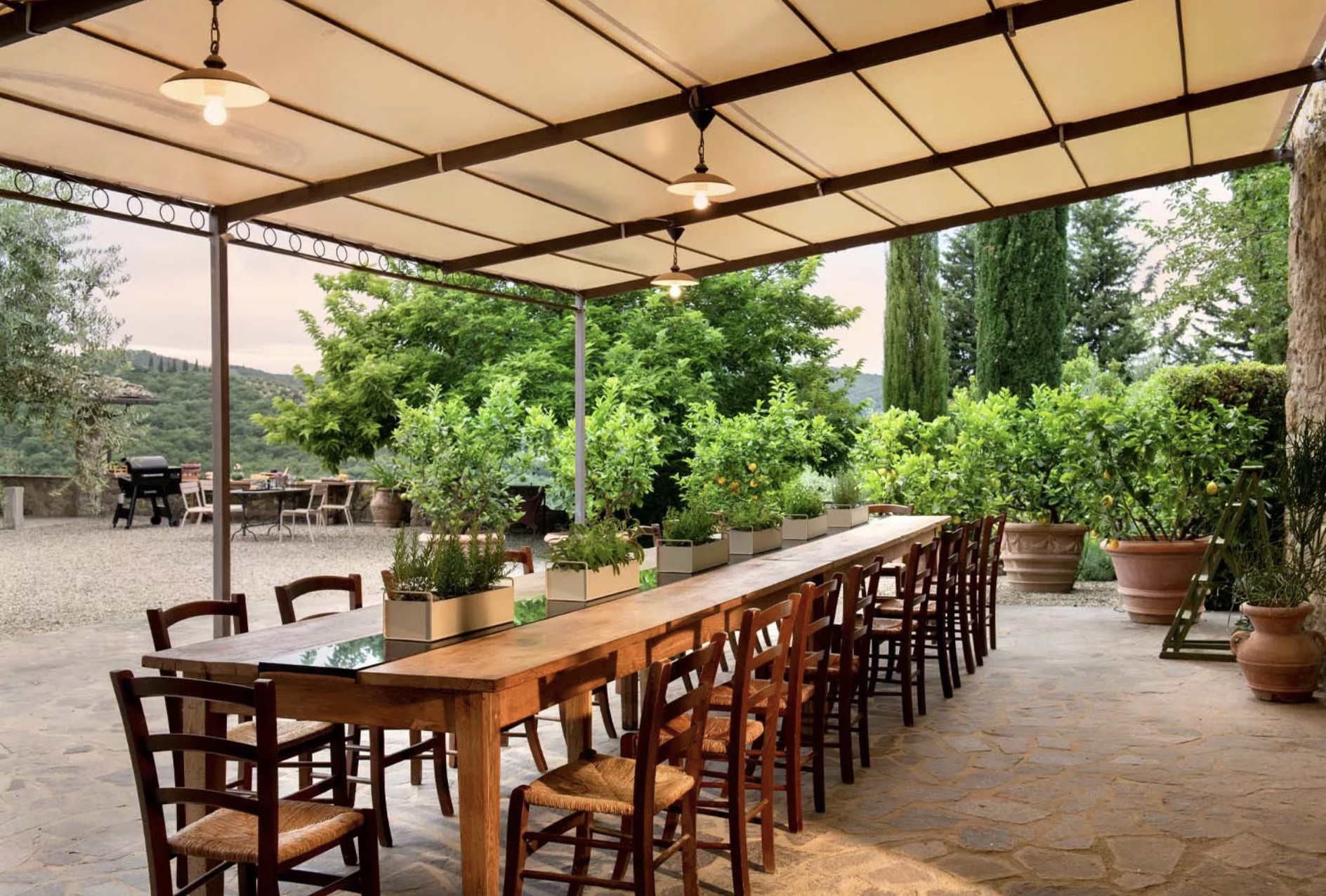 The covered terrace offers the perfect space to indulge in some pleasant summer reading or enjoy the panoramic view over the valley. From Villa La Casata e a myriad of paths criss-cross the garden, winding past strawberry trees, rosemary bushes and scented jasmines and lead guests to a lovely infinity pool which looks out across the olive orchard.