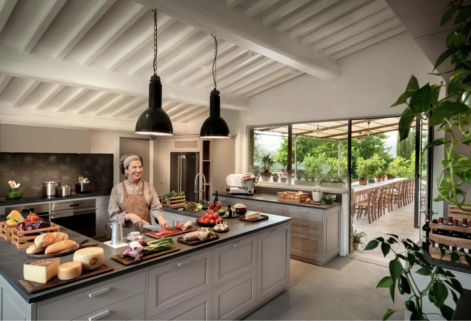 Our guests can show-off their cooking skills in the well-equipped kitchen of Villa La Casata, before settling down in the dining room to enjoy their meal and discuss plans for the days ahead.
