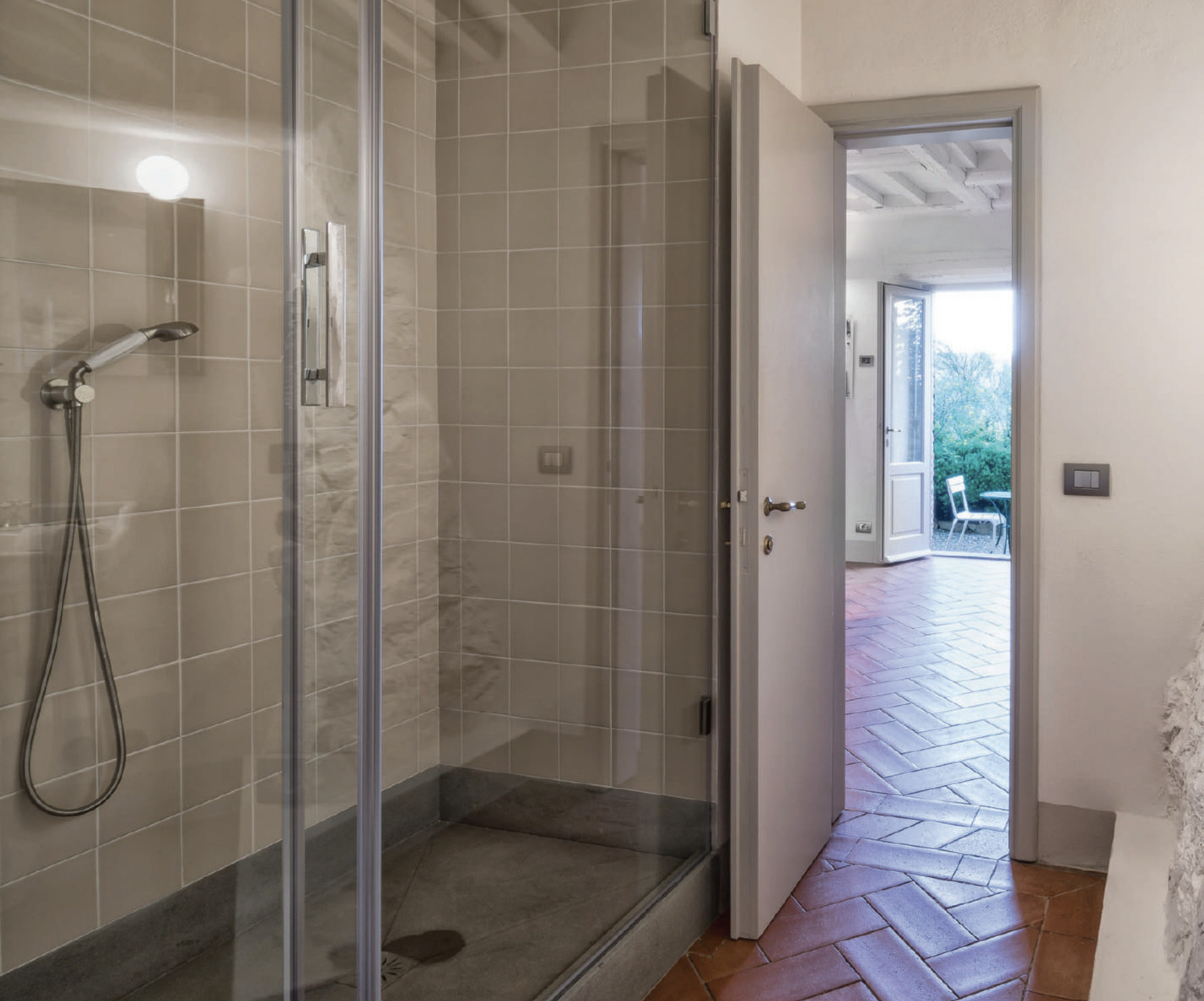 Our Family Suite sits in the tower of Villa La Casata farmhouse, with a wonderful panoramic view over the surrounding vineyards. With one double and one single bedroom, and a second bed, this is a perfect solution for families with children. Just a few steps away from the infinity pool and with nature on all sides, the Family Suite is furnished in a spare, contemporary style.