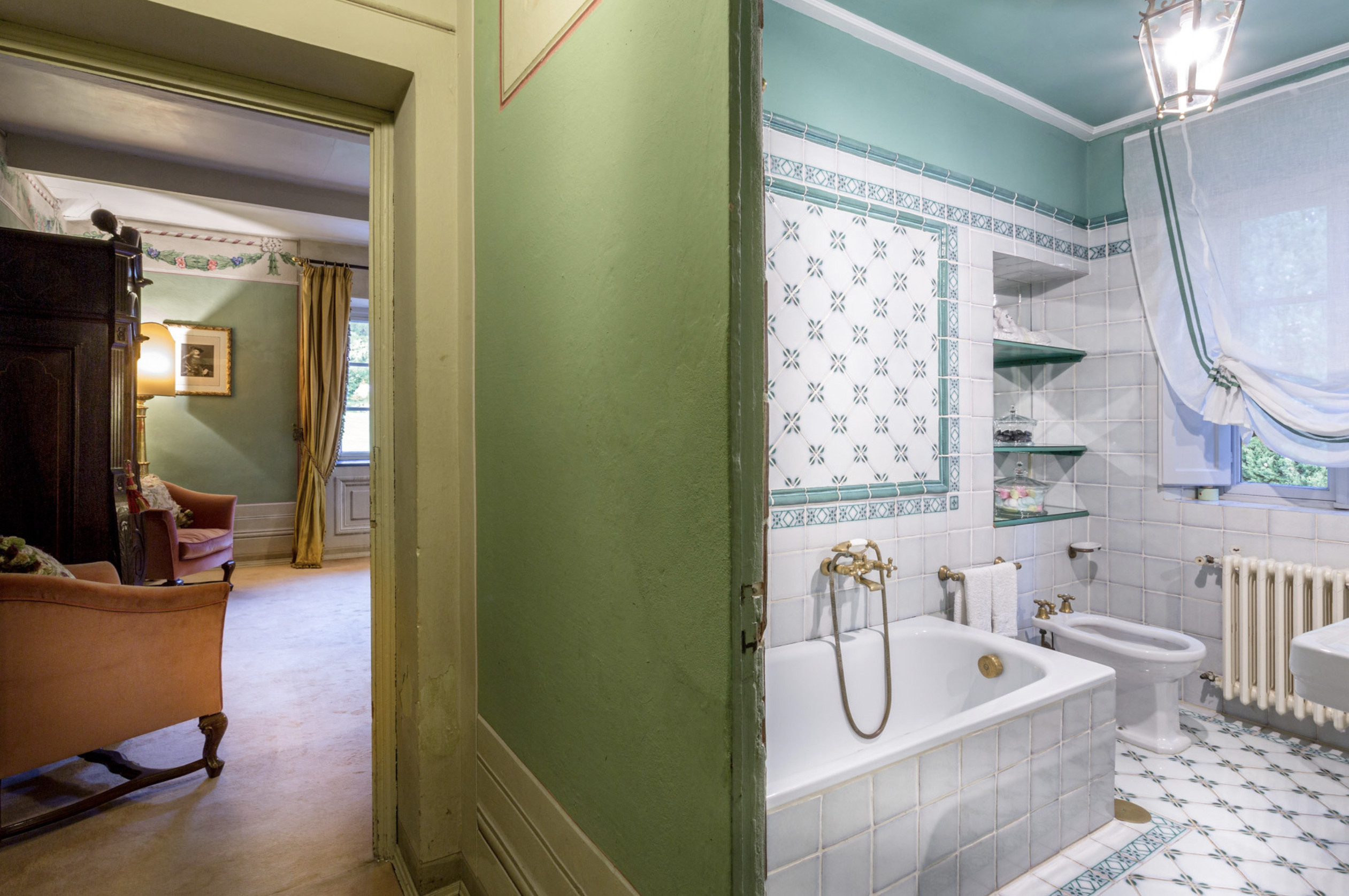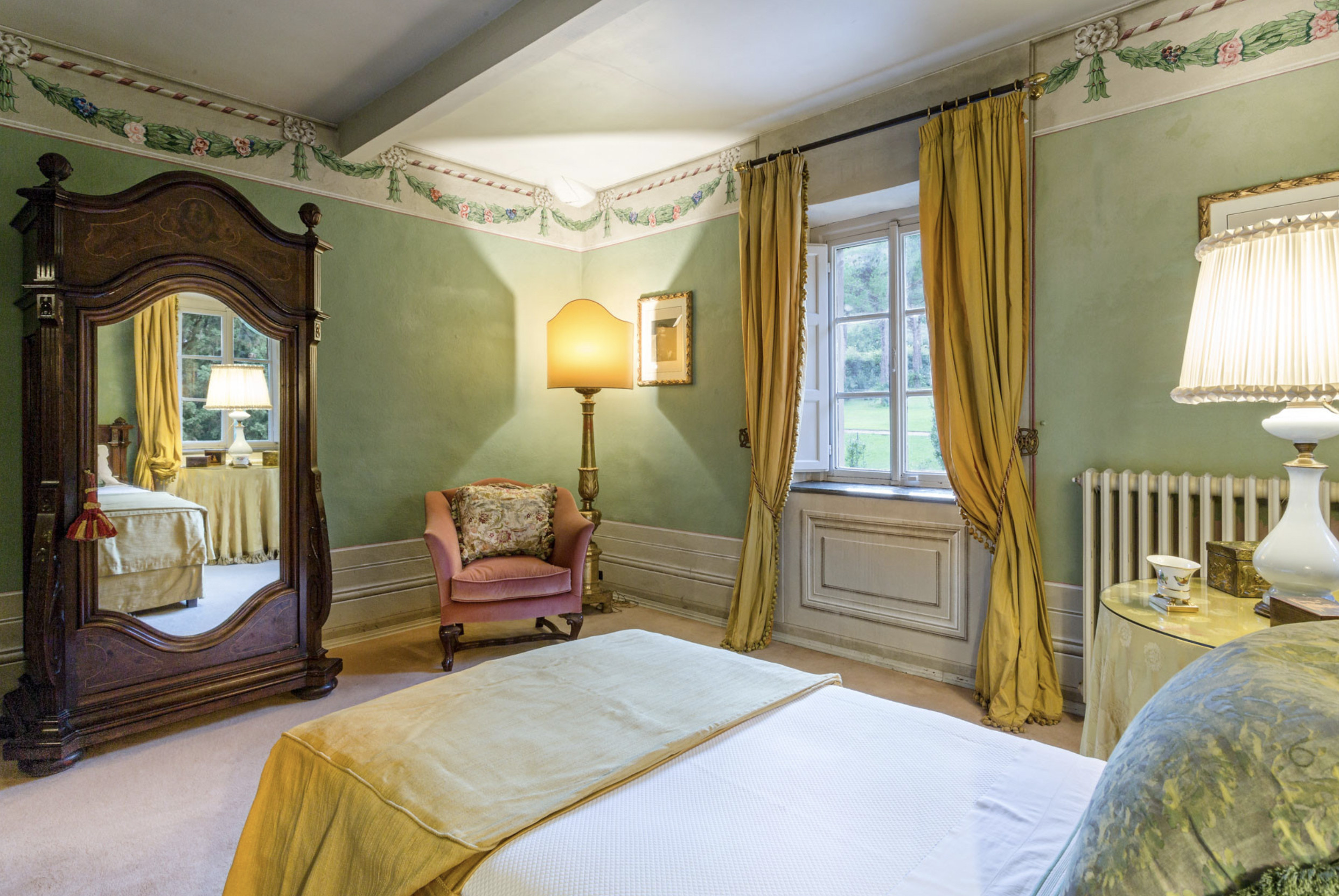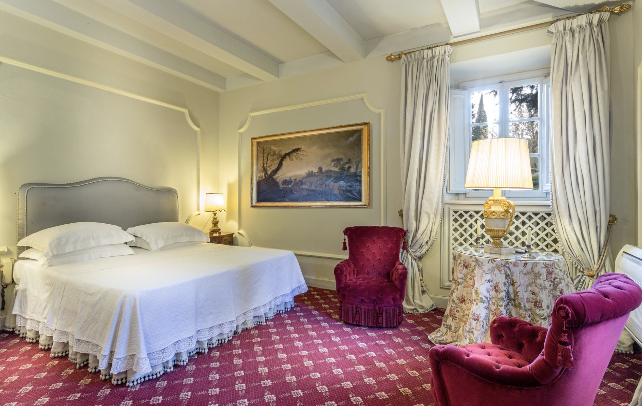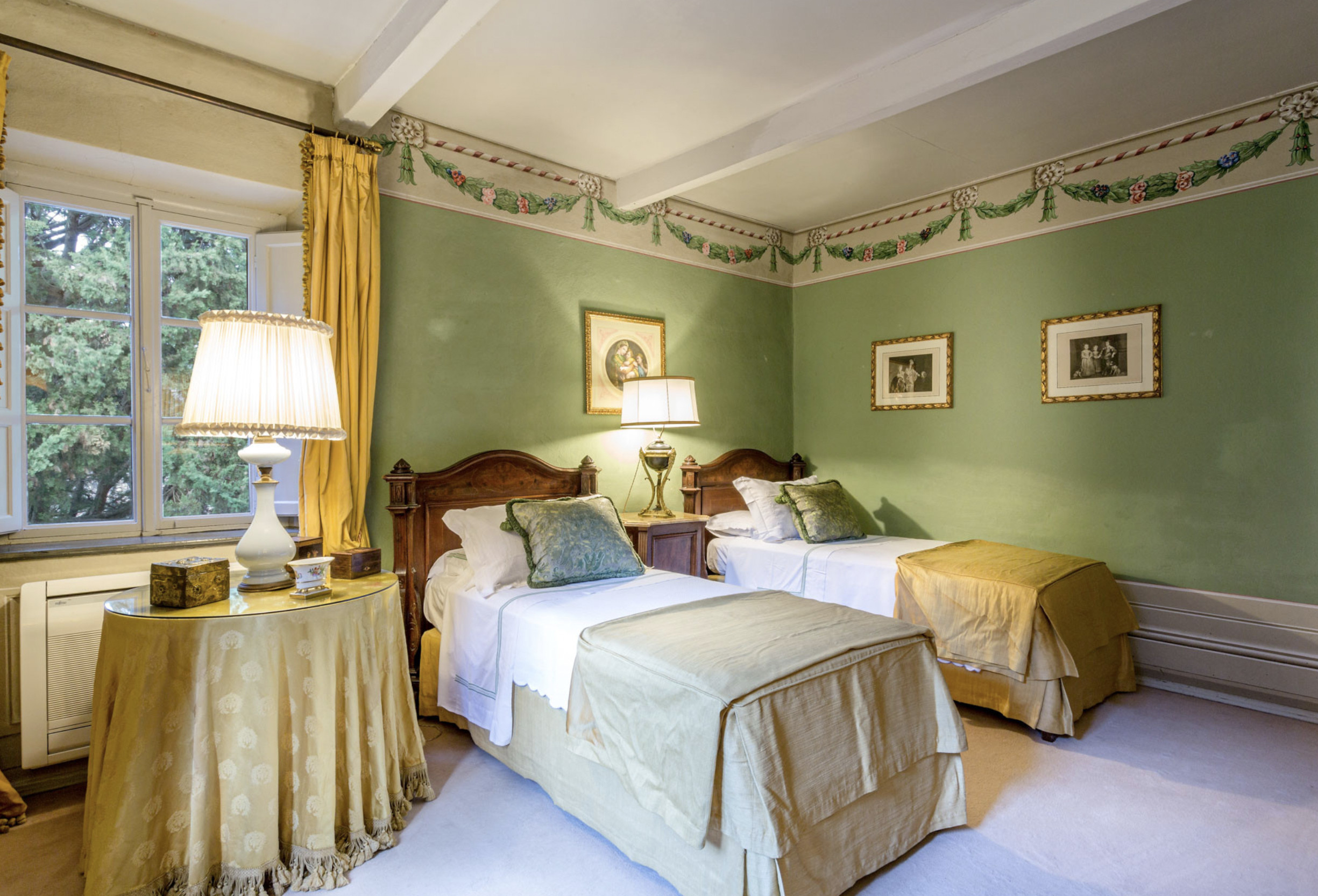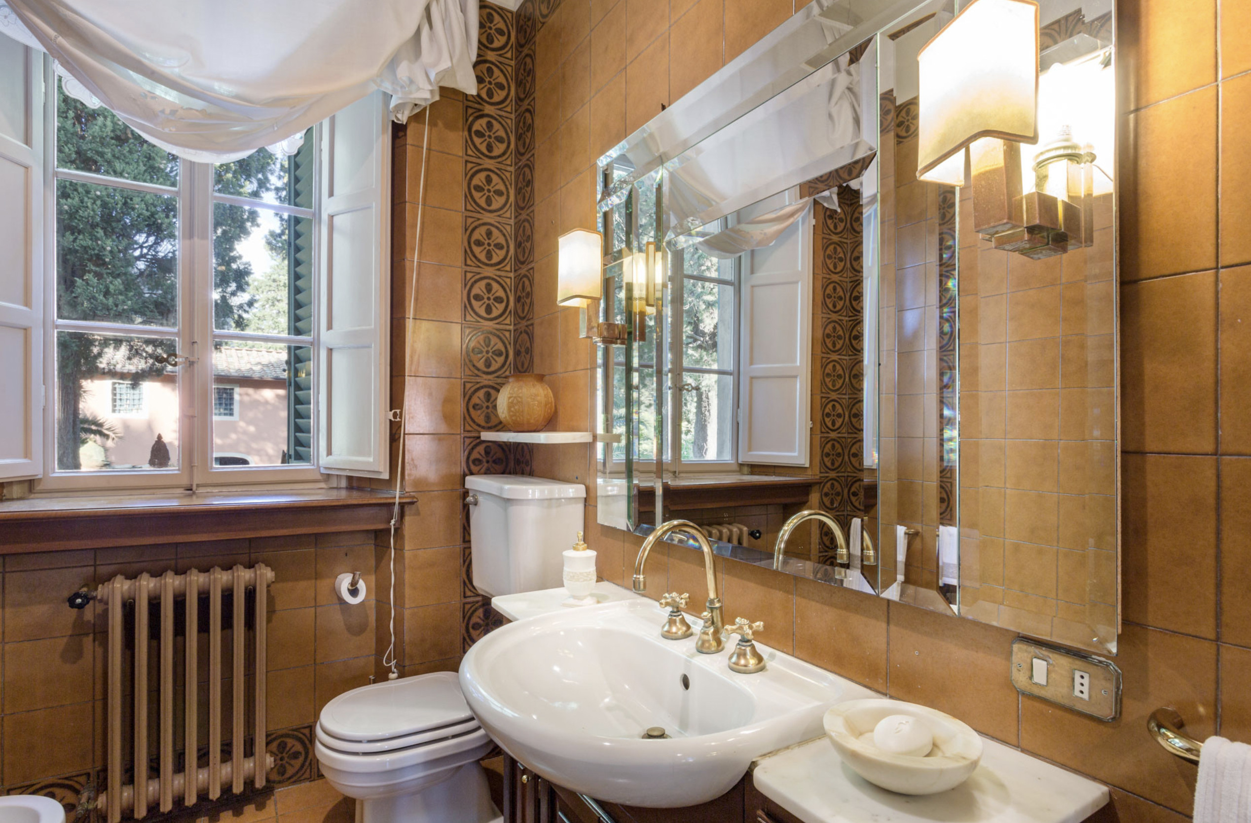 Villa has been superbly restructured, all the rooms have period furnishings, flanked by the modern of TV, satellite and internet. The internal beauty and elegance of the villa is harmoniously balanced with the external space which is made up of a stunning beautifully-kept park with a garden, ancient trees and a small patio. In the middle of the park is situated a swimming pool (14 x 6) well equipped with umbrella and sunbeds. Back to the villa there is table and chairs for meals “ al fresco” and a large sun umbrella.