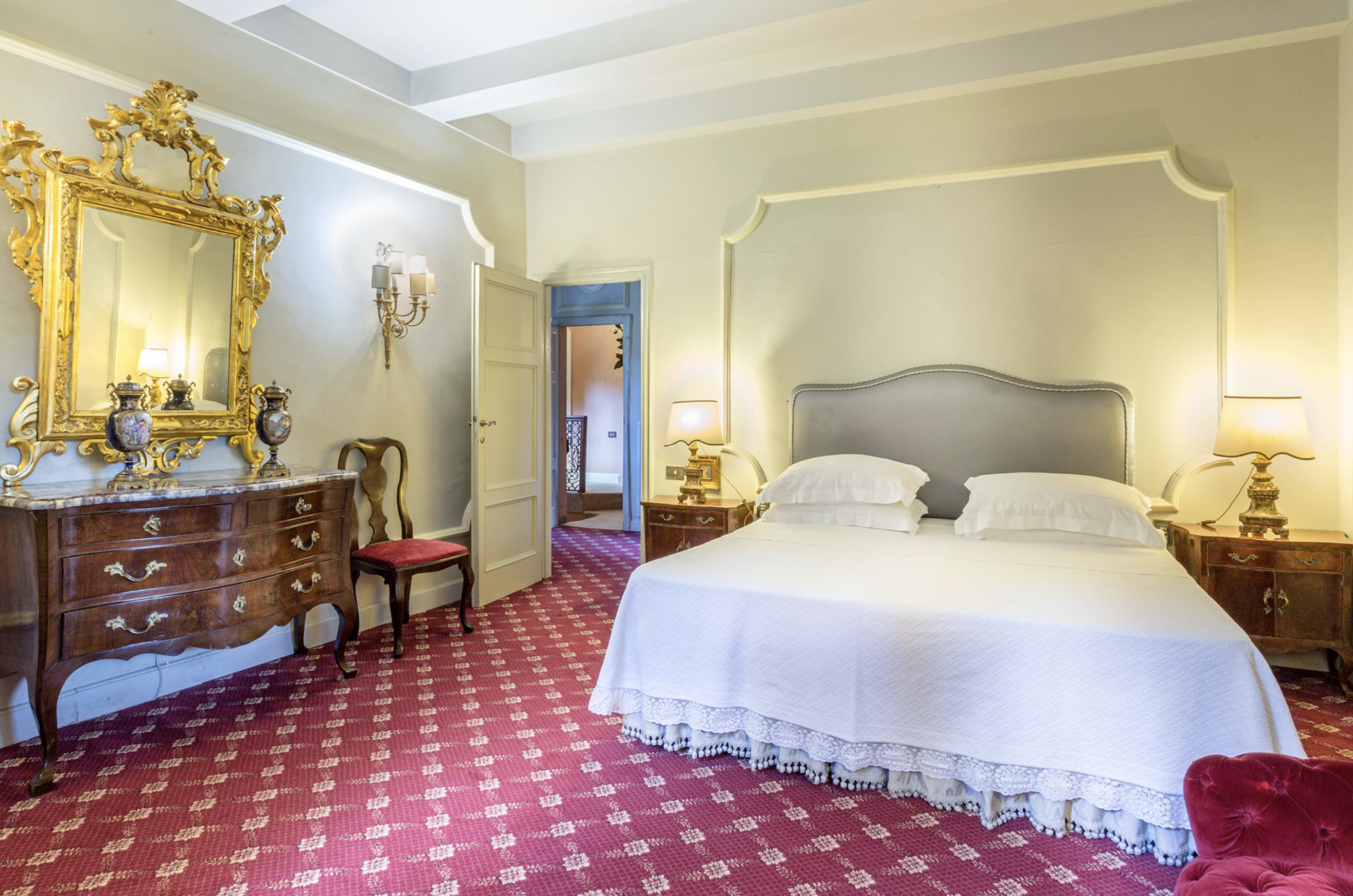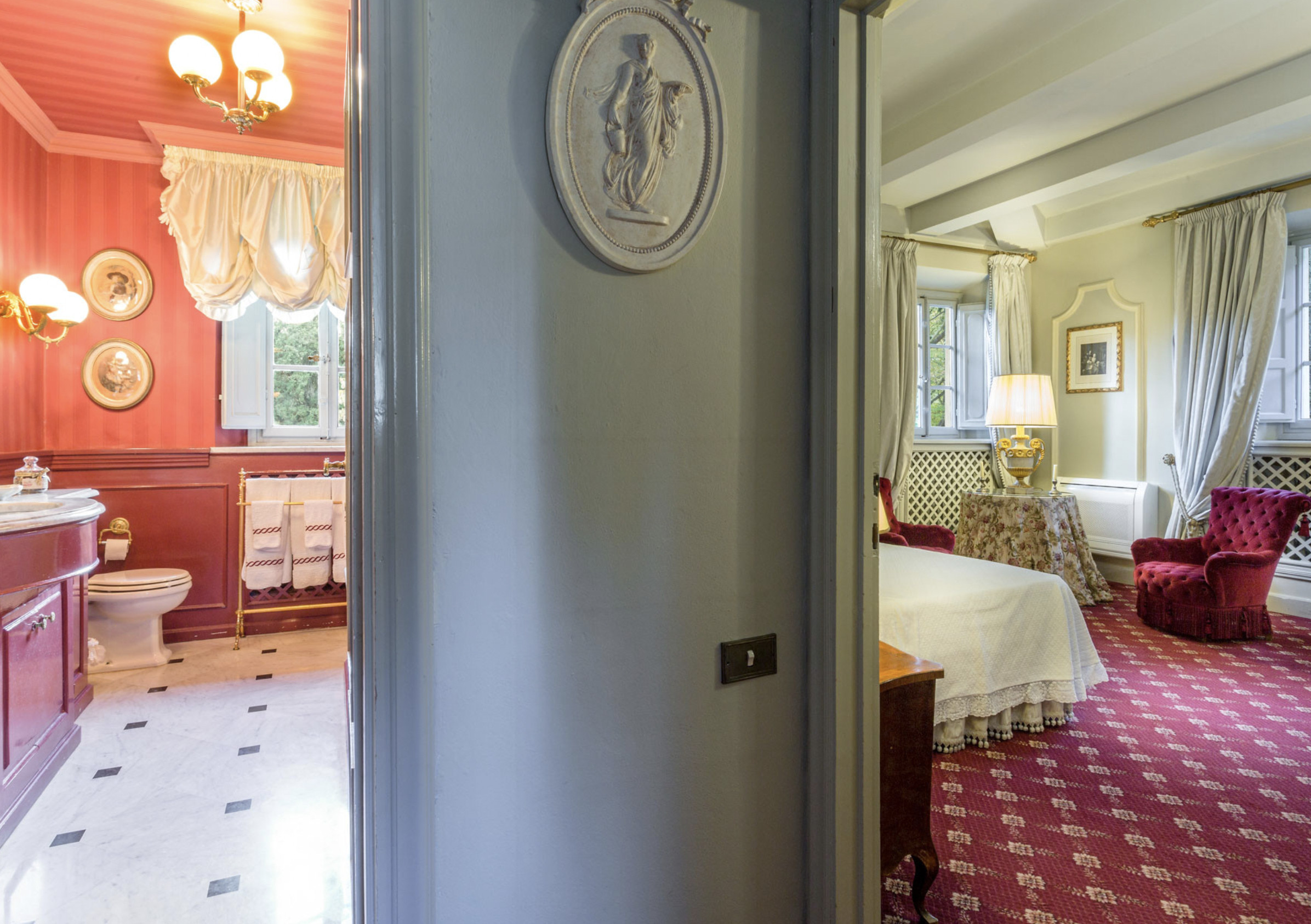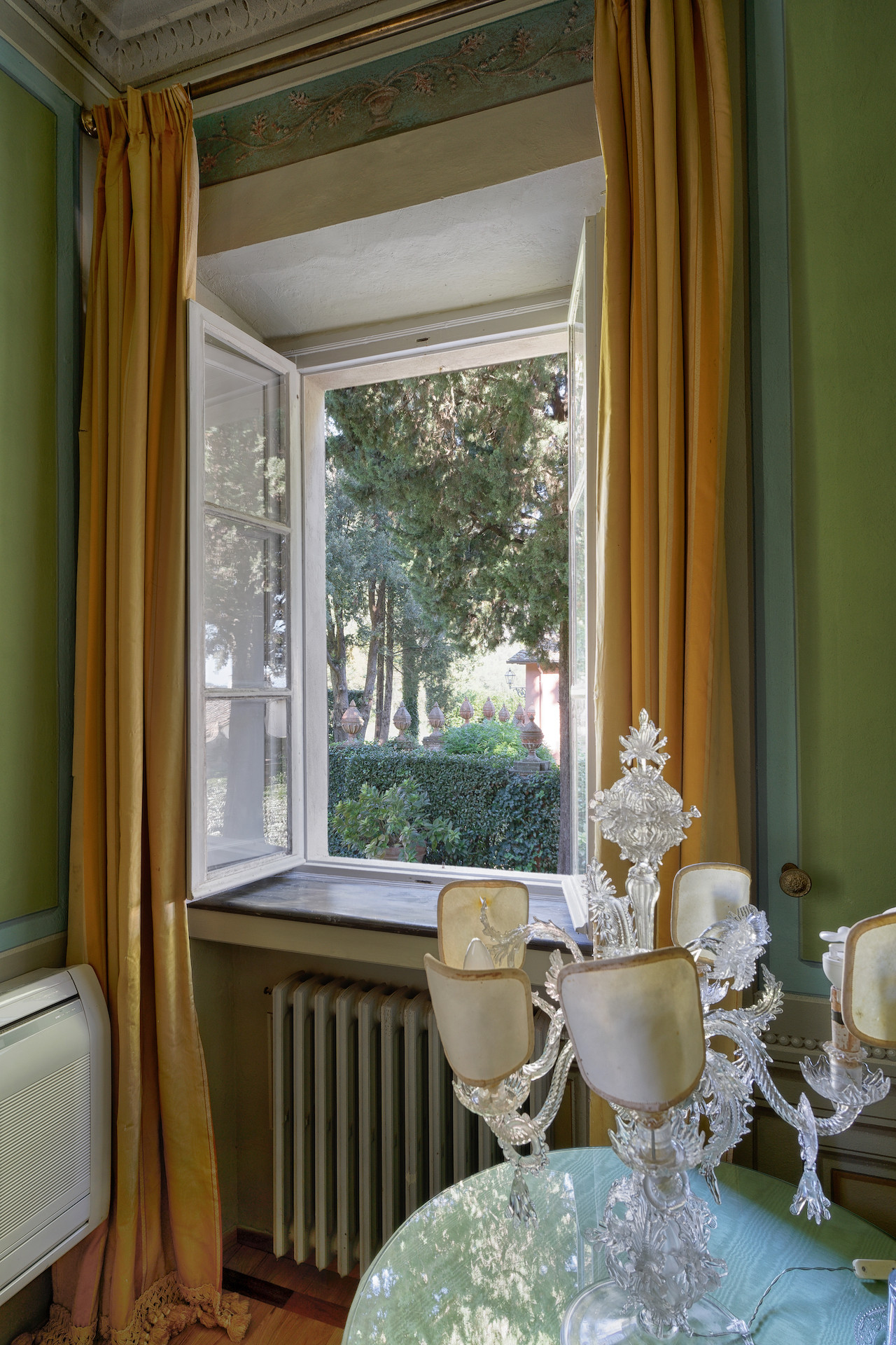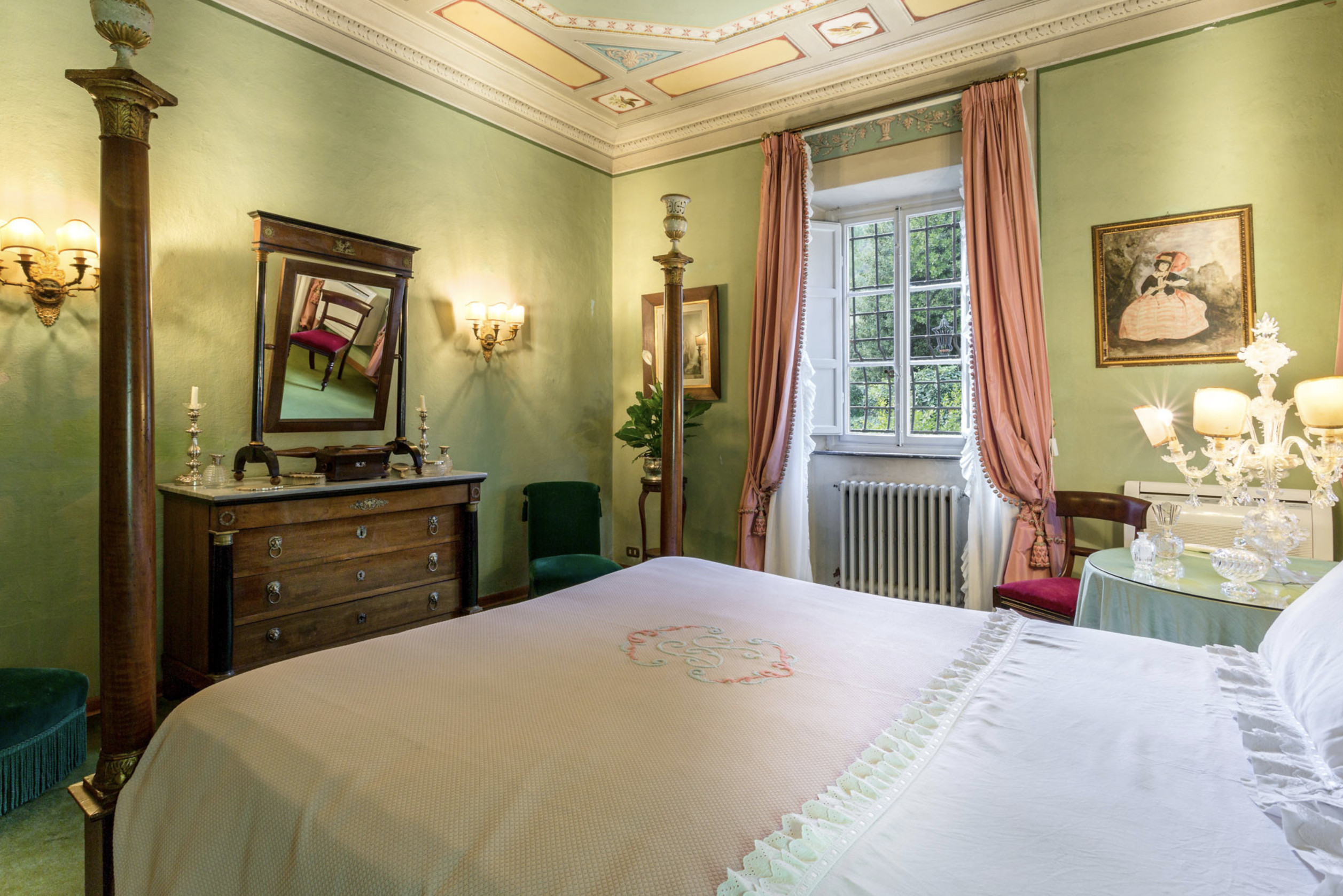 Villa has been superbly restructured, all the rooms have period furnishings, flanked by the modern of TV, satellite and internet. The internal beauty and elegance of the villa is harmoniously balanced with the external space which is made up of a stunning beautifully-kept park with a garden, ancient trees and a small patio. In the middle of the park is situated a swimming pool (14 x 6) well equipped with umbrella and sunbeds. Back to the villa there is table and chairs for meals “ al fresco” and a large sun umbrella.