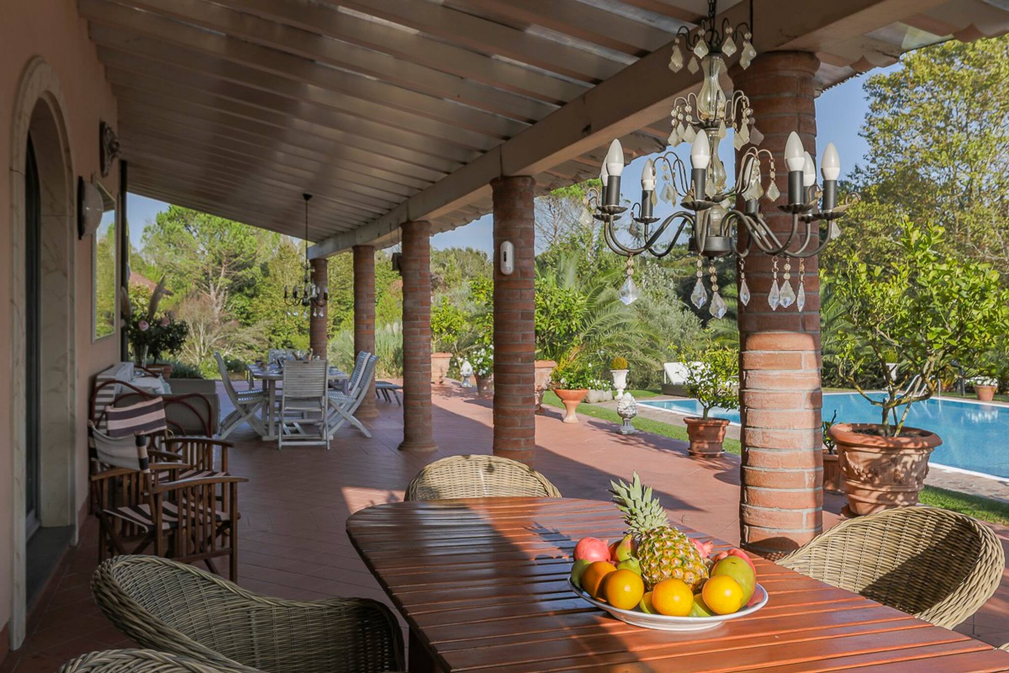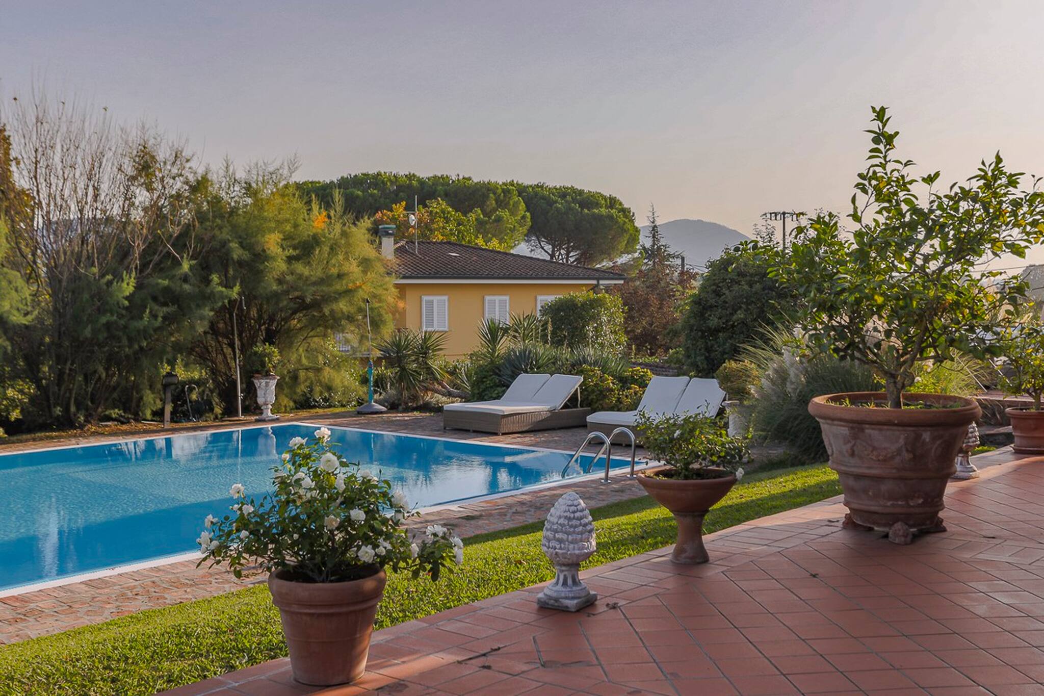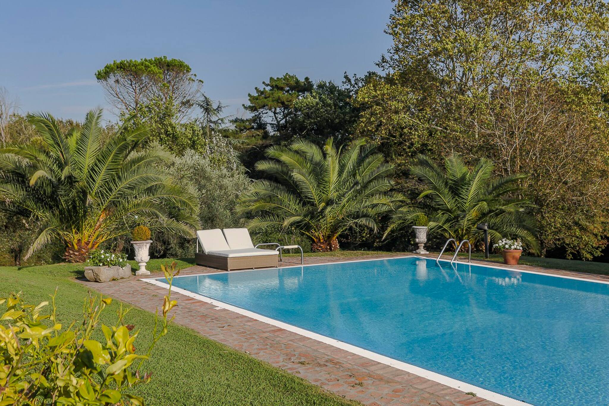 Villa has been superbly restructured, all the rooms have period furnishings, flanked by the modern of TV, satellite and internet. The internal beauty and elegance of the villa is harmoniously balanced with the external space which is made up of a stunning beautifully-kept park with a garden, ancient trees and a small patio. In the middle of the park is situated a swimming pool (14 x 6) well equipped with umbrella and sunbeds. Back to the villa there is table and chairs for meals “ al fresco” and a large sun umbrella.