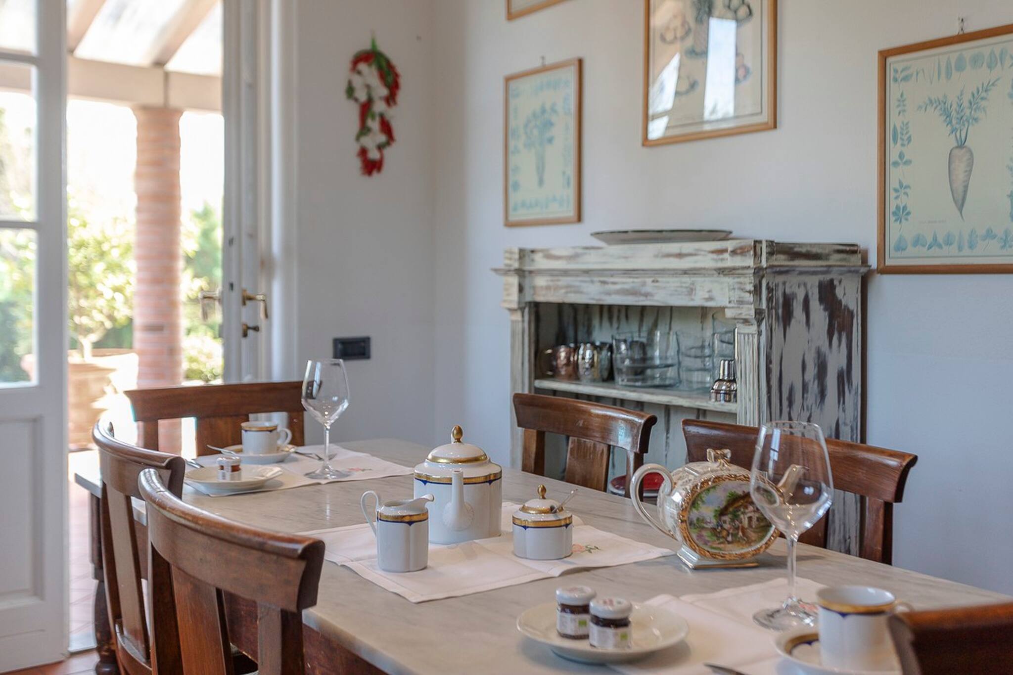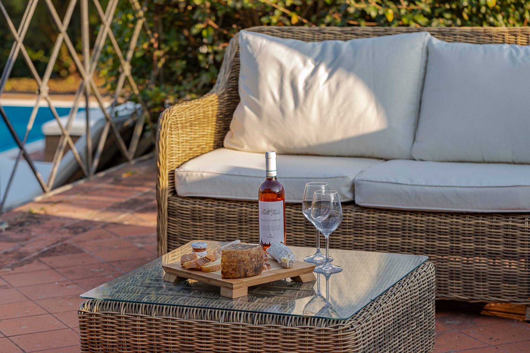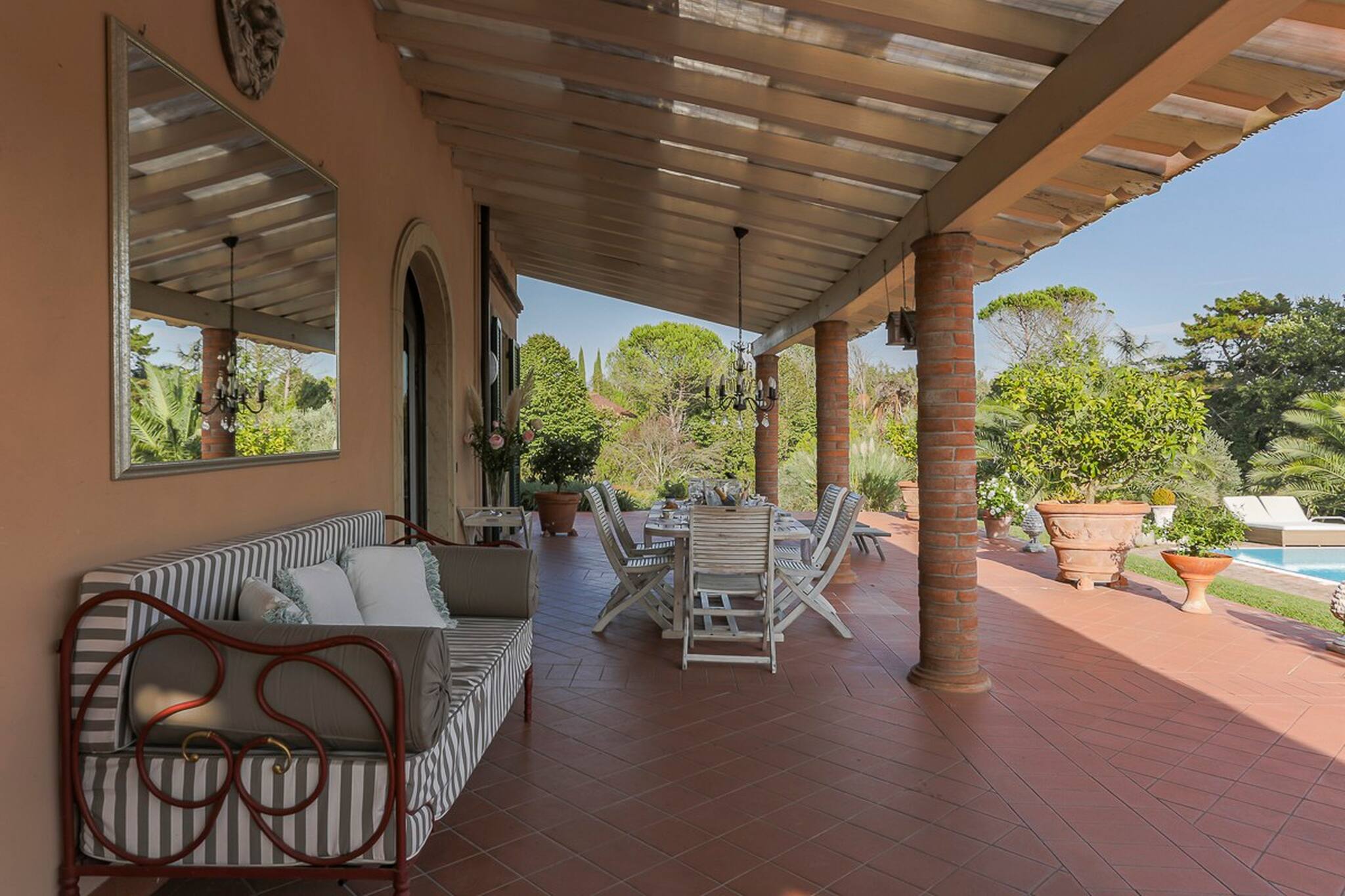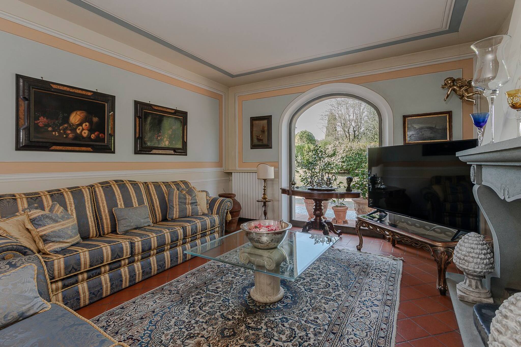 Villa has been superbly restructured, all the rooms have period furnishings, flanked by the modern of TV, satellite and internet. The internal beauty and elegance of the villa is harmoniously balanced with the external space which is made up of a stunning beautifully-kept park with a garden, ancient trees and a small patio. In the middle of the park is situated a swimming pool (14 x 6) well equipped with umbrella and sunbeds. Back to the villa there is table and chairs for meals “ al fresco” and a large sun umbrella.