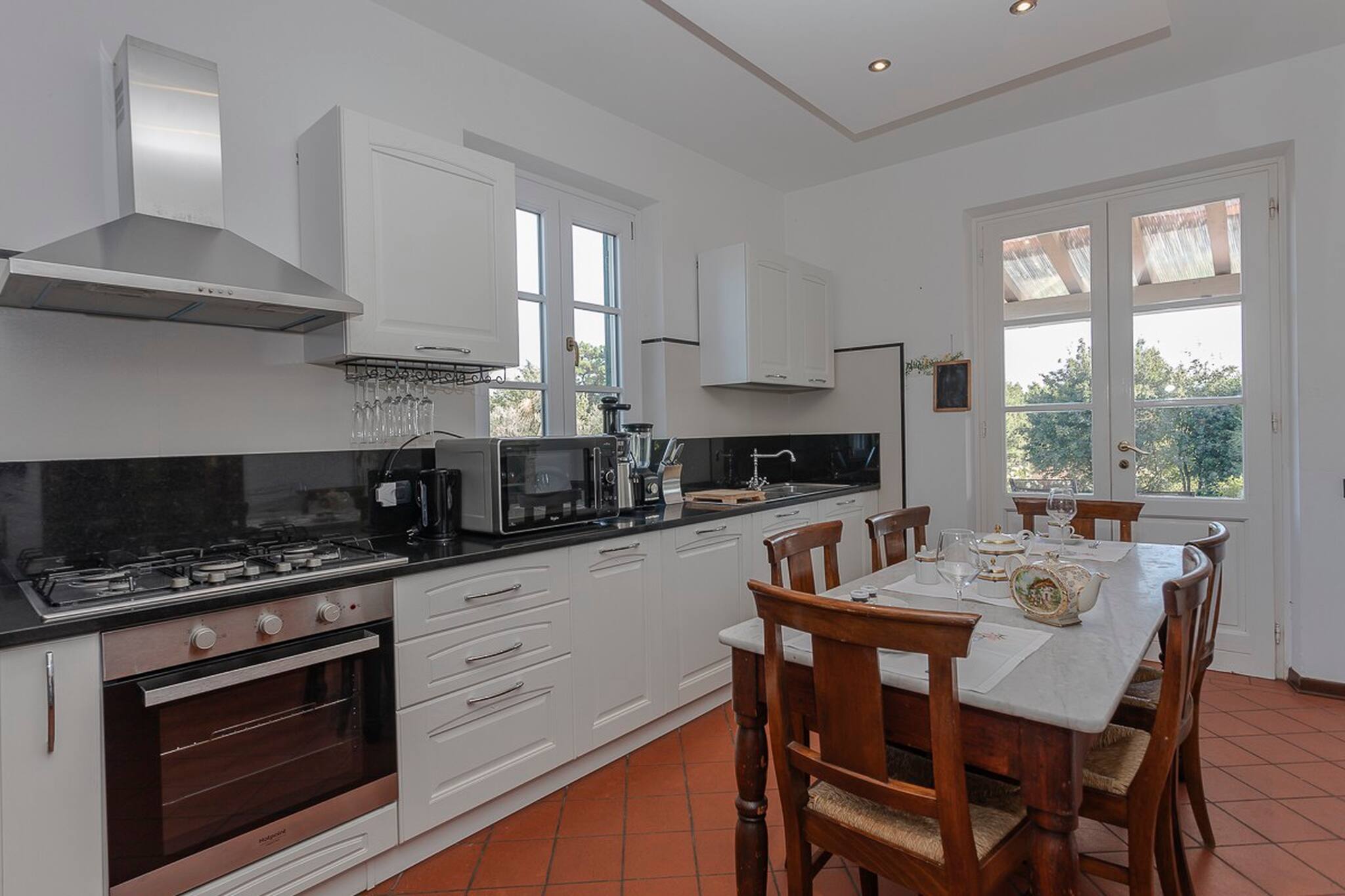 LOWER GROUND FLOOR: Large kitchen with direct access to the garden furnished to eat outdoor, breakfast room , laundry room.