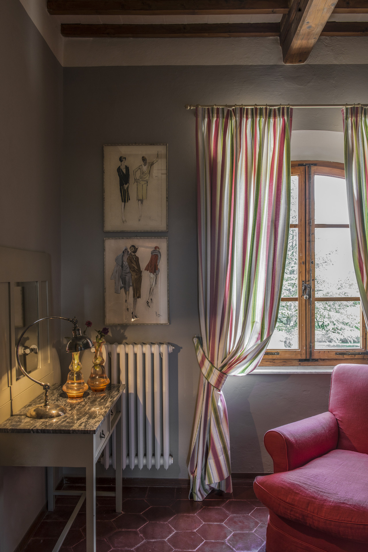 The red of the roof contrasts with the blue of the sky, filling the colors of Villa Piaggia’s lounges with tradition and relaxation. Large spaces invite conversation, reading, and entertainment.