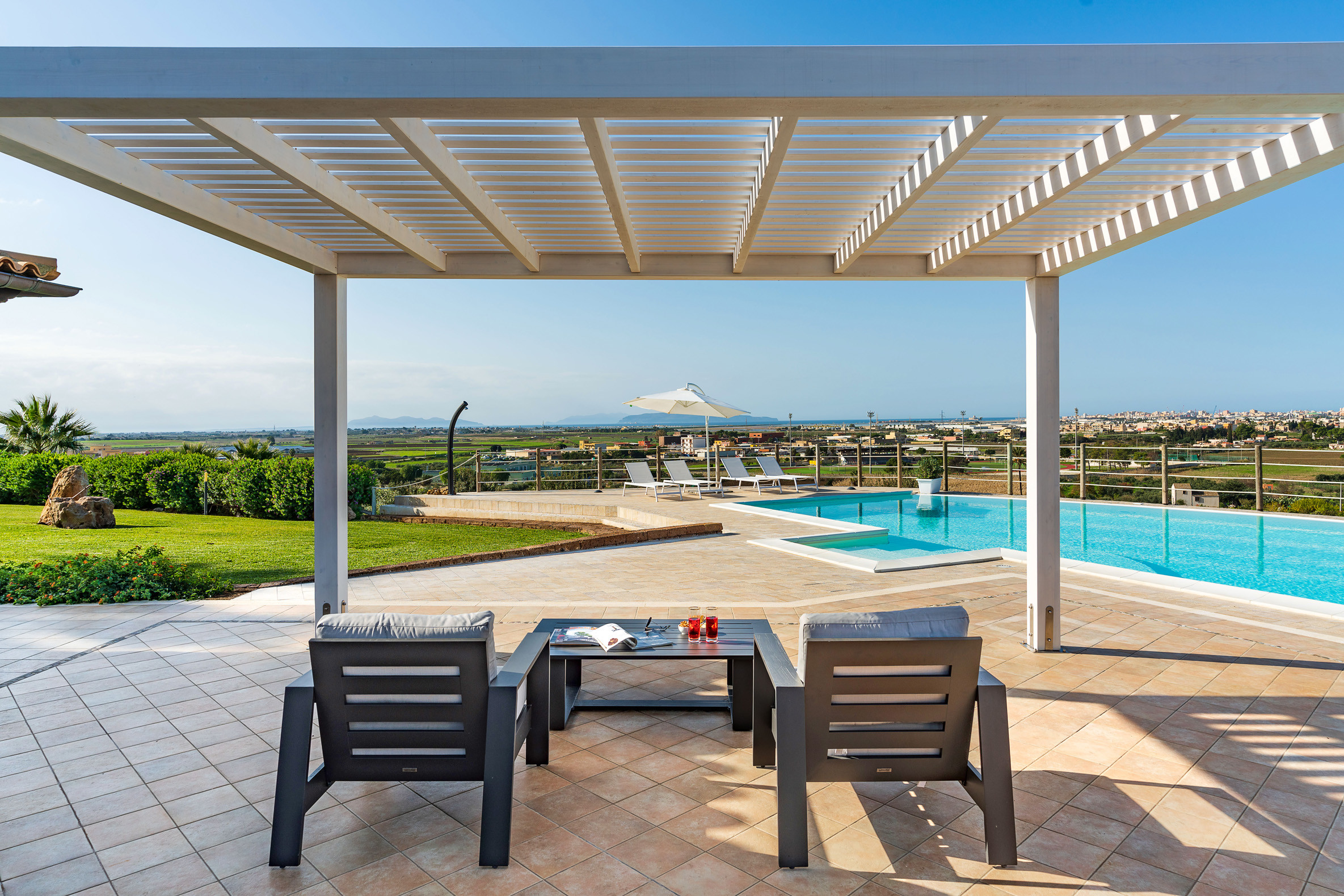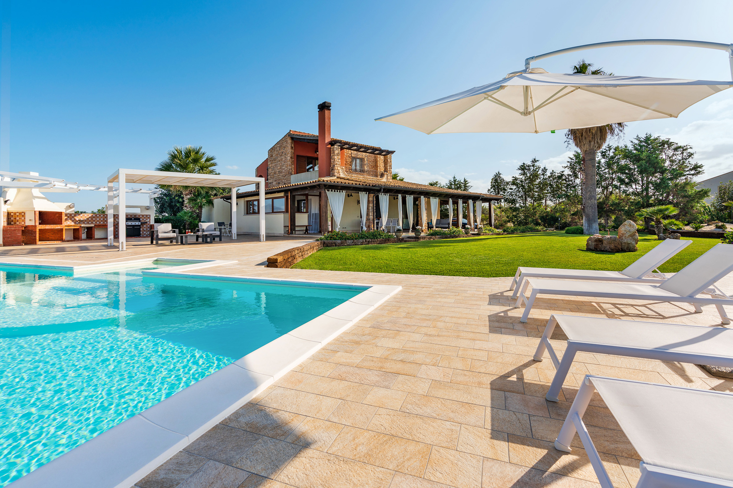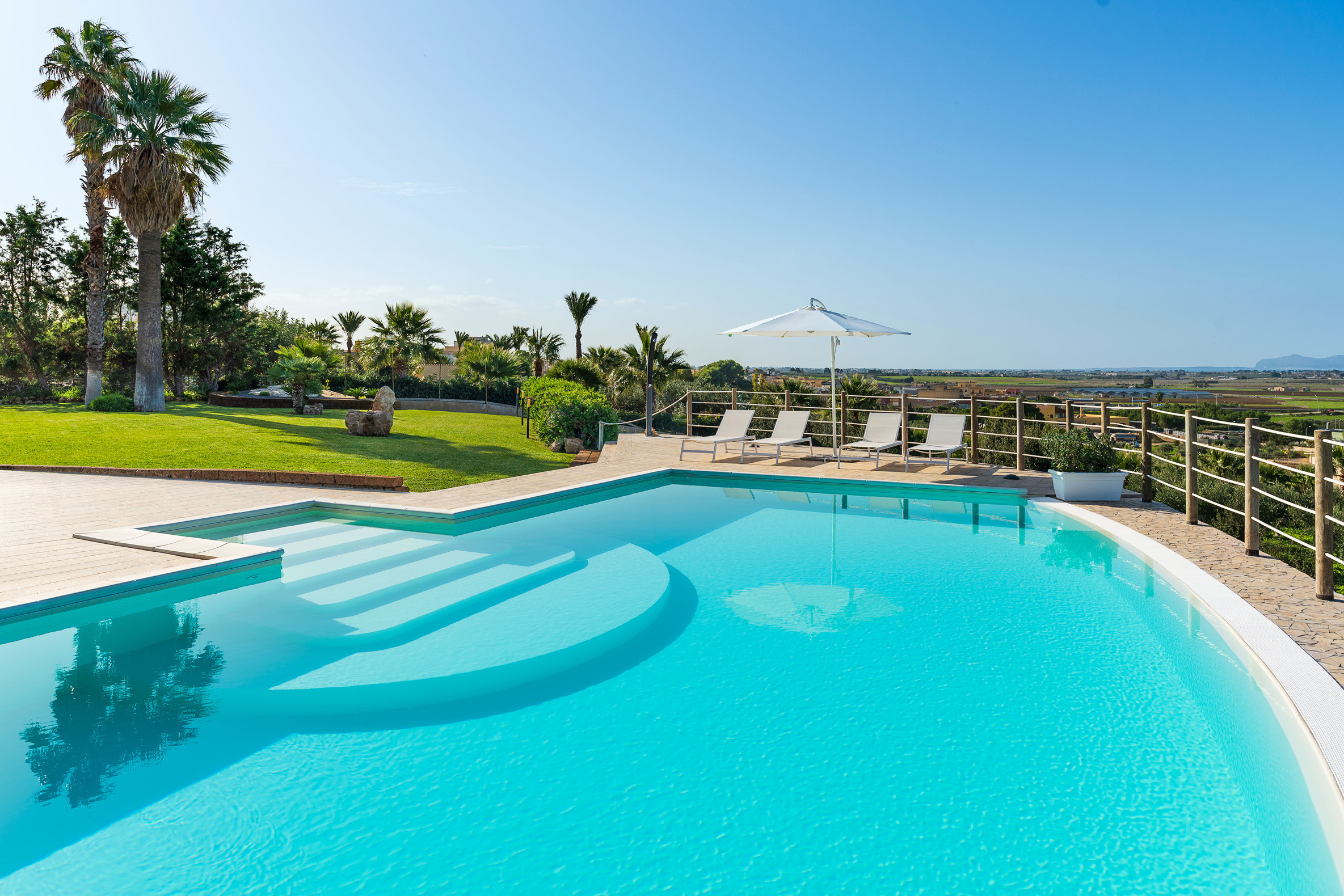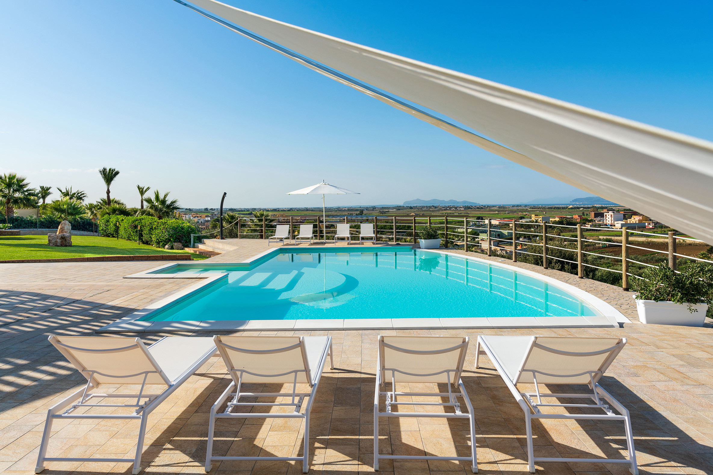 The villa in Paceco has 5 bedrooms and has capacity for 9 people. Villa Nespola is a beautiful, comfortable villa with private swimming pool situated in a splendid panoramic location near Trapani, ancient town at the extreme western point of Sicily. Surrounded by a well-tended garden, large equipped terraces with an amazing overflow pool, Villa Nespola enjoys enchanting views across Mount Erice, Trapani and Paceco’s saltapans to the Egadis. The property is on three levels and includes a bright living room with fireplace, a well-equipped kitchen, a large basement room with kitchen, fireplace, bar and billiard table, five cosy bedrooms and four bathrooms, one of which is outside. Furnished with taste, these inviting rooms come with internet Wi-Fi, air conditioning, heating (radiators), satellite TV, dishwasher, washing machine and dryer. Villa Nespola is the ideal location for families or groups of friends in search of a relaxing holiday but with the chance to explore the charms of western Sicily. The ancient salt pans and the Stagnone lagoon, Trapani, Erice, Segesta, San Vito Lo Capo, the Zingaro nature reserve and the Egadi islands (connections from Trapani and Marsala) are all within easy
