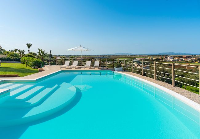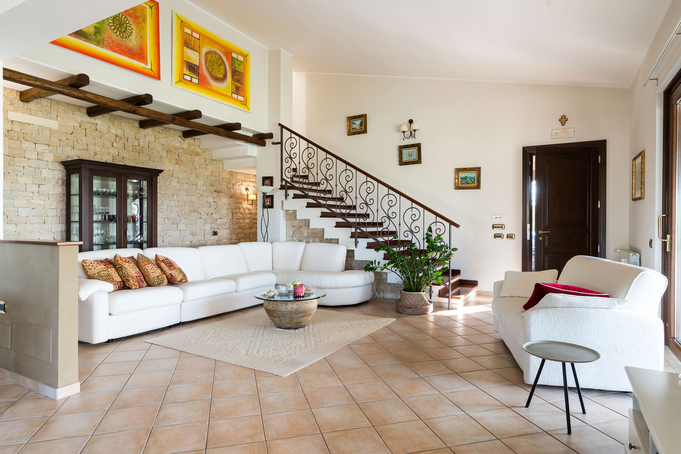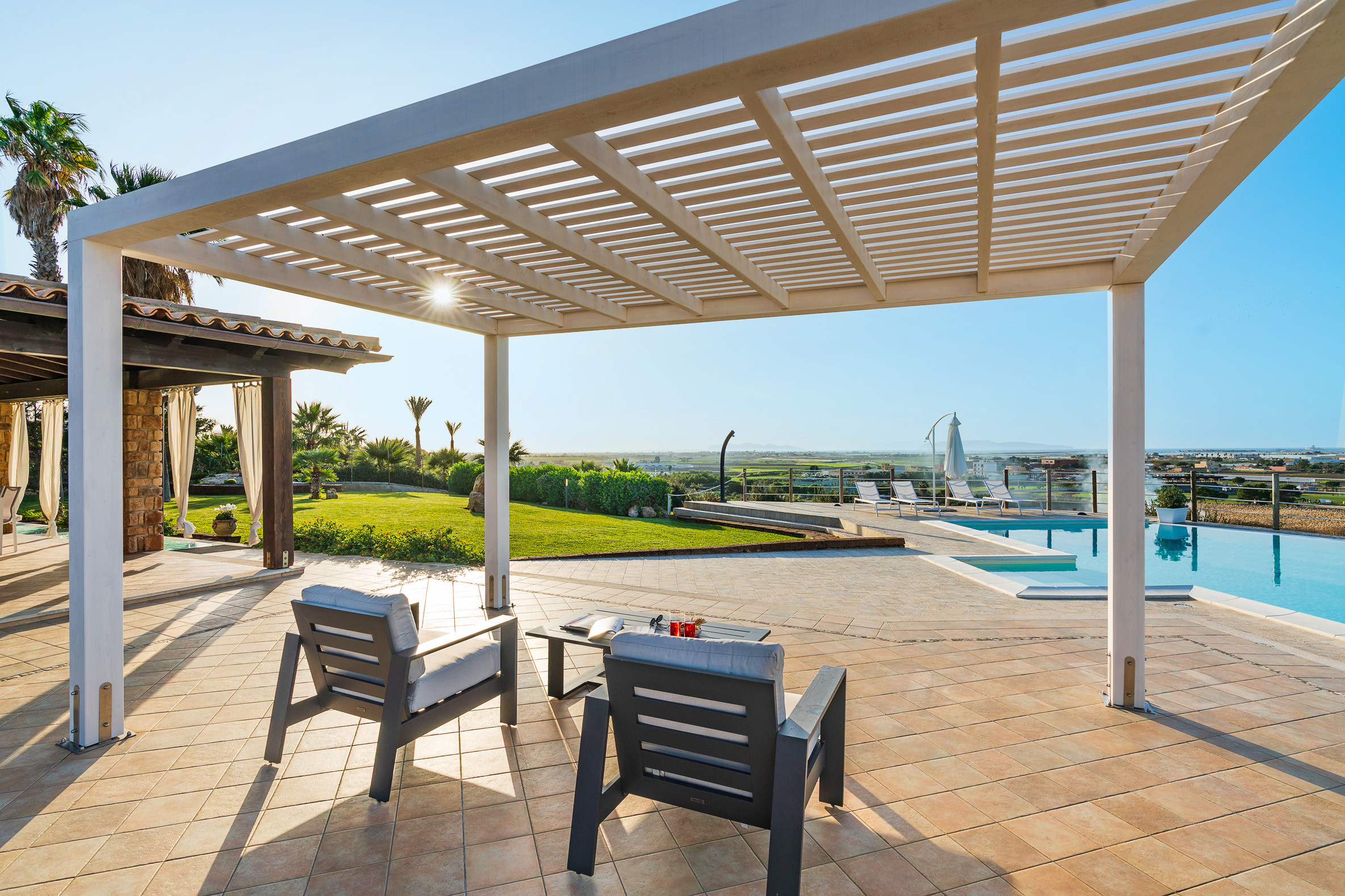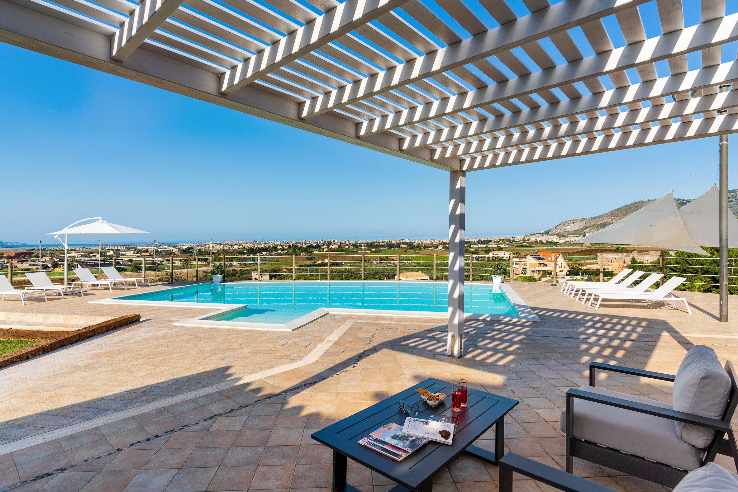 The villa in Paceco has 5 bedrooms and has capacity for 9 people. Villa Nespola is a beautiful, comfortable villa with private swimming pool situated in a splendid panoramic location near Trapani, ancient town at the extreme western point of Sicily. Surrounded by a well-tended garden, large equipped terraces with an amazing overflow pool, Villa Nespola enjoys enchanting views across Mount Erice, Trapani and Paceco’s saltapans to the Egadis. The property is on three levels and includes a bright living room with fireplace, a well-equipped kitchen, a large basement room with kitchen, fireplace, bar and billiard table, five cosy bedrooms and four bathrooms, one of which is outside. Furnished with taste, these inviting rooms come with internet Wi-Fi, air conditioning, heating (radiators), satellite TV, dishwasher, washing machine and dryer. Villa Nespola is the ideal location for families or groups of friends in search of a relaxing holiday but with the chance to explore the charms of western Sicily. The ancient salt pans and the Stagnone lagoon, Trapani, Erice, Segesta, San Vito Lo Capo, the Zingaro nature reserve and the Egadi islands (connections from Trapani and Marsala) are all within easy