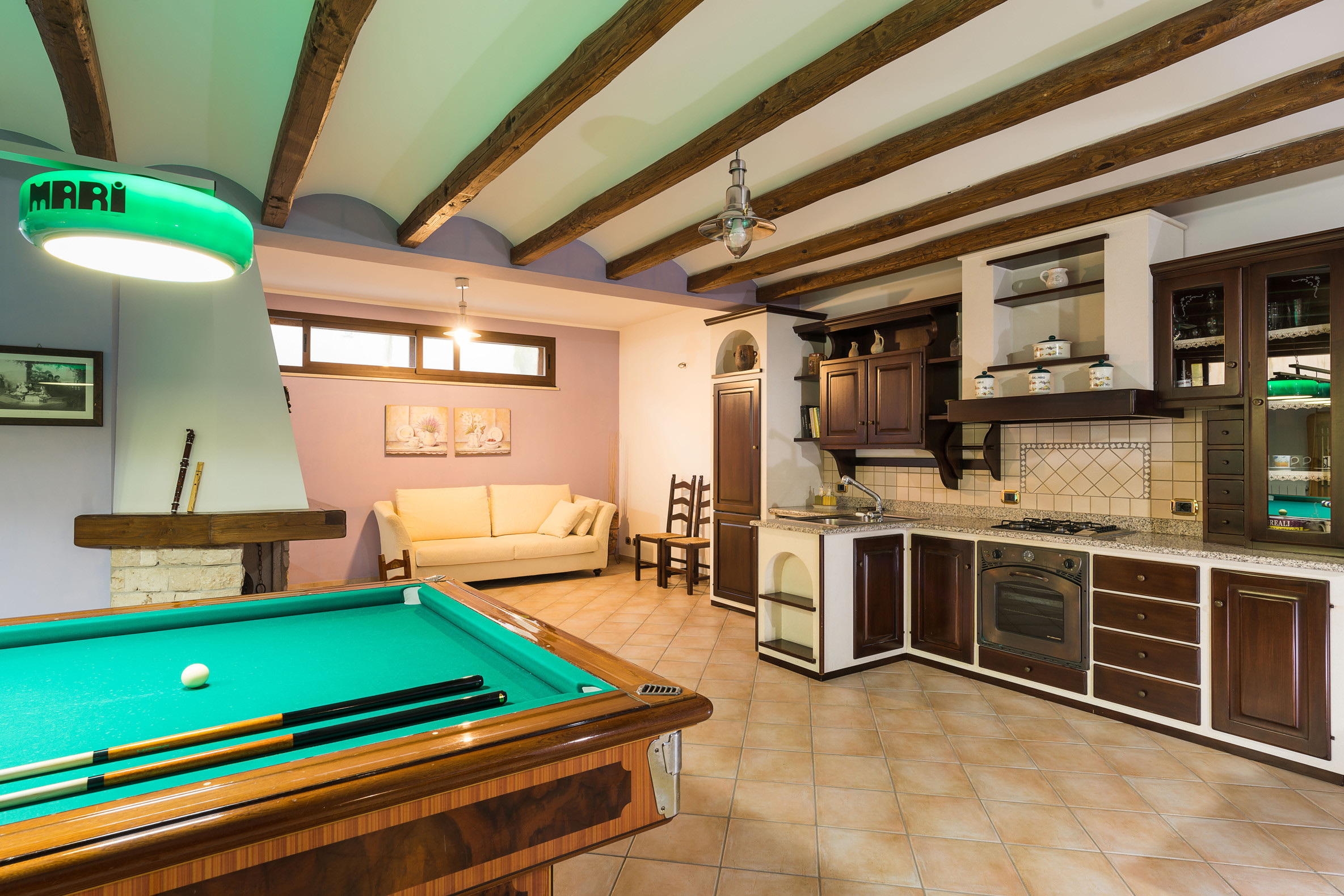 Floor: basement room with kitchen, bar, fireplace and billiard table, 1 double bedroom, 1 bathroom with shower.