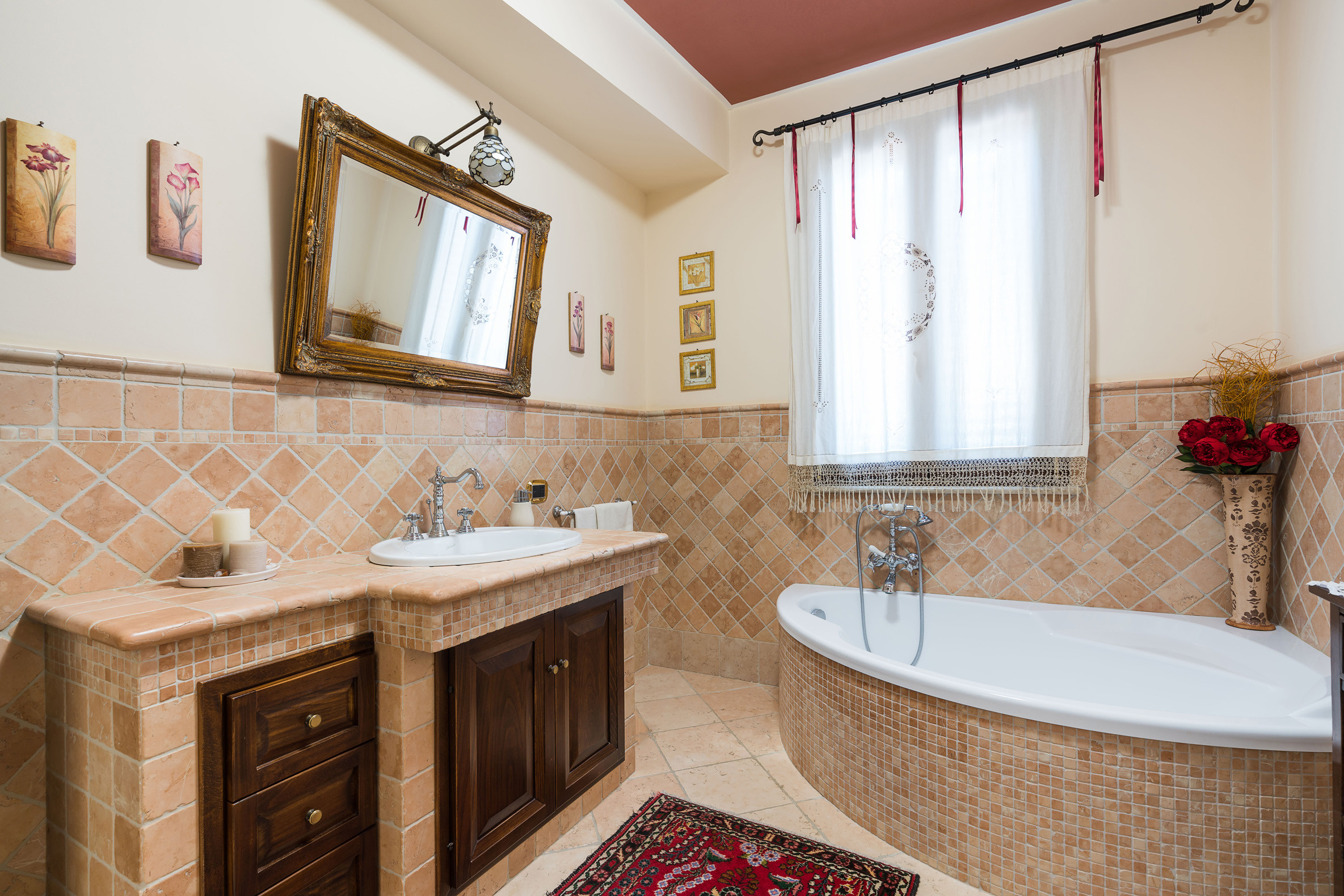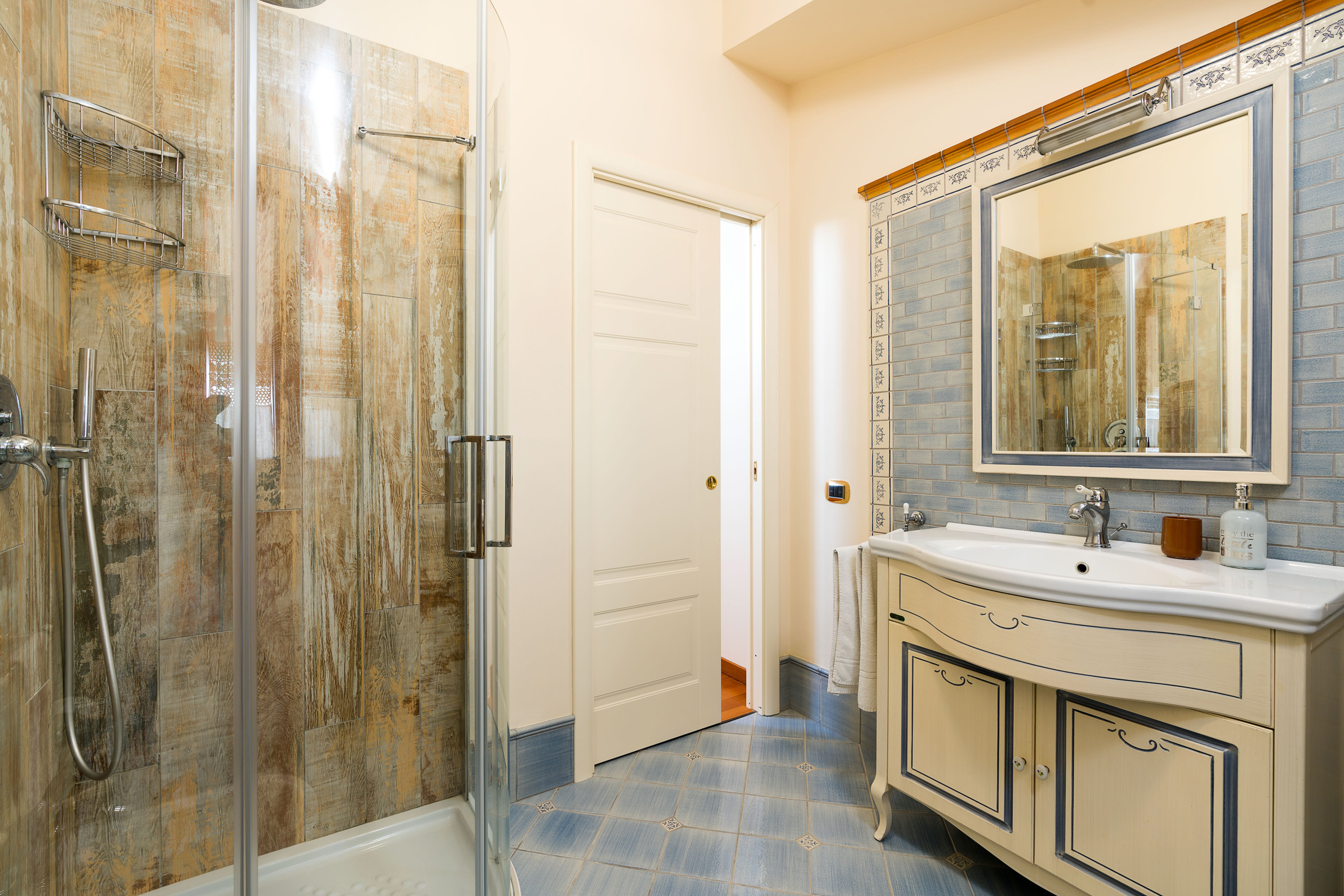 bathroom with tub. First Floor: 1 double bedroom (king size cm180x200), 1 twin bedroom, 1 bathroom with shower. Lower