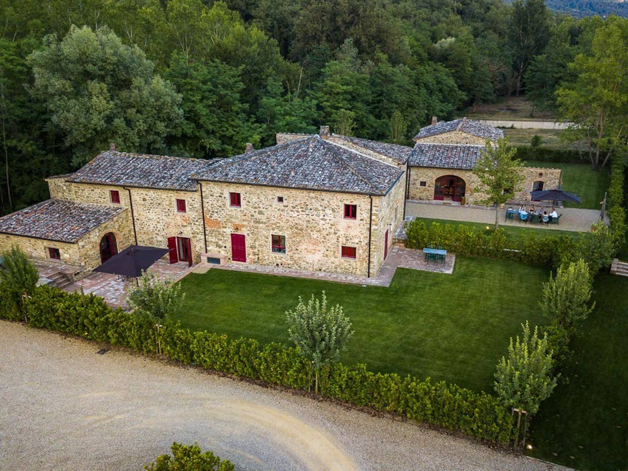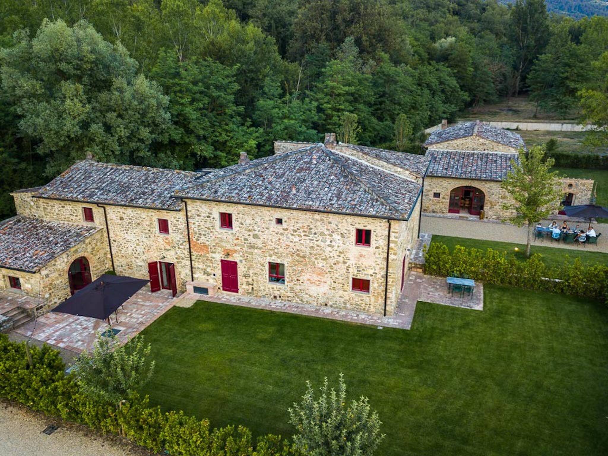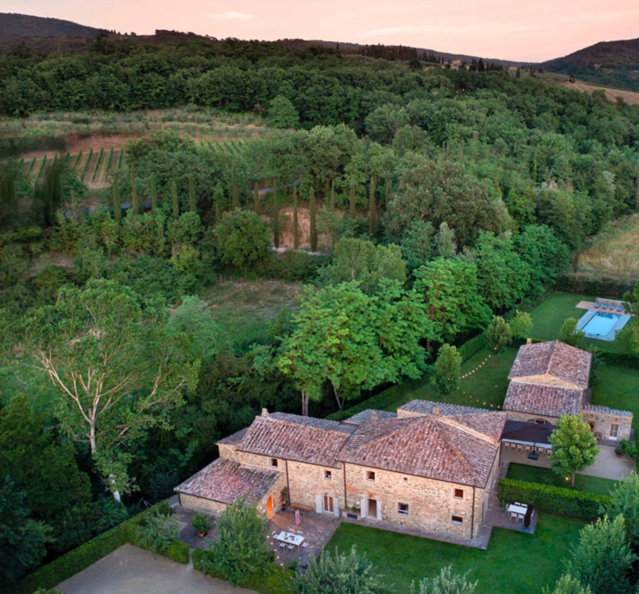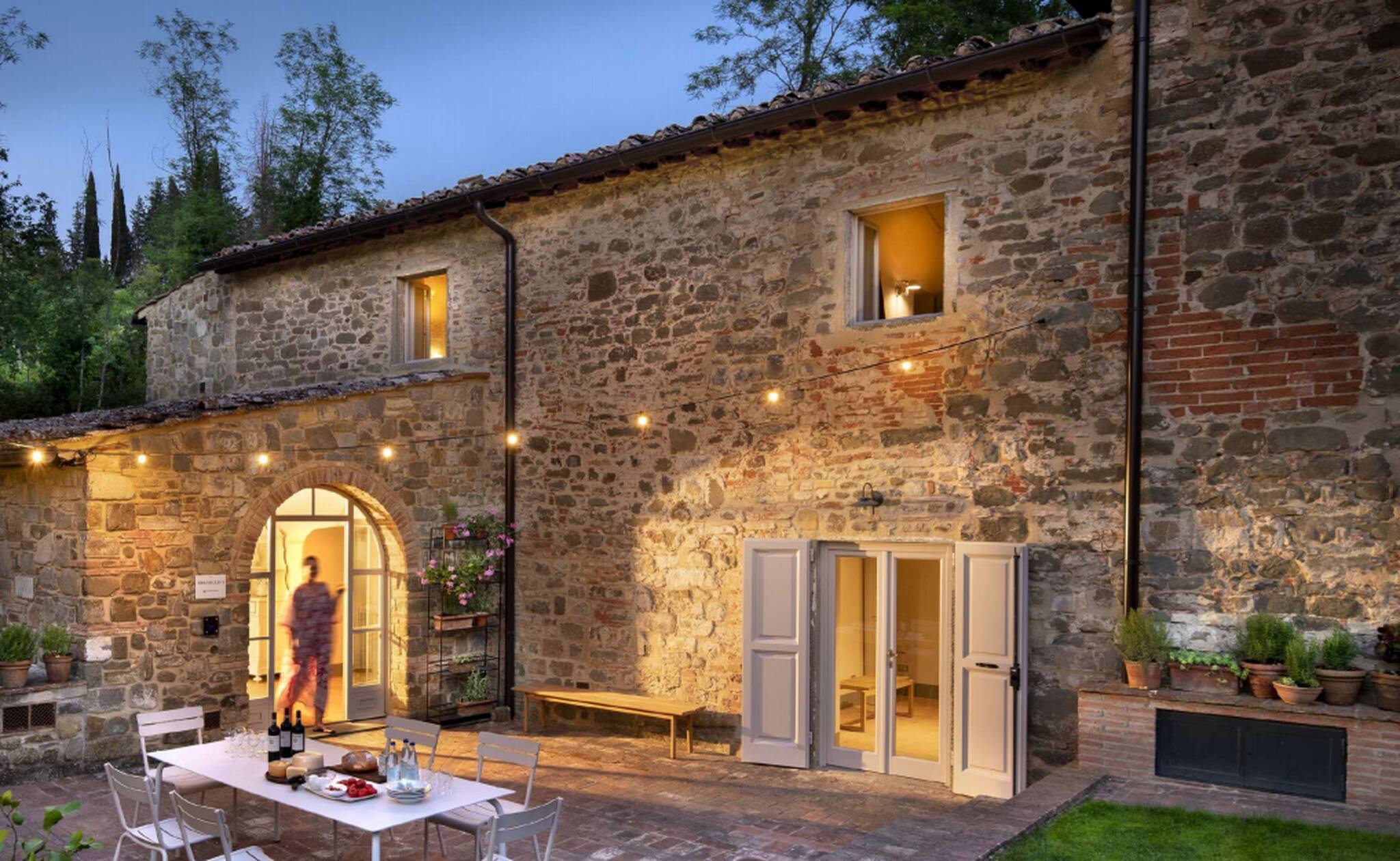 In the heart of the estate, on the banks of the peaceful Greve River, lies Podere dell'Orto, a homestead immersed in nature. 9 bedrooms and 9 Bathrooms. Garden and pool. 18 people.