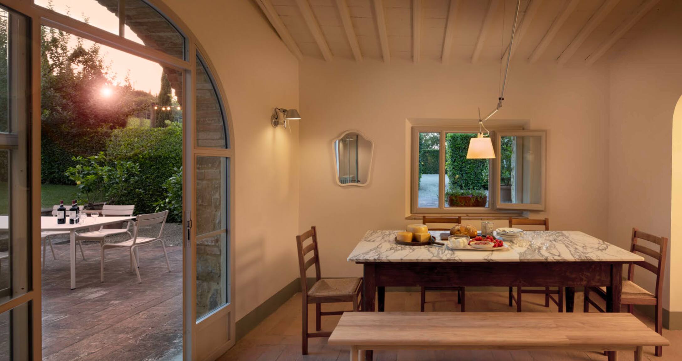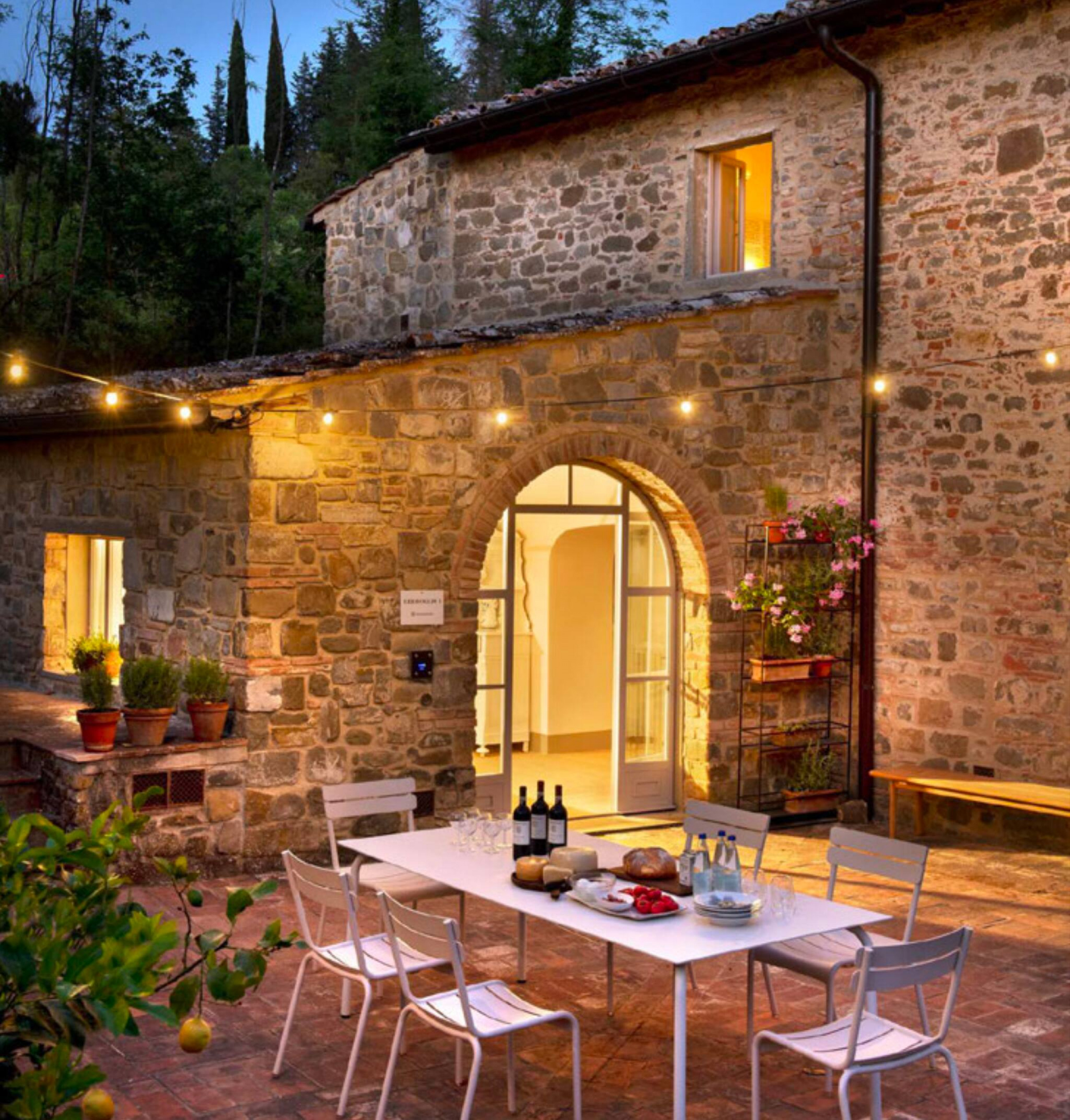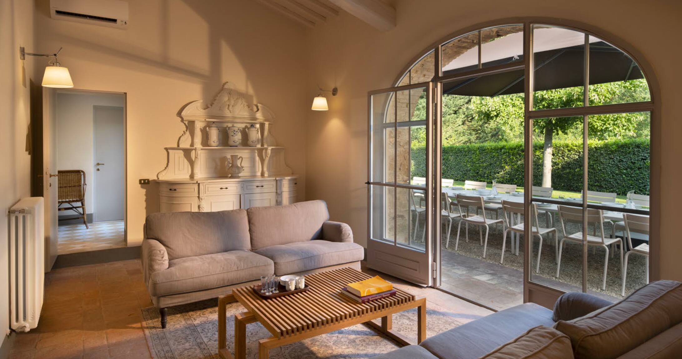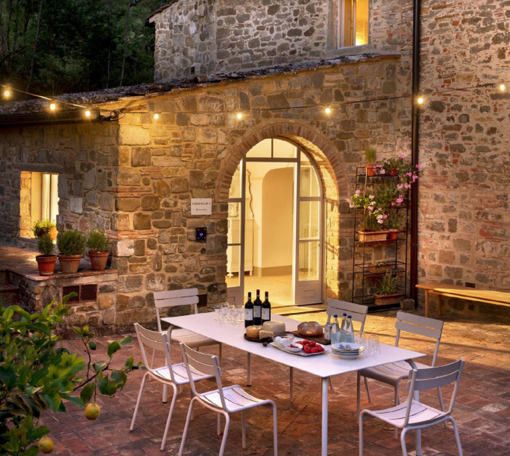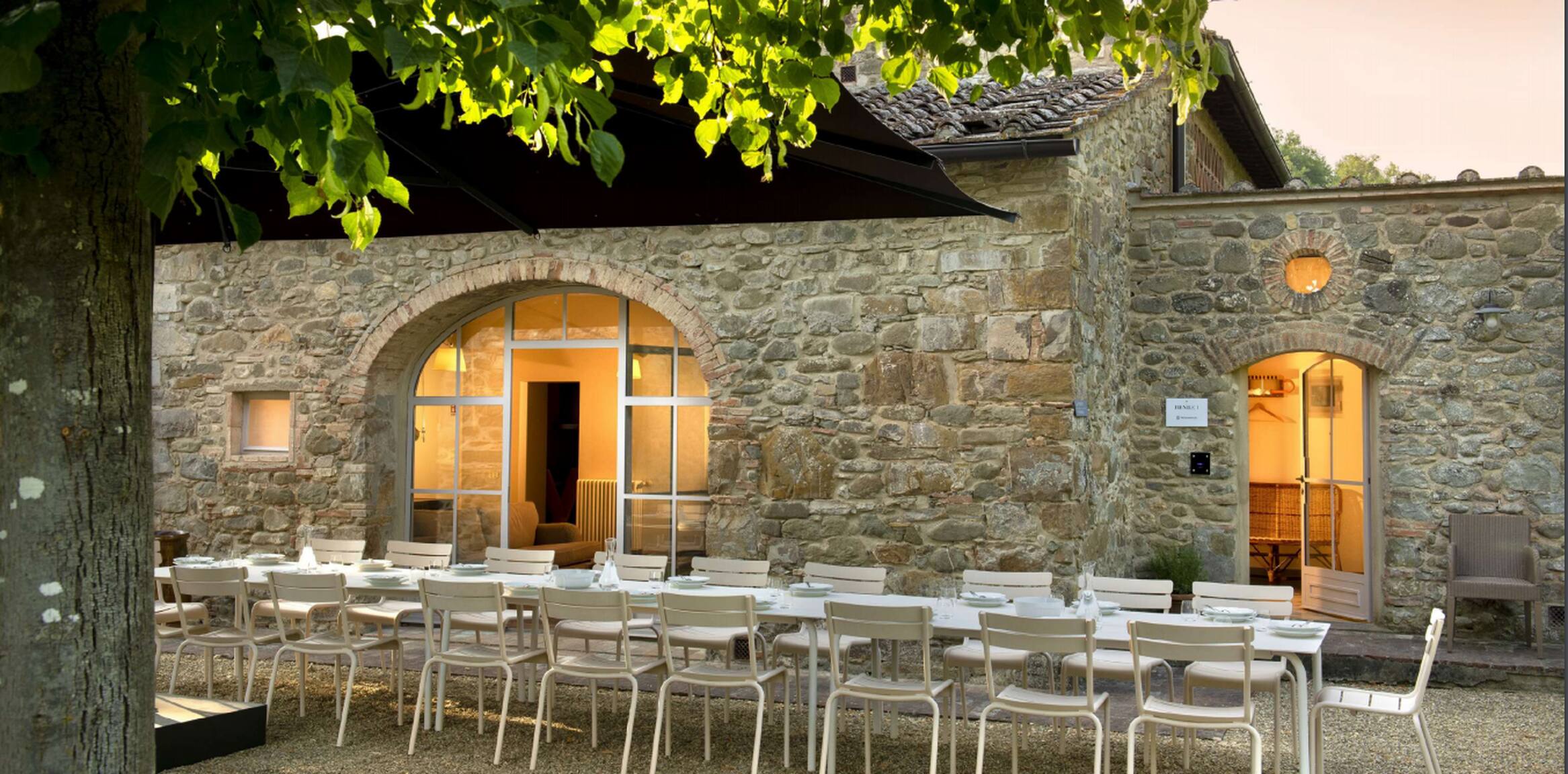 In the heart of the estate, on the banks of the peaceful Greve River, lies Podere dell'Orto, a homestead immersed in nature. Surrounded by a lush, natural garden, the little stone hamlet is ideal for families and groups of friends wanting the tranquillity of the countryside, and complete privacy. It is available for weekly rental. Podere dell'Orto, an old farm surrounded by fruit trees and once renowned for its vegetables. Settled on the green Montagliari plain, on a route enjoyed by hiking enthusiasts, Podere dell'Orto has been faithfully restored, retaining its original structure. The homestead is a picture of cheerfulness and tranquillity on the banks of the river, perfect for anyone who enjoys wide open spaces in nature