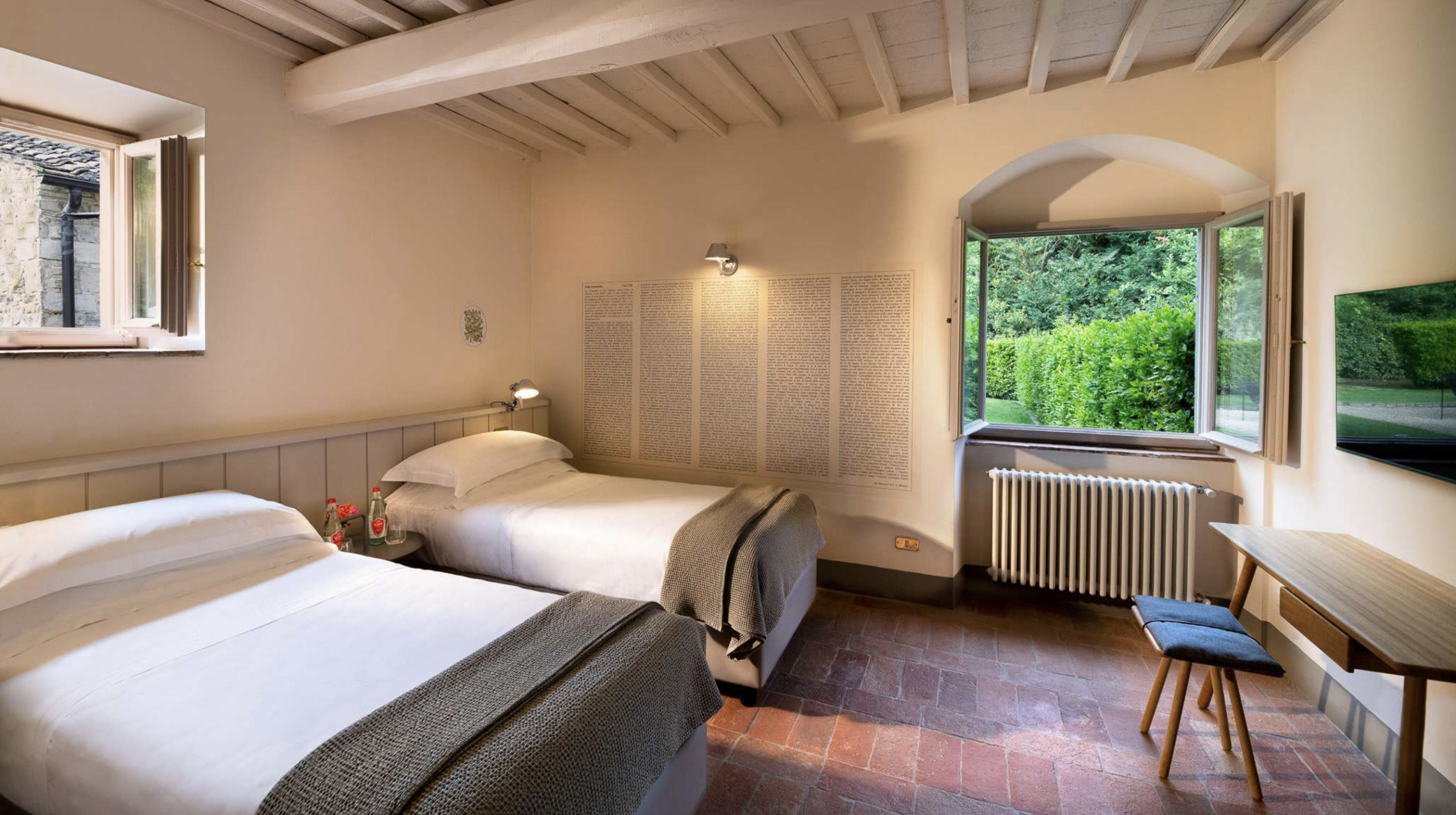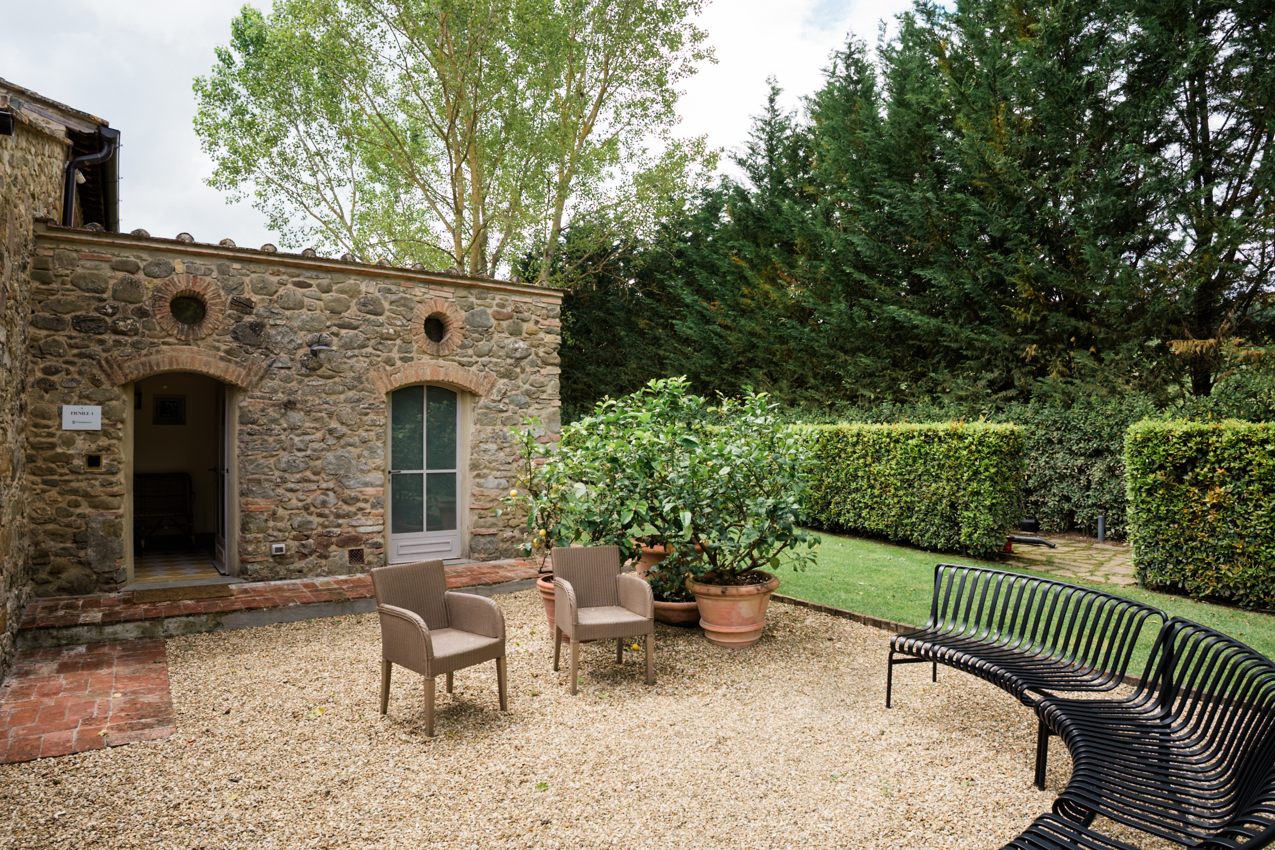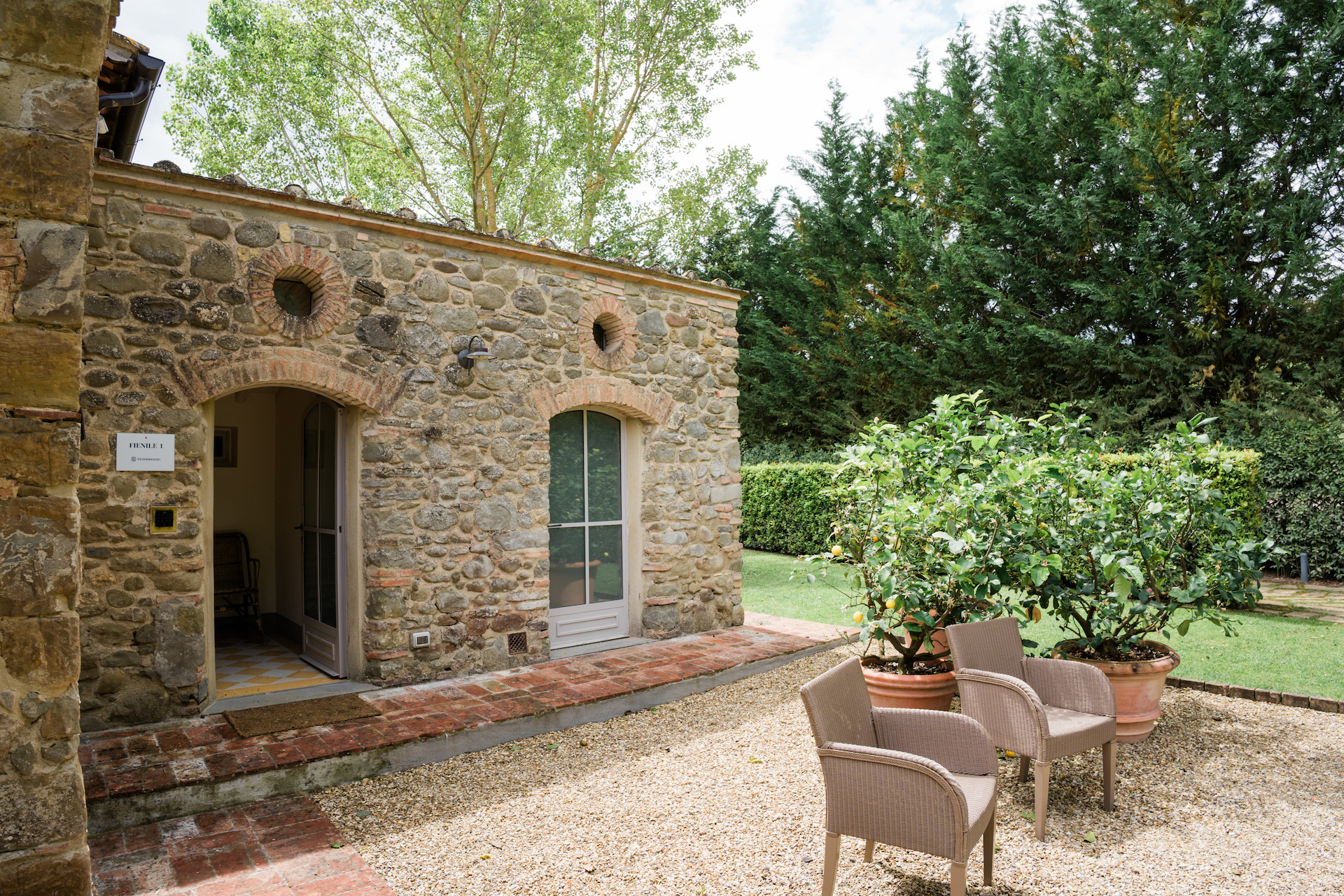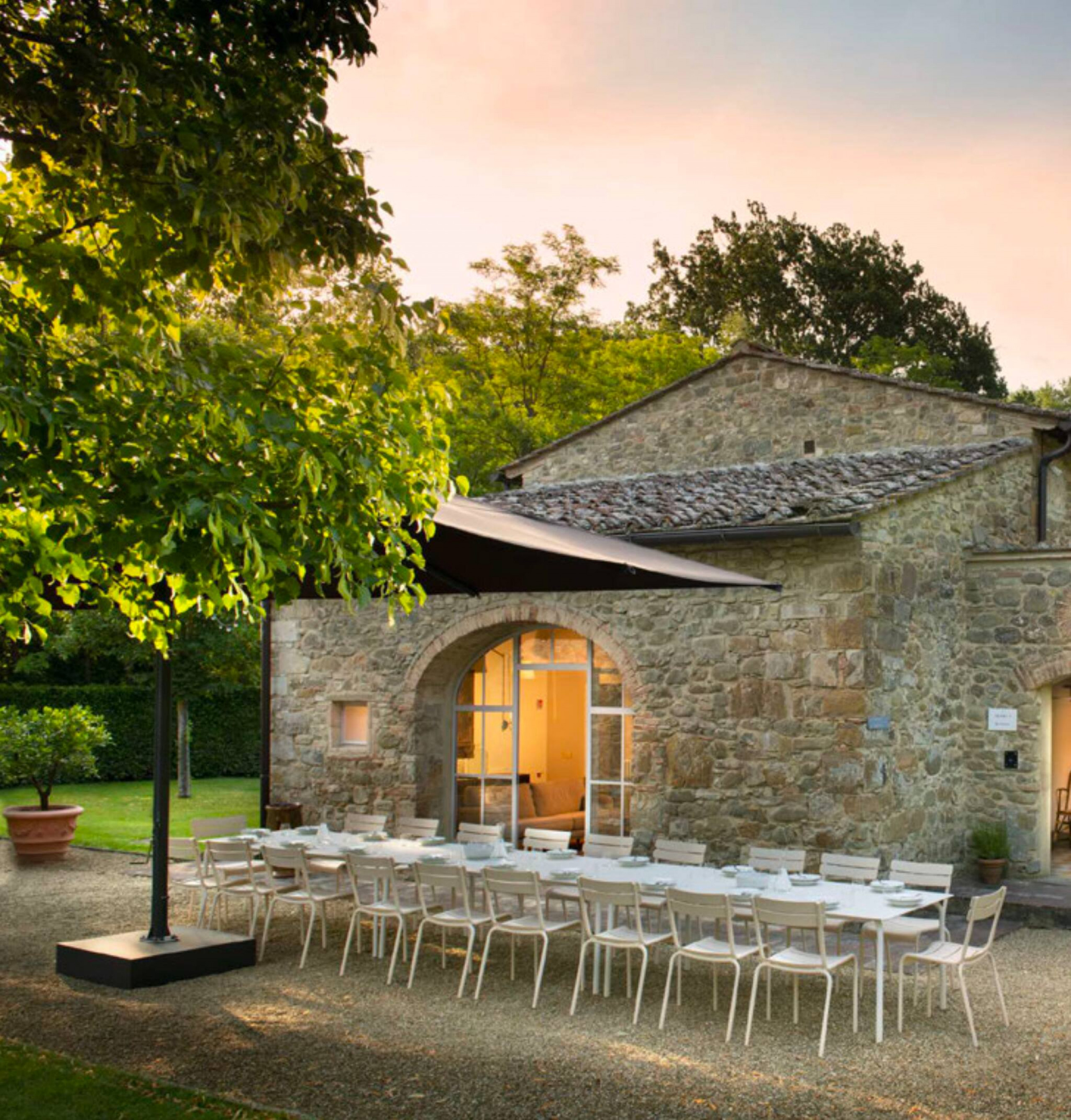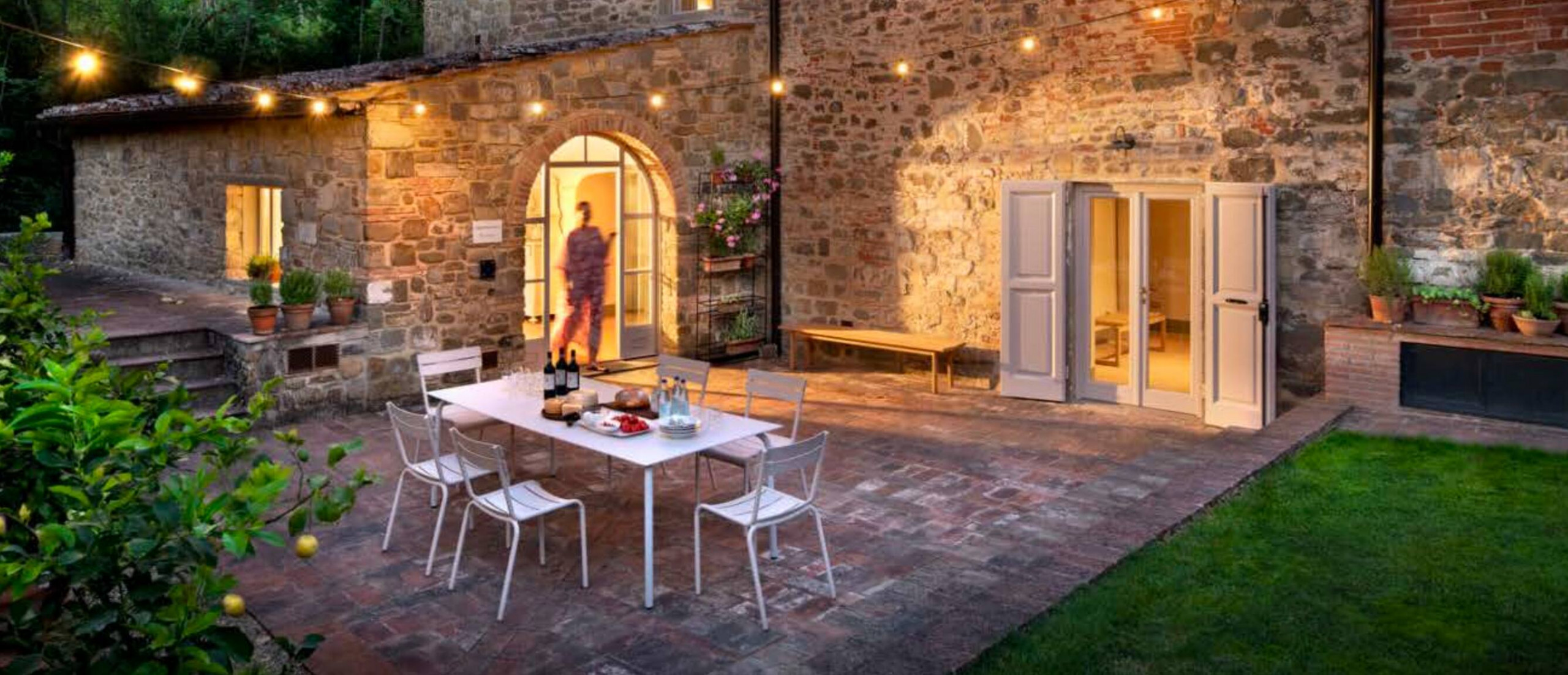 In the heart of the estate, on the banks of the peaceful Greve River, lies Podere dell'Orto, a homestead immersed in nature. Surrounded by a lush, natural garden, the little stone hamlet is ideal for families and groups of friends wanting the tranquillity of the countryside, and complete privacy. It is available for weekly rental. Podere dell'Orto, an old farm surrounded by fruit trees and once renowned for its vegetables. Settled on the green Montagliari plain, on a route enjoyed by hiking enthusiasts, Podere dell'Orto has been faithfully restored, retaining its original structure. The homestead is a picture of cheerfulness and tranquillity on the banks of the river, perfect for anyone who enjoys wide open spaces in nature