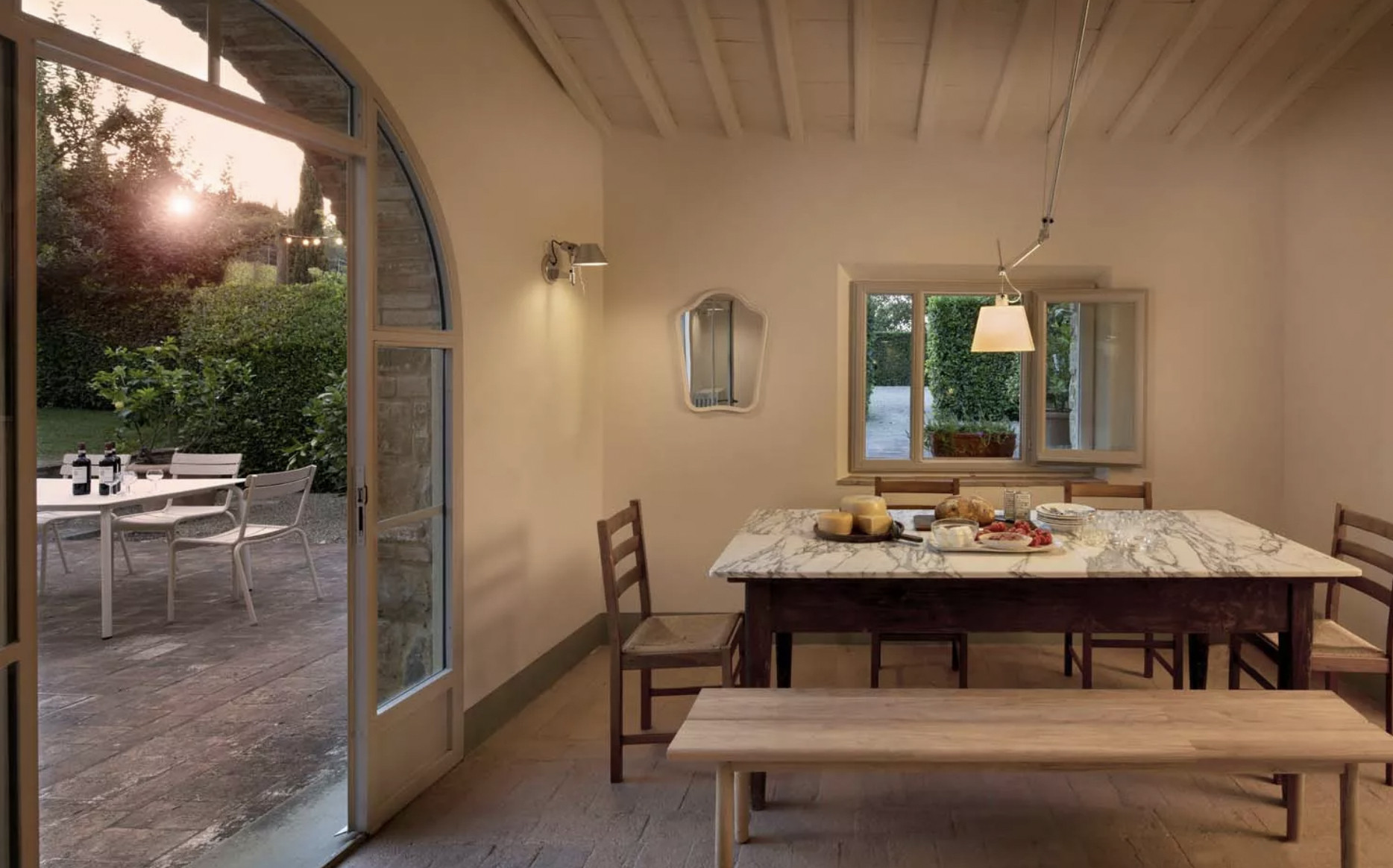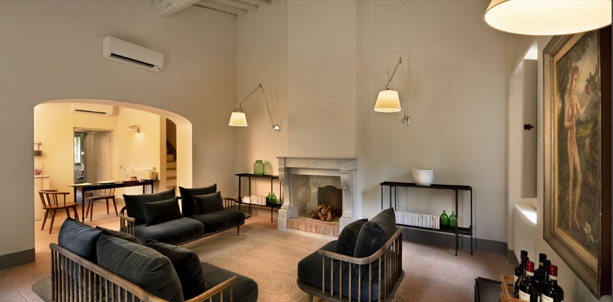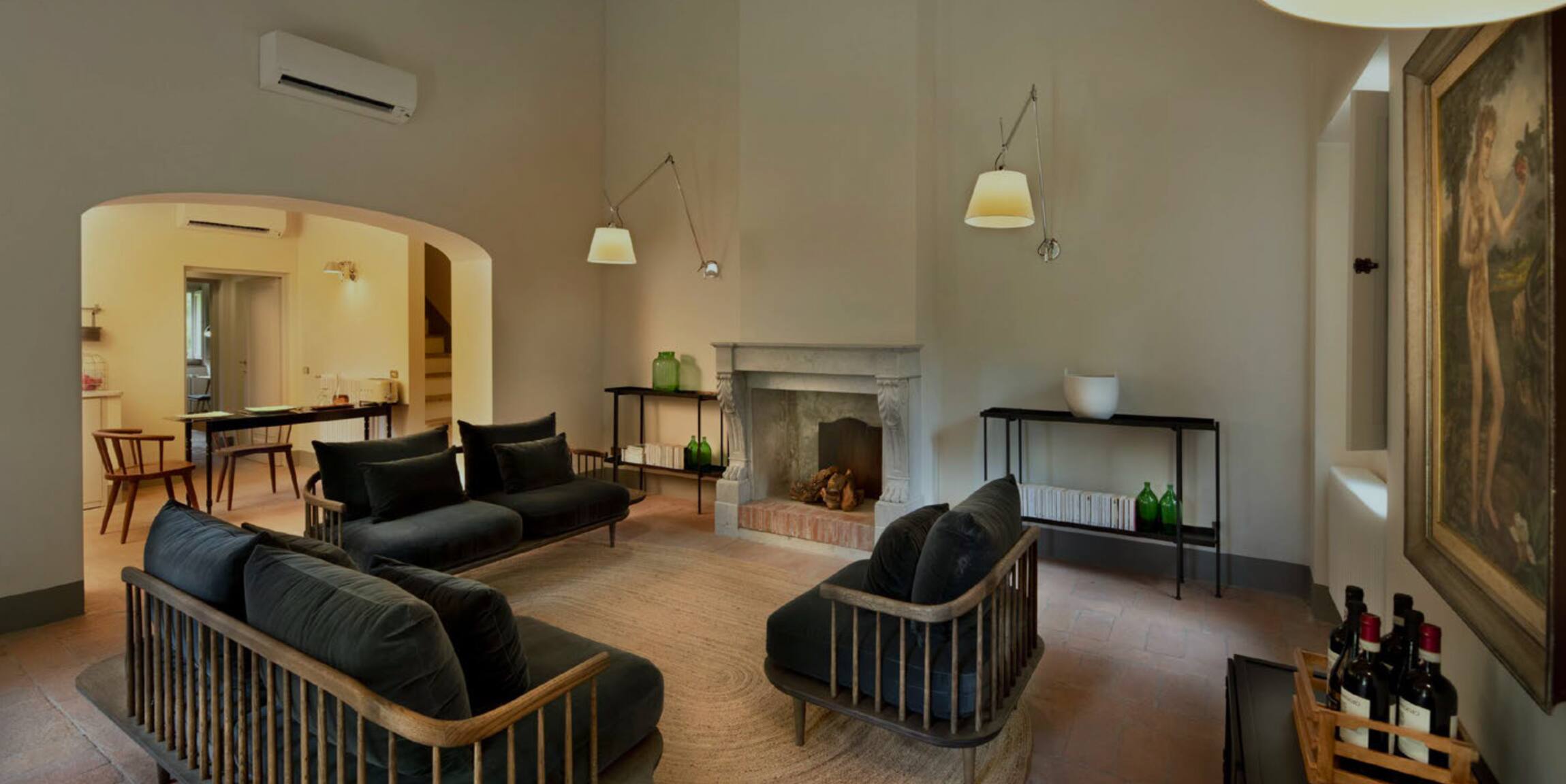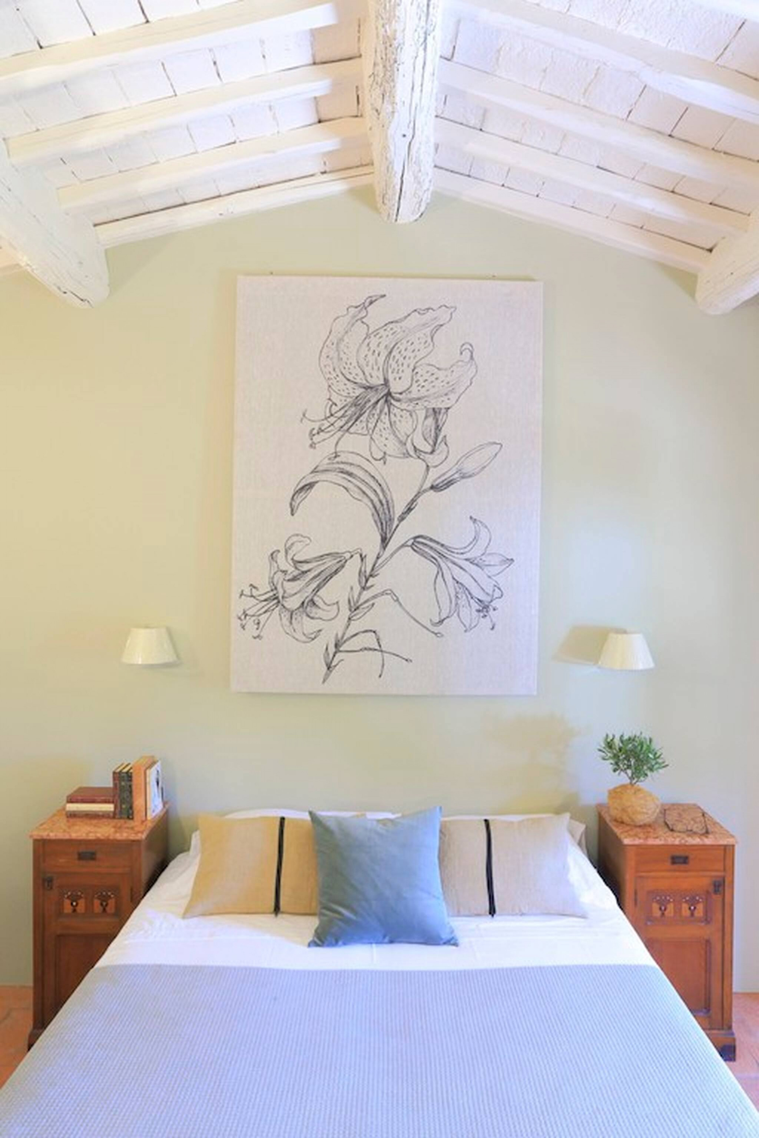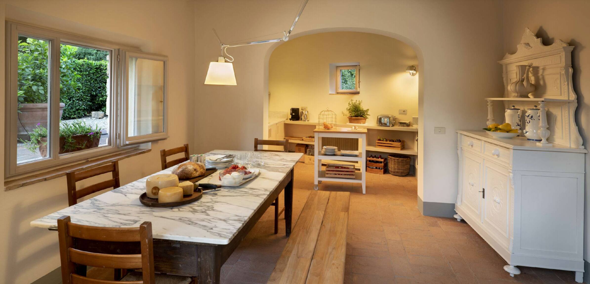 Erbavoglio was the sharecroppers' house where they would meet up after a day working in the fields. The farmhouse, surrounded by a large garden, is today just as homely and welcoming as ever. The entrance hall leads into a spacious, bright kitchen which opens onto the outdoor veranda and a lovely living room with its stone fireplace.