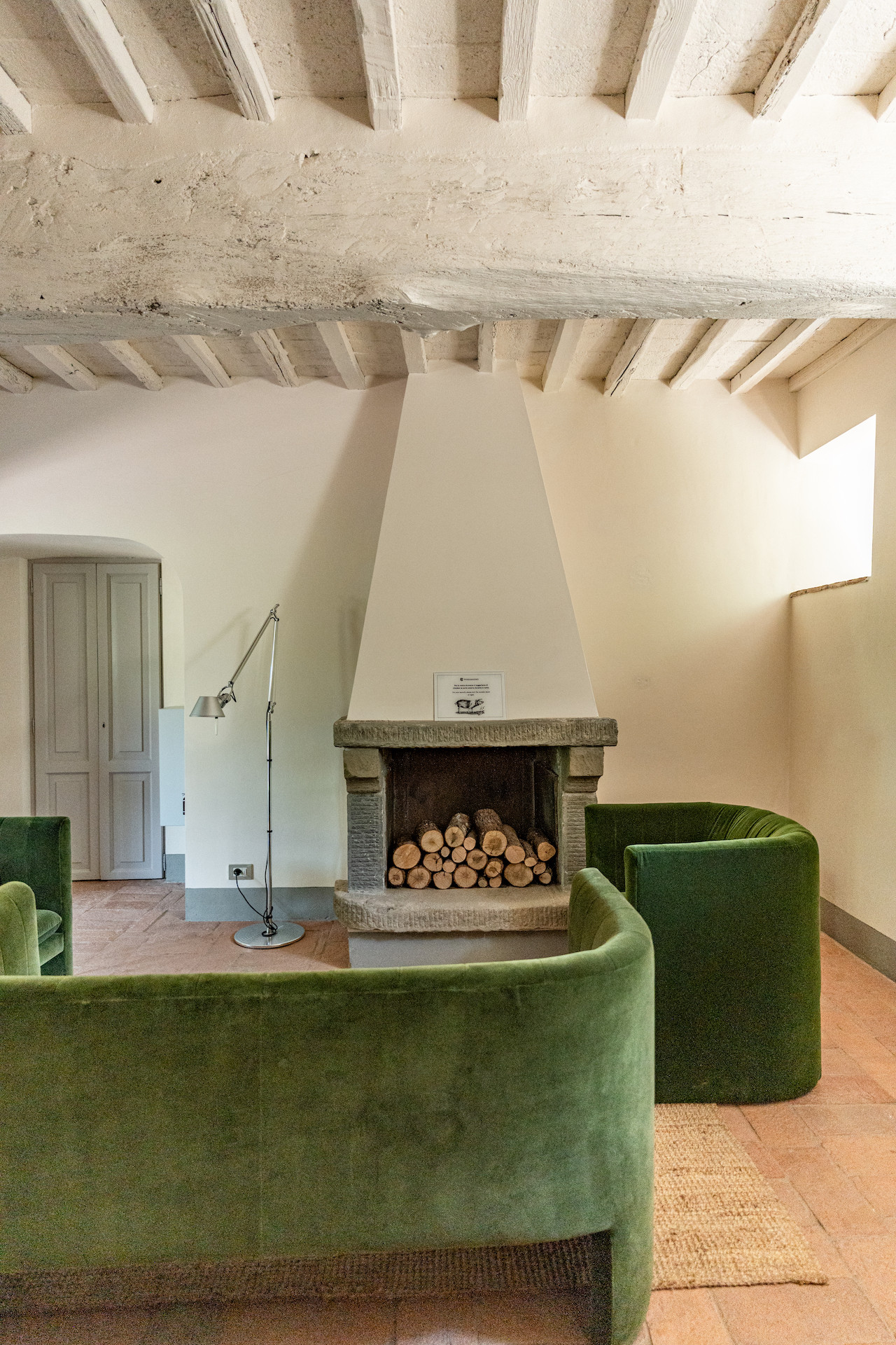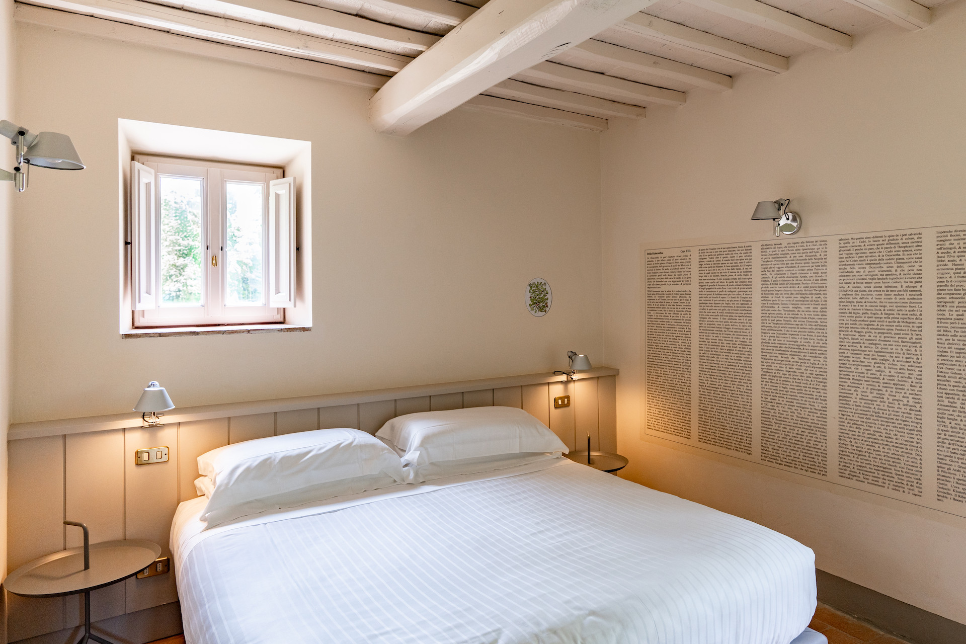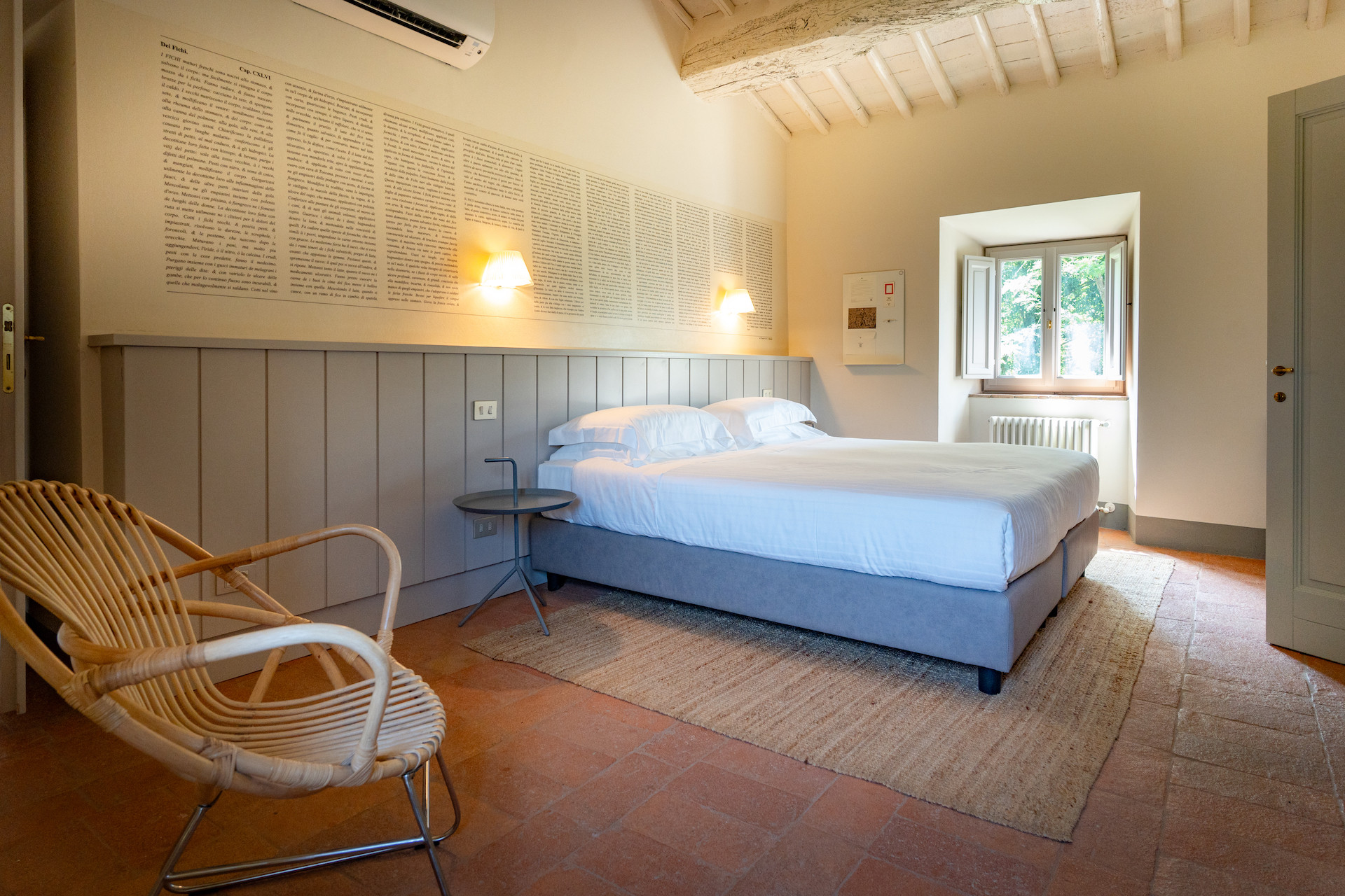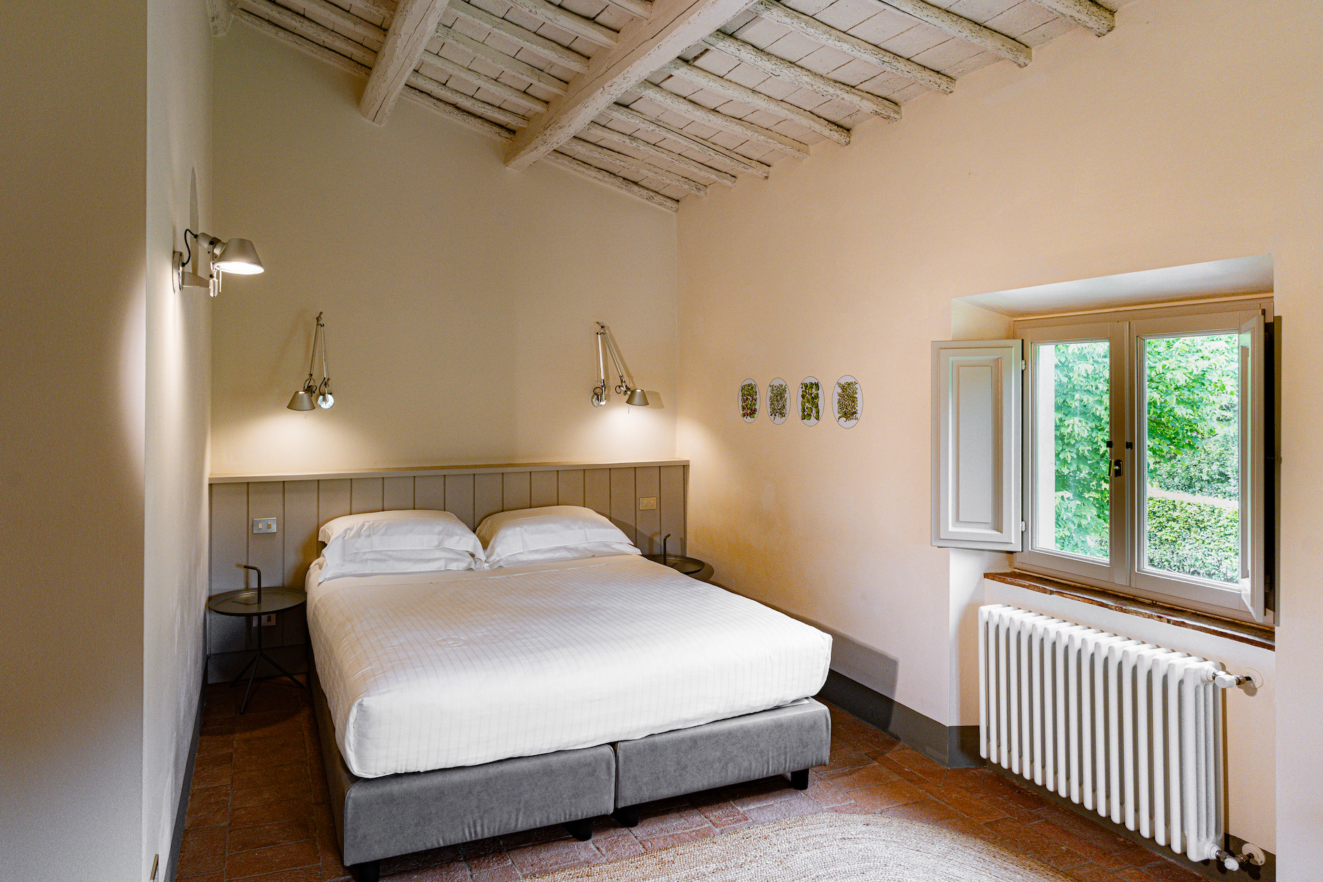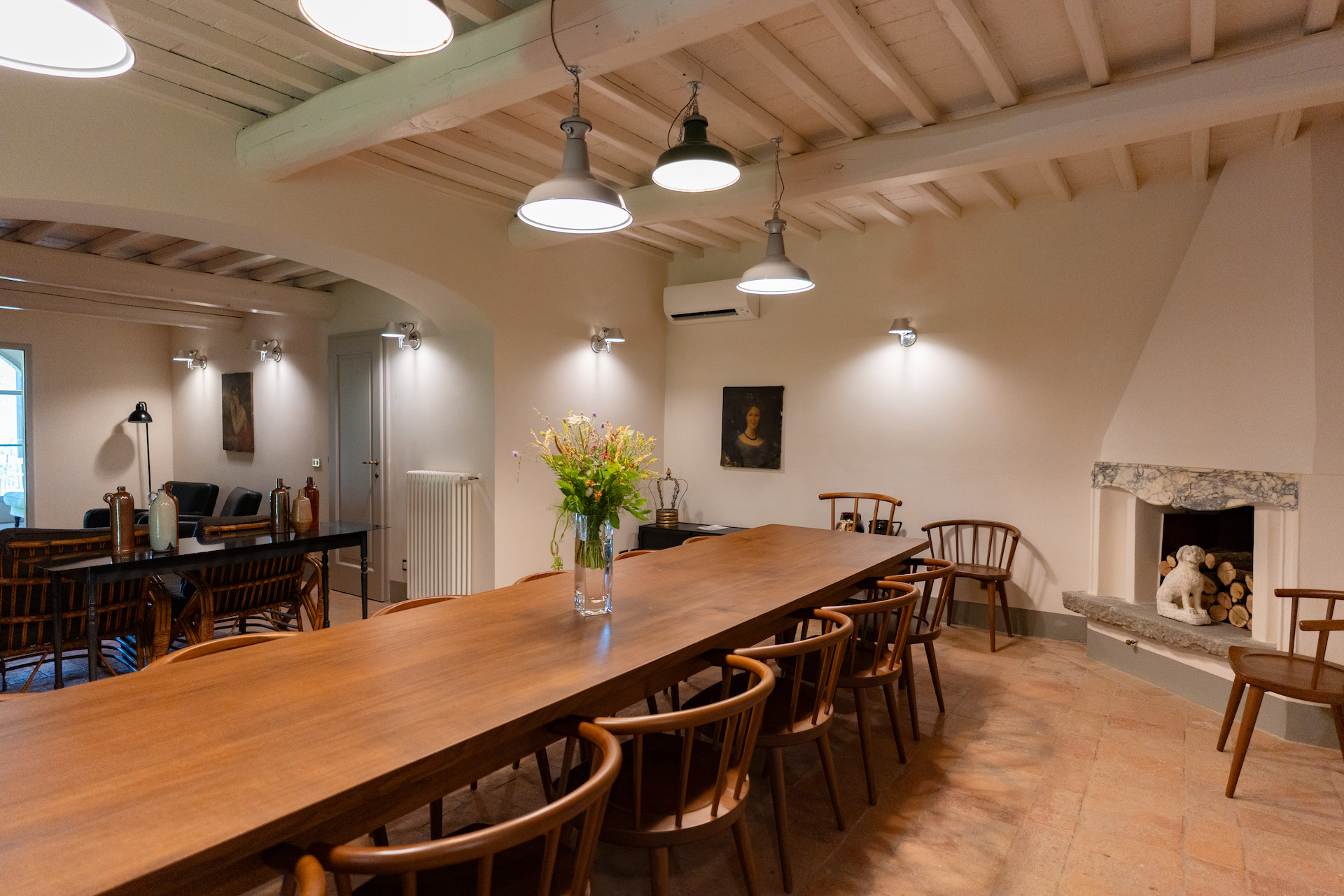Erbavoglio was the sharecroppers' house where they would meet up after a day working in the fields. The farmhouse, surrounded by a large garden, is today just as homely and welcoming as ever. The entrance hall leads into a spacious, bright kitchen which opens onto the outdoor veranda and a lovely living room with its stone fireplace.