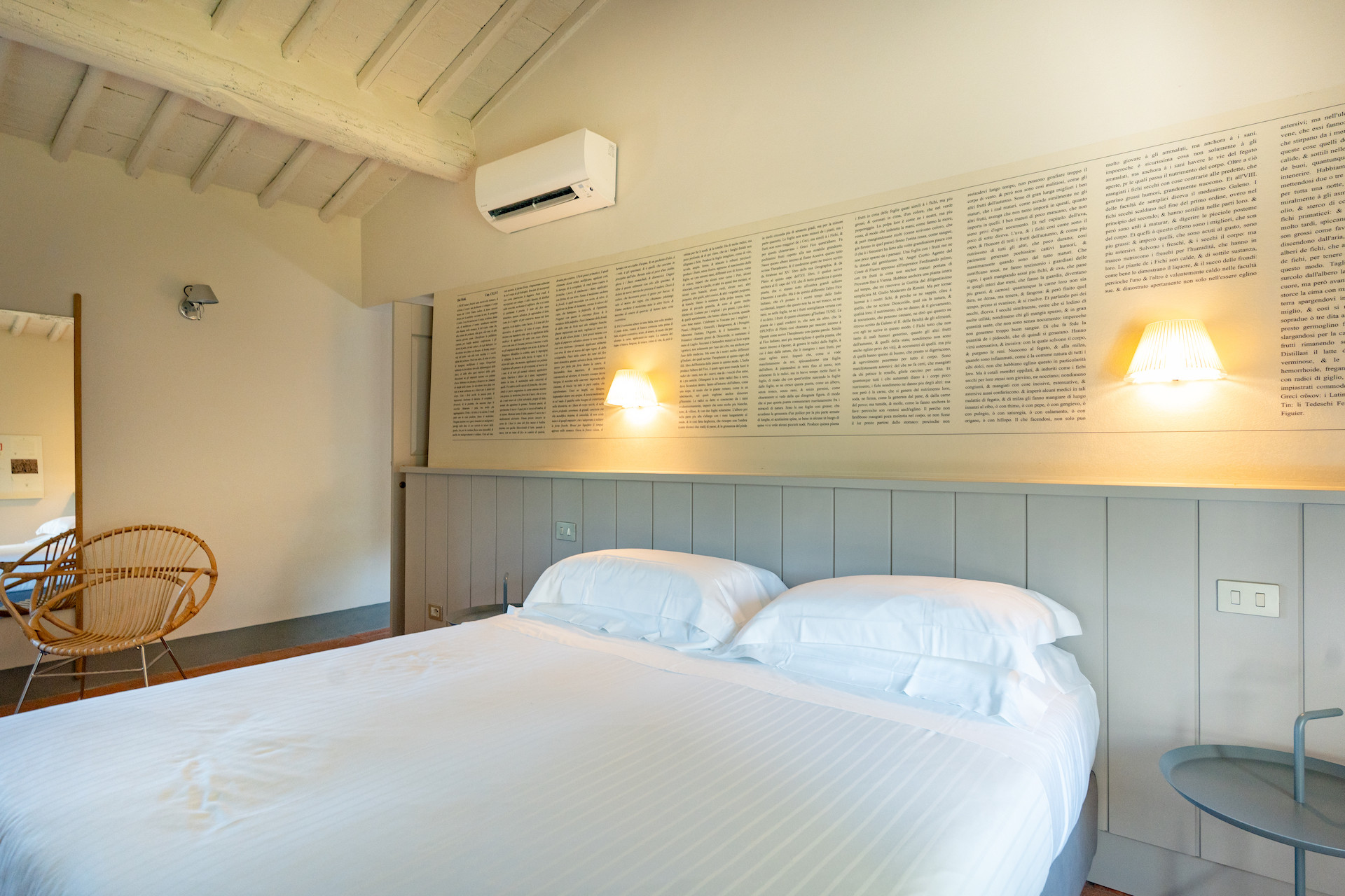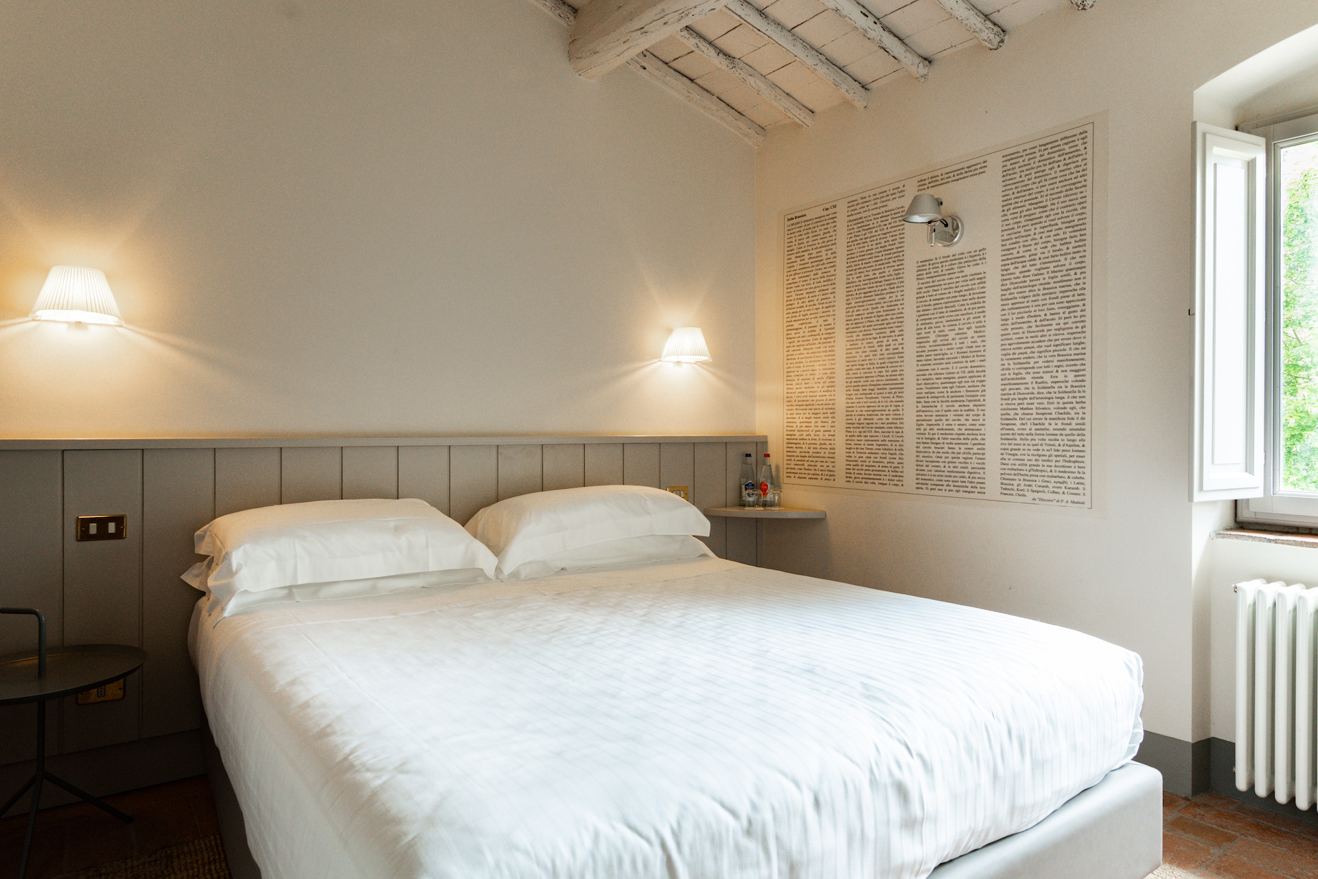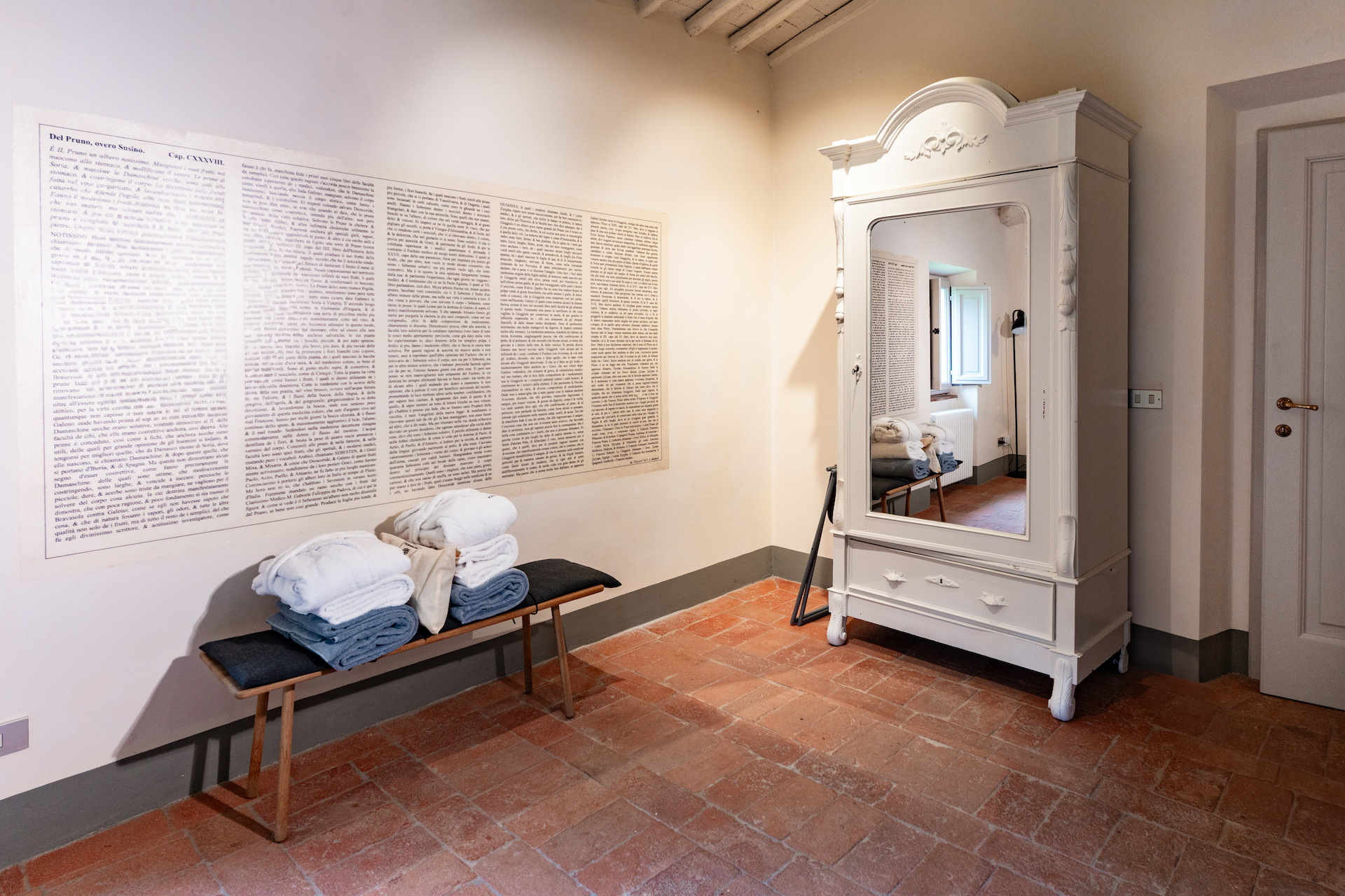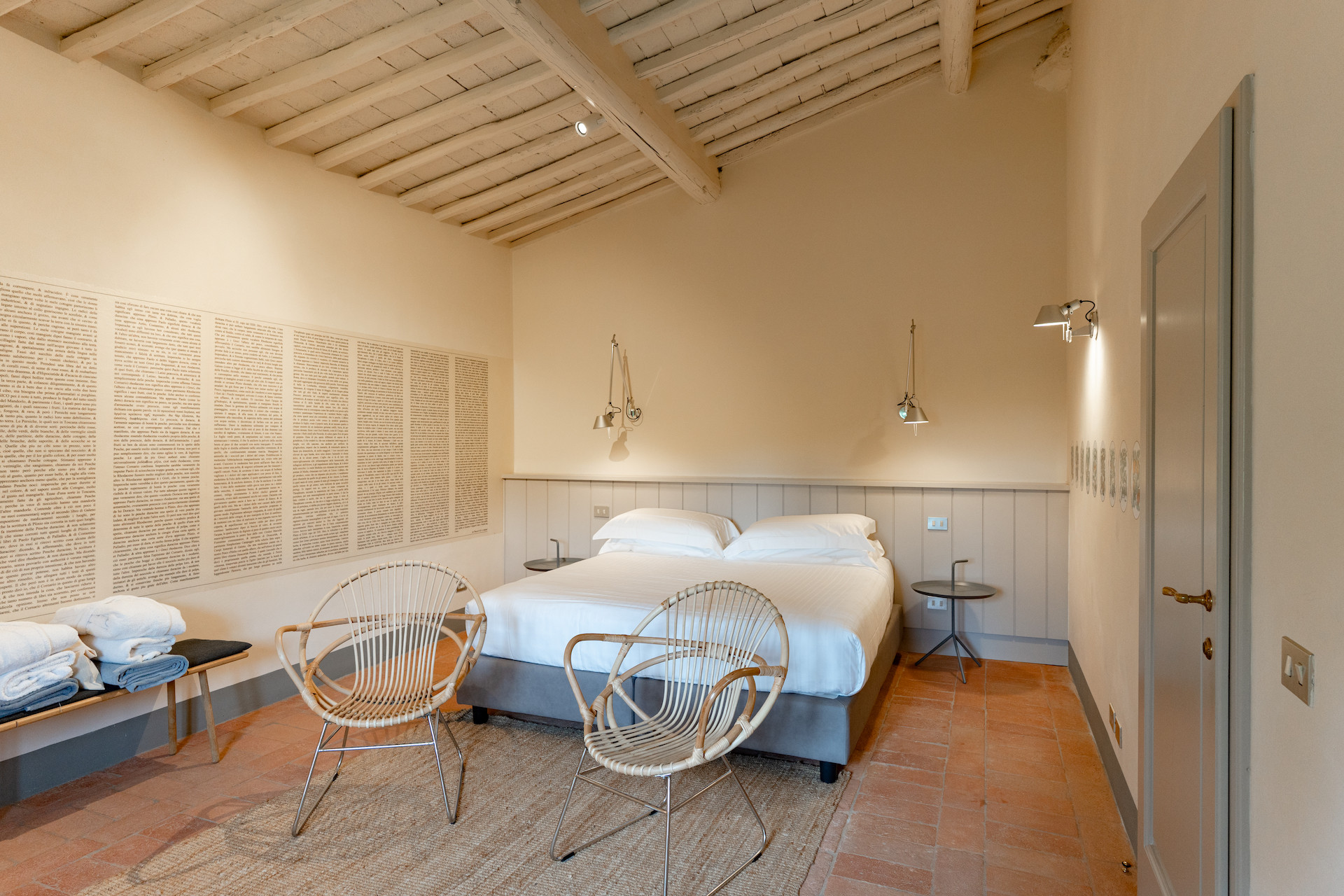 Erbavoglio was the sharecroppers' house where they would meet up after a day working in the fields. The farmhouse, surrounded by a large garden, is today just as homely and welcoming as ever. The entrance hall leads into a spacious, bright kitchen which opens onto the outdoor veranda and a lovely living room with its stone fireplace.
